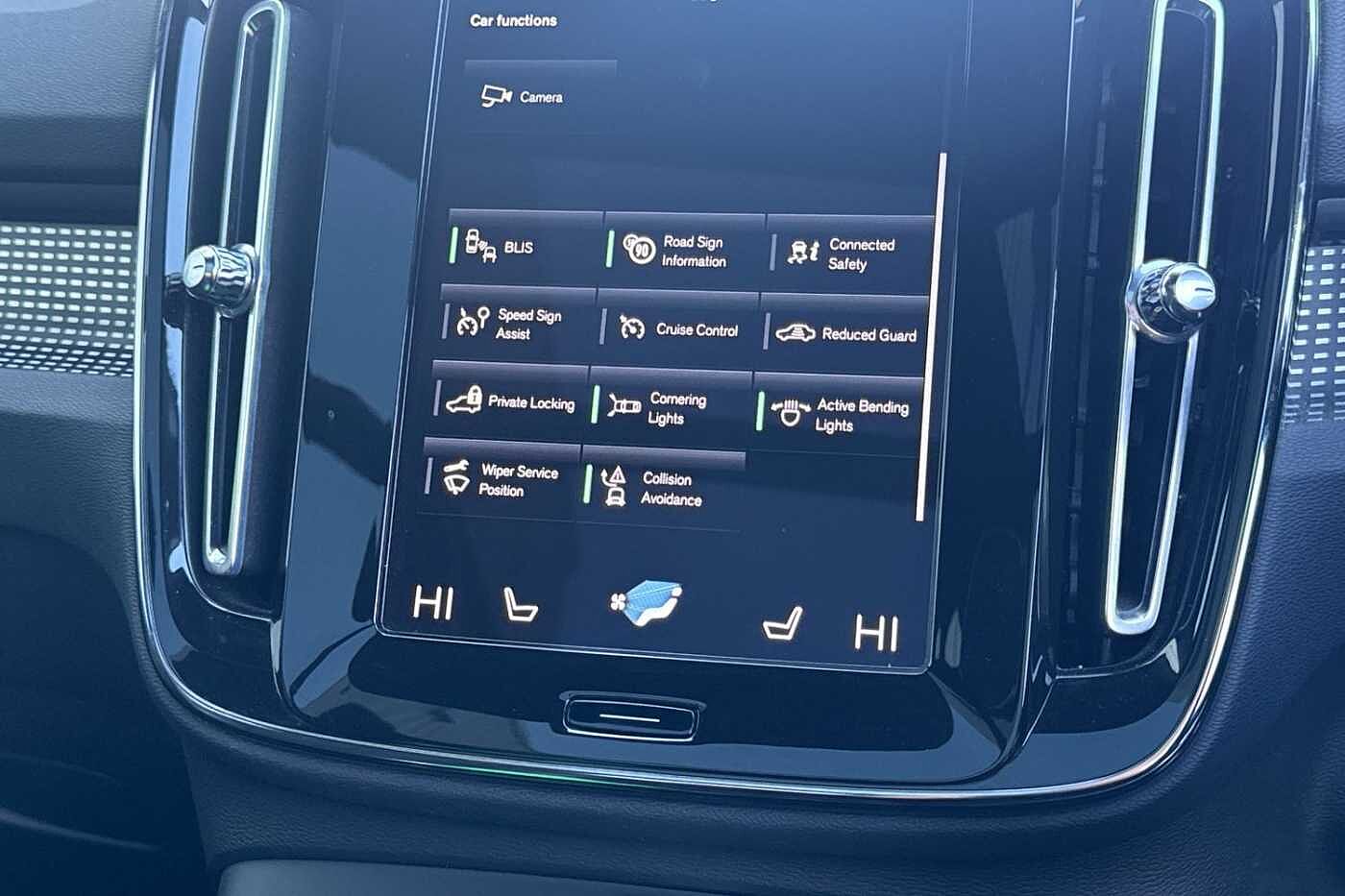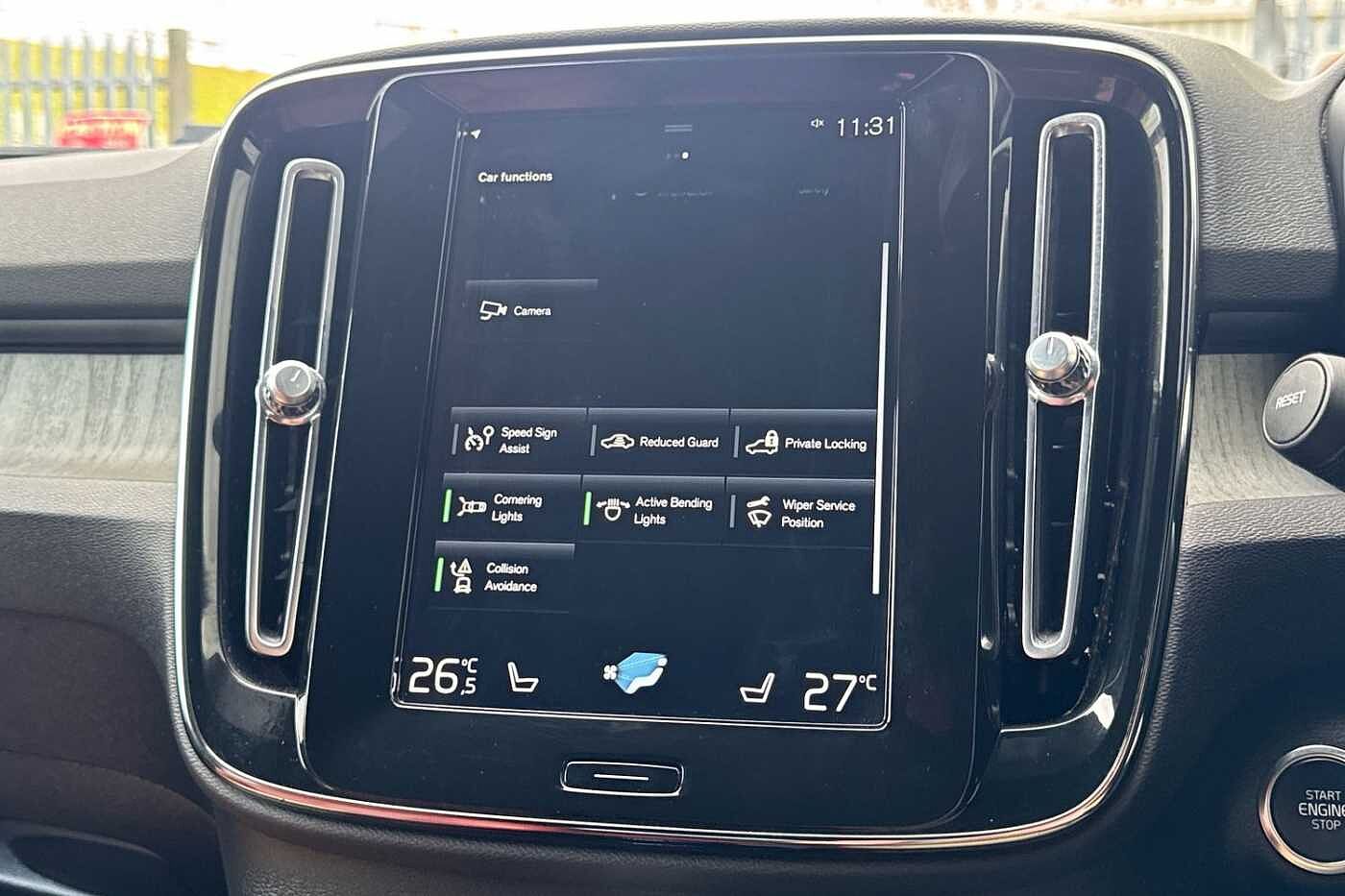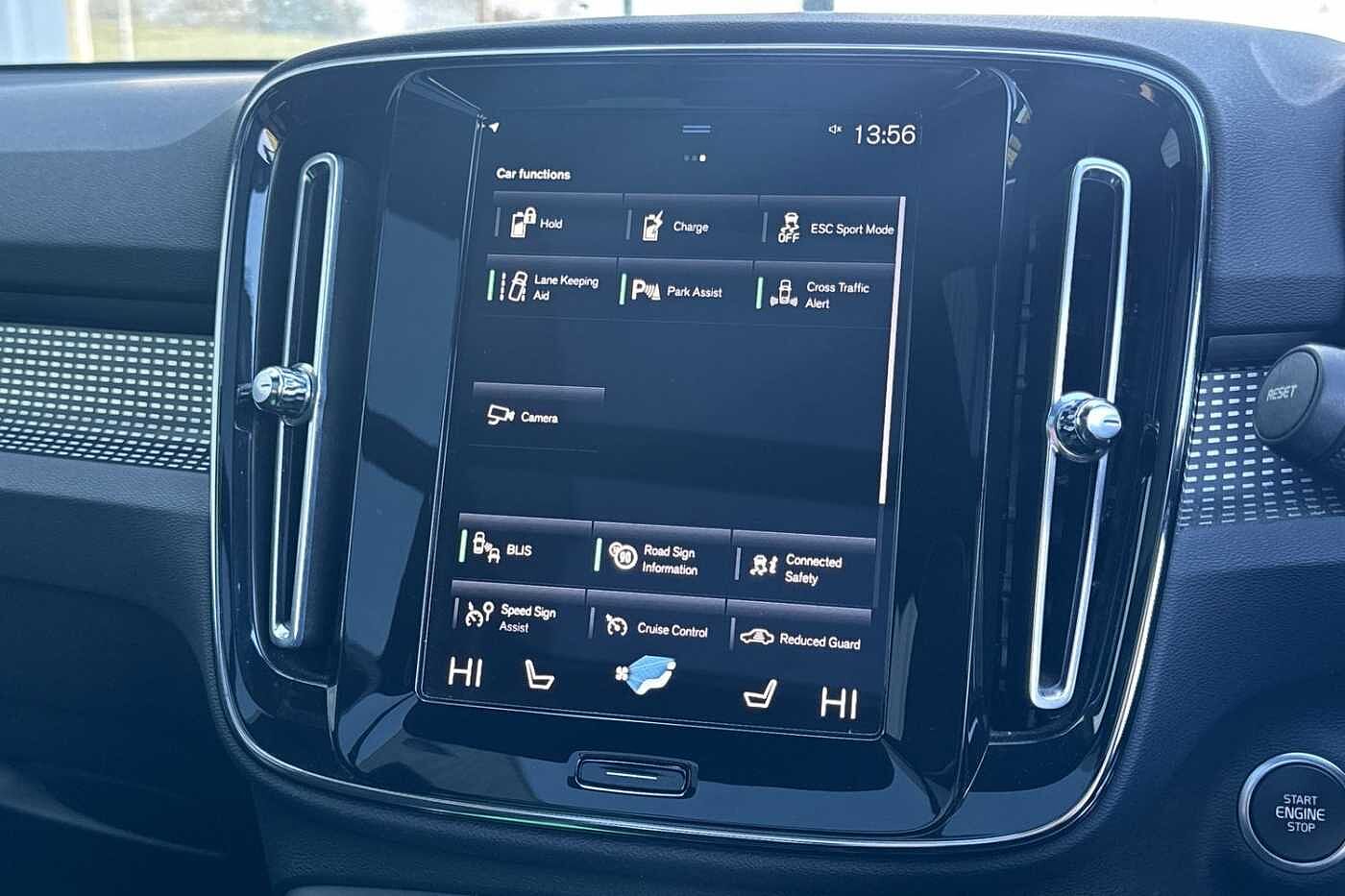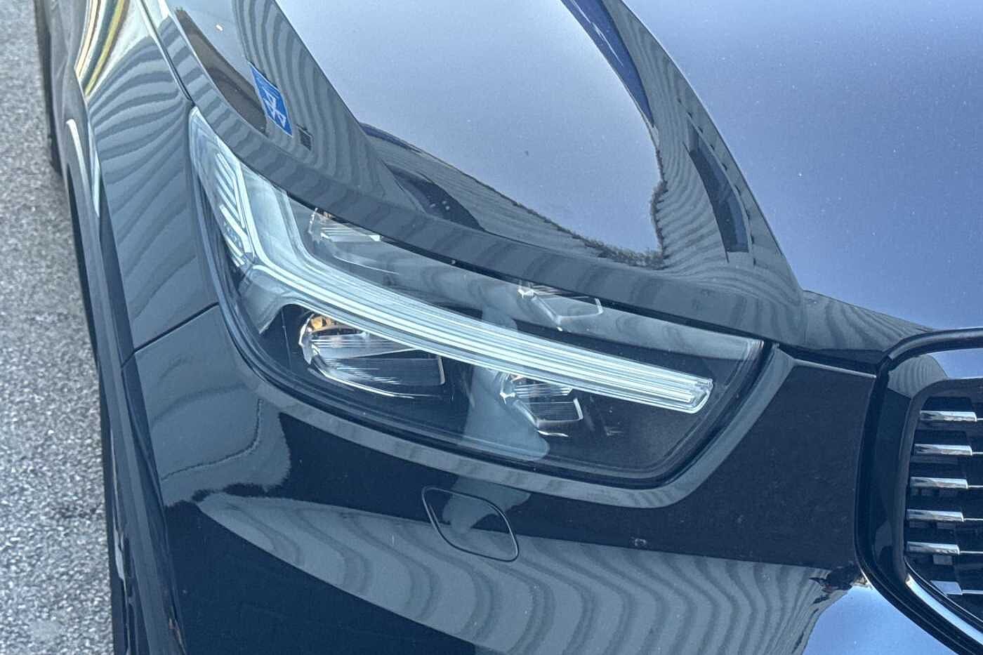 "features": "12.3\" Active TFT crystal driver's instrument display, 9\" centre console portrait touch screen, Adjustable steering wheel force, Bluetooth hands free telephone kit, Drive mode selector, E-call, Lane keep assist with driver alert control, Oncoming Lane Mitigation, Power operated tailgate, Sensus navigation with European mapping and traffic information, Speed limiter, Speed sensitive steering, Voice activated control for key functions, Volvo on call, 7m 10amp charge cable with 3 pin plug and 7m 1 phase 16amp type 2/mode 3 charge cable, Electric front axle drive, Recharging port located in nearside front wing, Sports chassis, DAB Digital radio, Low speed exterior sound speaker, Steering wheel mounted remote controls, Adaptive brake lights with high level LED brake lights, Auto dimming interior mirror, Automatic headlamp levelling, Dark tinted windows for rear door side windows and cargo compartment, Electric adjustable/heated/auto folding door mirrors, Front aluminium tread plates, Front and rear electric windows, High gloss black front and rear skid plate, High gloss black lower front bumper, High gloss black mesh front grille with high gloss black surround, High gloss black sensus surround deco, High gloss black window trim, Home safe and approach lighting, Integrated roof rails in high gloss black, LED Headlights + Active high beam incorporating daytime running lights, Rain sensor with automatic windscreen wiper activation, Rear side wing doors, Rear wiper, Roof antenna, Roof spoiler, Visible VIN plate, 12V socket in front tunnel console and luggage compartment, 2 zone electronic climate control and rear air vent, 3 seat bench in 2nd row, 60/40 versatile split folding rear seat, A-pillar parking ticket holder, Centre console cupholders and storage, Charcoal headlining, Front footwell illumination, Front headrests, Front reading light and theatre lighting, Front seat cushion extensions, Glovebox bag hook, Height/reach adjustable steering column, High gloss centre tunnel deco, Illuminated glovebox, Illuminated luggage compartment, Illuminated vanity mirrors, Isofix attachments on outer rear seats, Leather gearknob, Load protection net, Multi directional lumbar support, Rear armrest / integral cup holders / storage tray, Rear coat hook, Single front passenger seat, Sports floor mats, Sports pedals, Sports tailored steering wheel, Underfloor cargo storage, Vanity mirror with ticket holder, 3x3 point rear seatbelts, City safety includes pedestrian, cyclist and large animal detection and front collision warning with full auto brake, Drivers knee airbag, Dual stage driver/passenger airbags, Electronic parking brake with auto hold, First aid kit, Front and outer rear seatbelt reminder and pretensioners, Front seats SIPS airbags, Hill descent control, Hill start assist, Inflatable curtain, Passenger airbag cut-off device, Road sign information display, Run off Road Mitigation, Run off Road Protection, SIPS (Side Impact Protection System), Slippery road and hazard light alert, Stability and Traction Control with Spin control, Engine Drag Control and Corner Traction Control, Tyre pressure monitoring system, Vehicle deceleration control with Anti-lock Brake System, Electronic Brake Distribution and Emergency Brake Assist, Warning triangle, WHIPS whiplash protection system - front, Anti-theft alarm including immobiliser/volume sensor + level sensor, Care key with user defined top speed, Key integrated remote control central locking + fuel flap with deadlocking system and auto open/close power windows, Locking wheel nuts, Private locking for tailgate, Cutting edge aluminium inlay, Lower dashboard, tunnel console and door panel in charcoal, ",