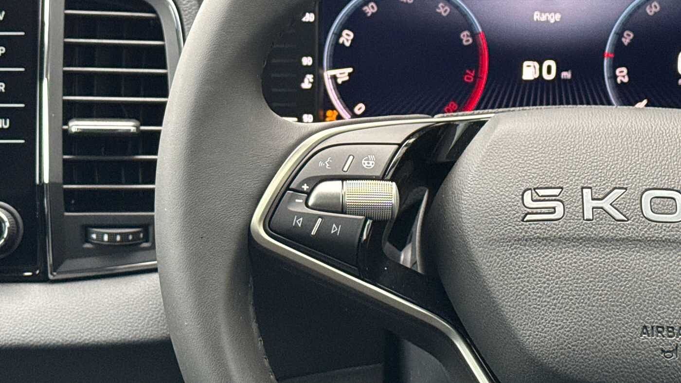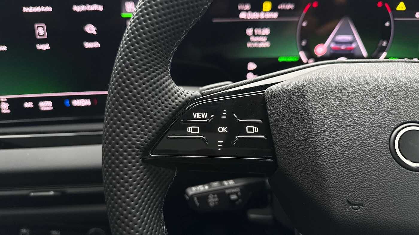"3-spoke Sport leather steering wheel flat top and bottom with multifunction and shift paddles",