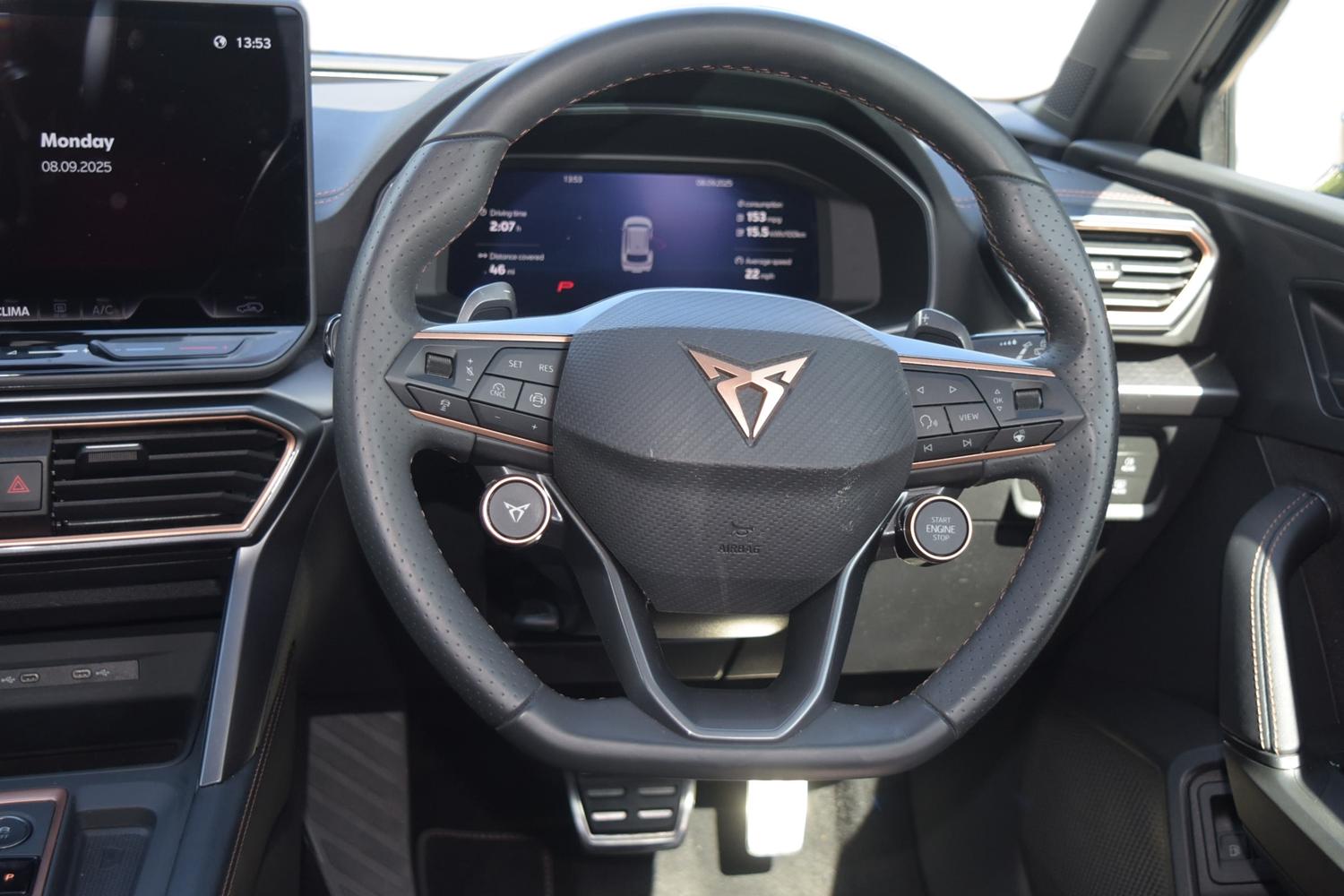 "Galvanised steering wheel gearshift paddles",
