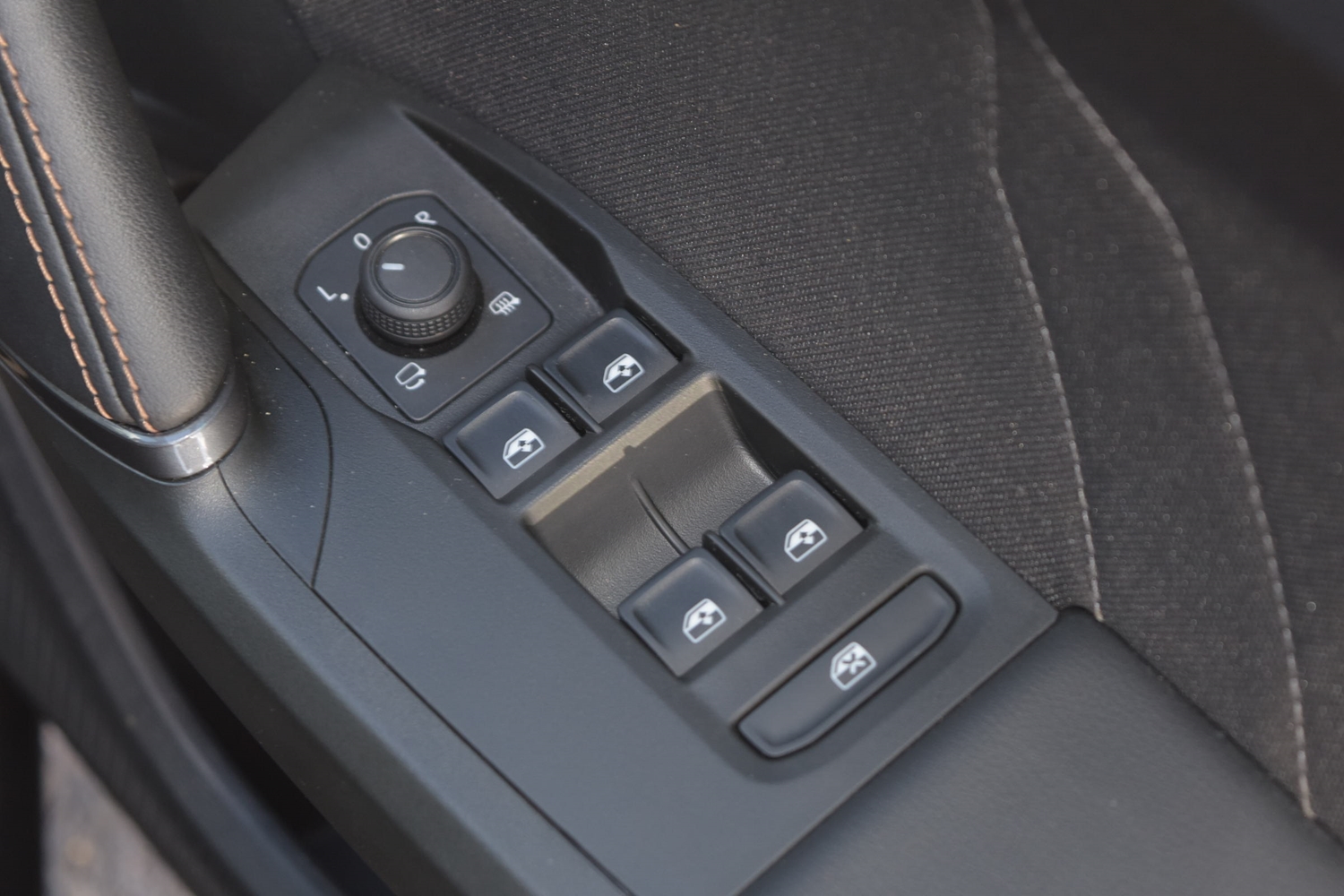 "Black fabric roof lining",
