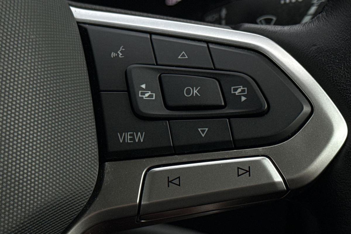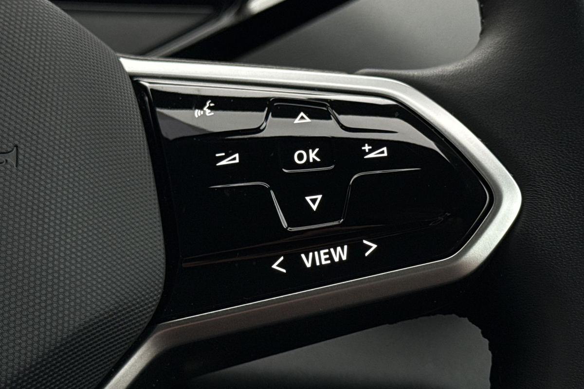 "3 Spoke tailored steering wheel with chrome trim",