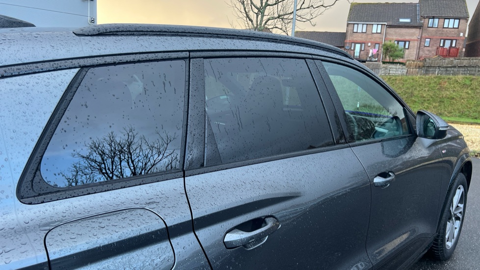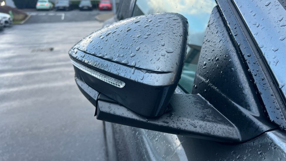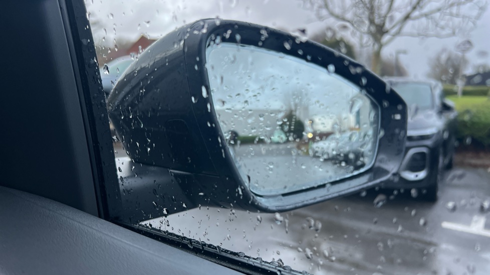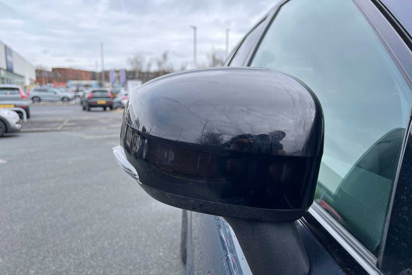 "High gloss black door mirrors and window surround",