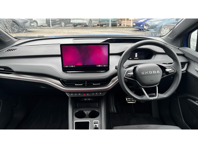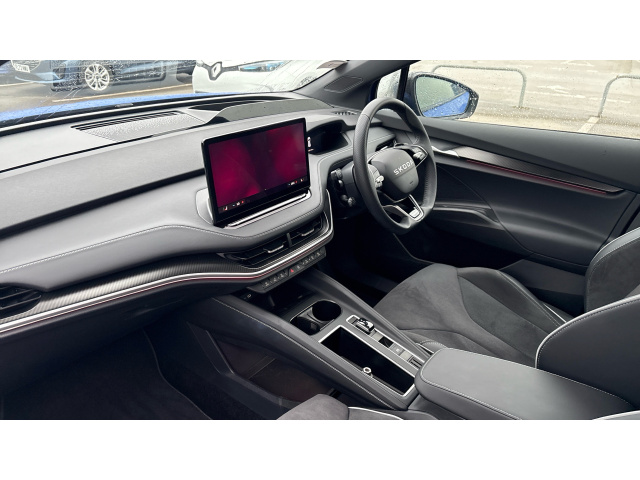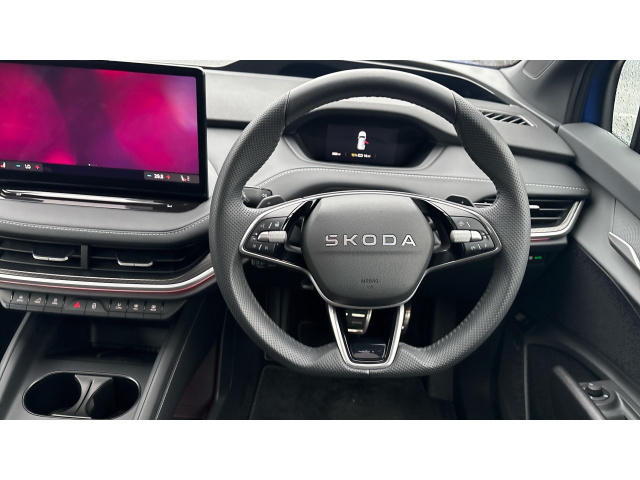 "features": "13\" touchscreen display, 15W wireless charging with cooling function, 5\" Digital cockpit, Blind Spot Detection (BAS), Bluetooth system, Drive mode selector, Driver alert system, E-call, Electrically operated tailgate with kick activation (virtual pedal), Electronic engine sound, Emergency steering support with turn assist, Exterior temperature indicator, Front and rear parking sensors, Front assist with assisted automatic braking to vehicles, pedestrians and cyclists, Gesture control, Predictive adaptive cruise control with traffic jam assist, Progressive steering, Satellite navigation system, Skoda Connect iV remote services with charging, air conditioning and smart schedules, Speed assist, Speed limiter, Traffic sign recognition, Travel assist plus with emergency assist, lane assist plus with narrow lane assist and urban evasive steering support, Voice control system, Washer fluid level indicator, Wi-Fi hotspot, Wireless smartlink, 165 kW DC charging, 6m mode 3 cable (32A), Four wheel drive, Sports suspension, 45W USB-C ports (charging + data) front and rear, DAB Digital radio, Auto dimming rear view mirror, Body colour door mirrors and handles, Body colour door sills, Dashboard and door moulding light in multiple colours, Door mirror memory, Dynamic headlight range control with cornering light function, Electric adjustable heated folding door mirrors with boarding spots and welcome logo, Electric front and rear windows, Full LED Matrix beam headlights with variable light distribution, Gloss black tailgate lettering, Gloss black window surround, Heat insulating darkened glass in side and rear windows, Heat insulating glass in windshield, Integrated fog light with all-weather function, LED daytime running lights, LED rear lights with animated indicators, LED third brake light, Light assistant (coming and leaving home), Panoramic opening glass sunroof, Privacy glass and acoustic side windows, Radiator grille in gloss black, Rain and light sensors, Rear side wing doors, Safety reflectors on front and rear doors, Sports bumpers, Variable front intermittent wipers, 12V socket in boot, 1x umbrella, 3 rear headrests, 3 seat bench in 2nd row, 3-spoke leather heated sports multifunction steering wheel with paddles for recuperation level selection, 60:40 foldable rear seat with sliding adjustment and backrest angle adjustment, Aluminium pedals, Black artificial leather dashboard with grey stitching, Black headlining, Black textile floor mats with grey stitching, Boot lighting, Electrically adjustable driver seat with memory function, Extended interior noise suppression, Folding boot cover, Front and rear footwell lighting, Front courtesy lights, Front reading lights, Front sport seats, Front sports head restraints, Heated front seats, Height adjustable drivers seat, Height adjustable front passenger seat, High centre console with armrest, Interior door handle lighting in front and rear, Isofix child seat fittings in outer rear seats with top tether, Isofix child seat preparation for front passenger seat, Laminated soft-touch plastic knee rest, LED ambient lighting, Manual rear window blind, Manually adjustable steering column, Massage functionality for drivers seat, Microsuede/artificial leather upholstery, Pollen filter, Power adjustable lumbar front seats, Rear reading lights, Single front passenger seat, Sunvisors with illuminated vanity mirrors, Tri zone climate control, Advanced package - Enyaq, 3 point height adj front seatbelts + pretensioners, Auto door release and activation of warning lights in the event of an accident, Central interaction airbag, Crew protection assist, Driver and front passenger airbags, ESC (incl. ABS+MSR+ASR+EDS+HBA+DSR+RBS+MKB), Front and rear three point safety belt on all seats, Front disc brakes, Front passenger airbag deactivation switch, Front side airbags with curtain airbags, Height adjustable seatbelts, Power child locks, Rear drum brakes, Rear side airbags, Single tone horn, Tyre pressure monitor, Visual and acoustic seat belt reminder, Warning lights in front doors, Anti theft alarm system with interior monitoring, backup horn and towing protection, Central locking system with SAFE system, Keyless entry and start/stop system advanced with walk away locking, Carbon effect decorative inserts, Anti-theft wheel bolts protection, Tyre repair kit with compressor, ",
