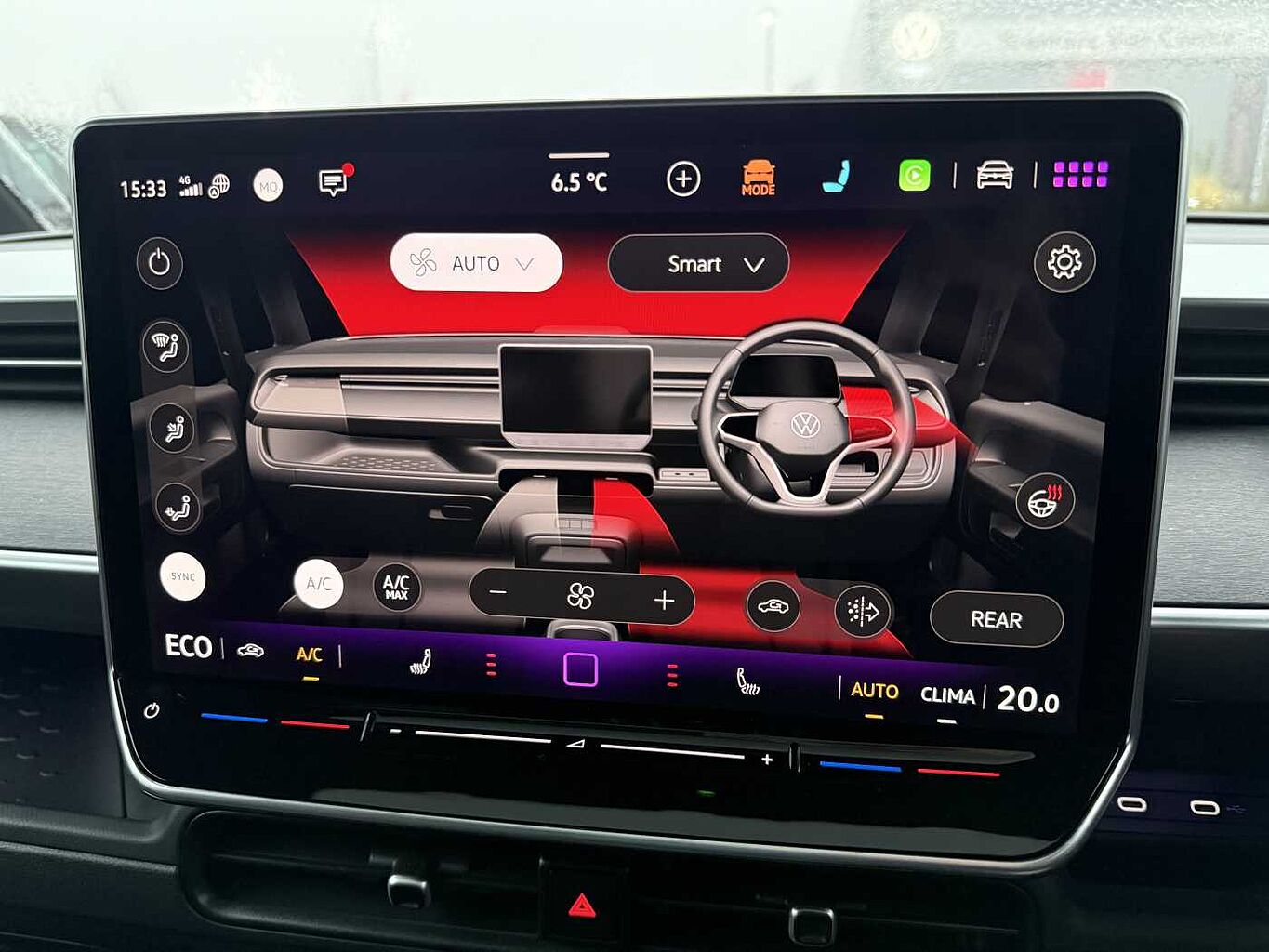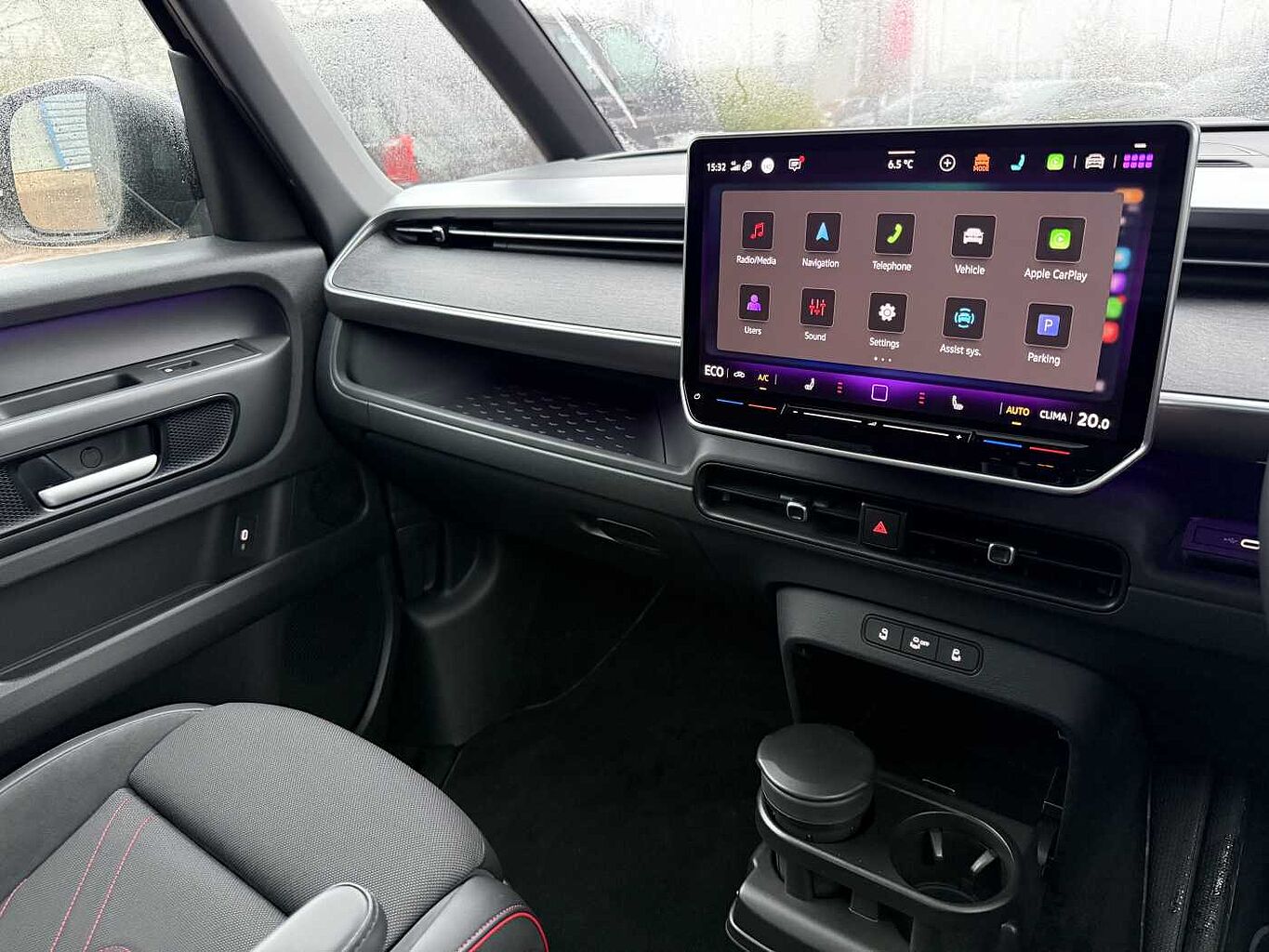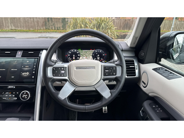 "Four spoke multifunction leather steering wheel with shift paddles for recuperation",