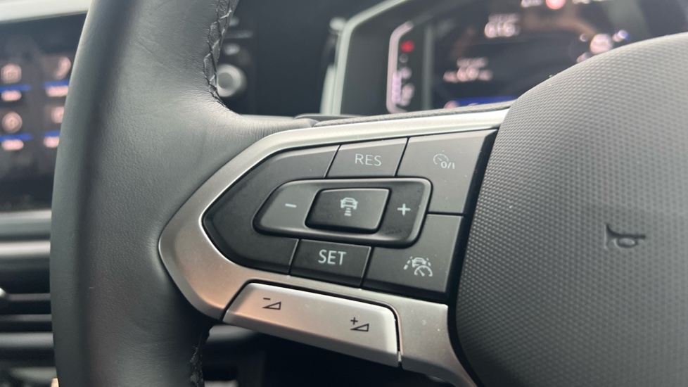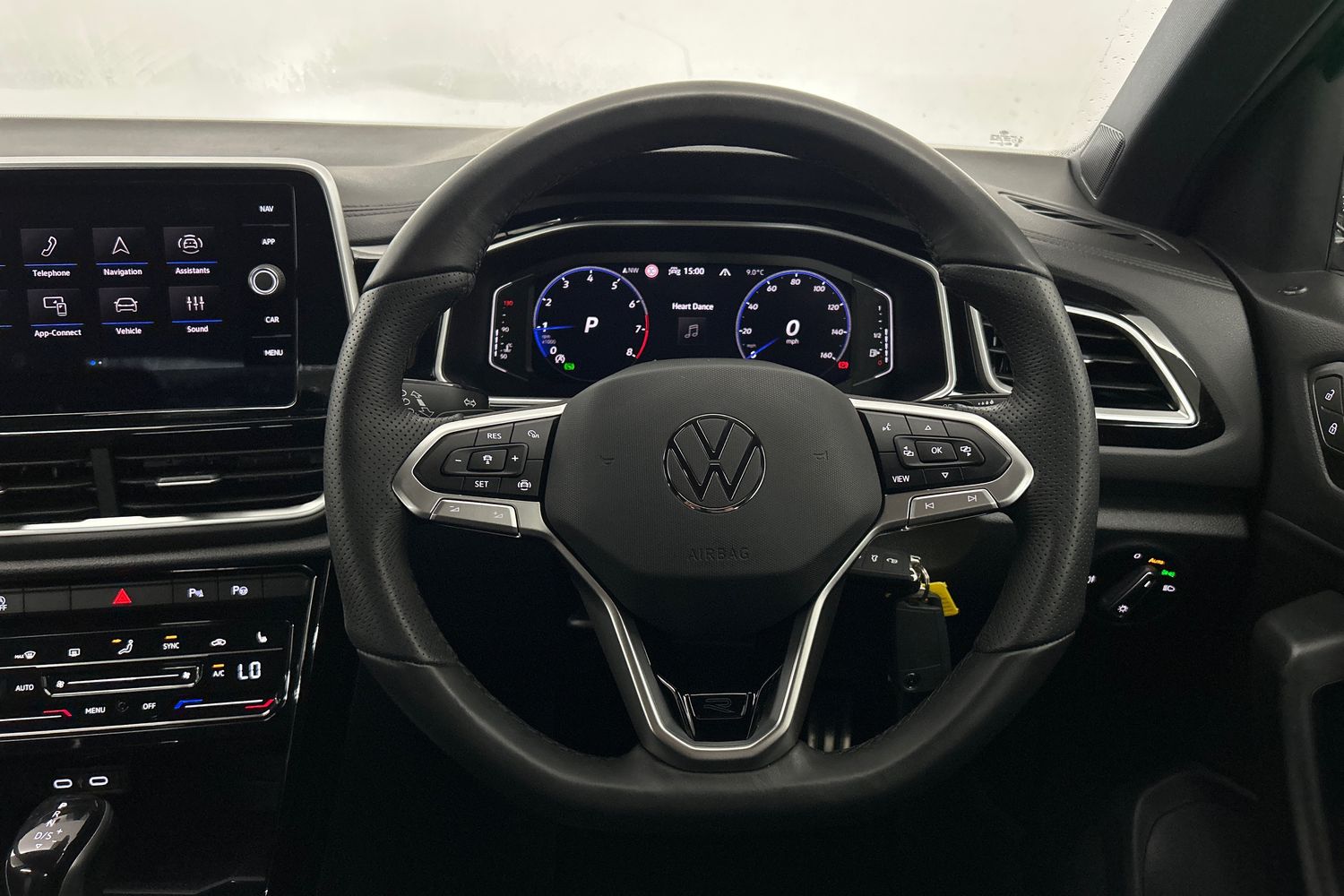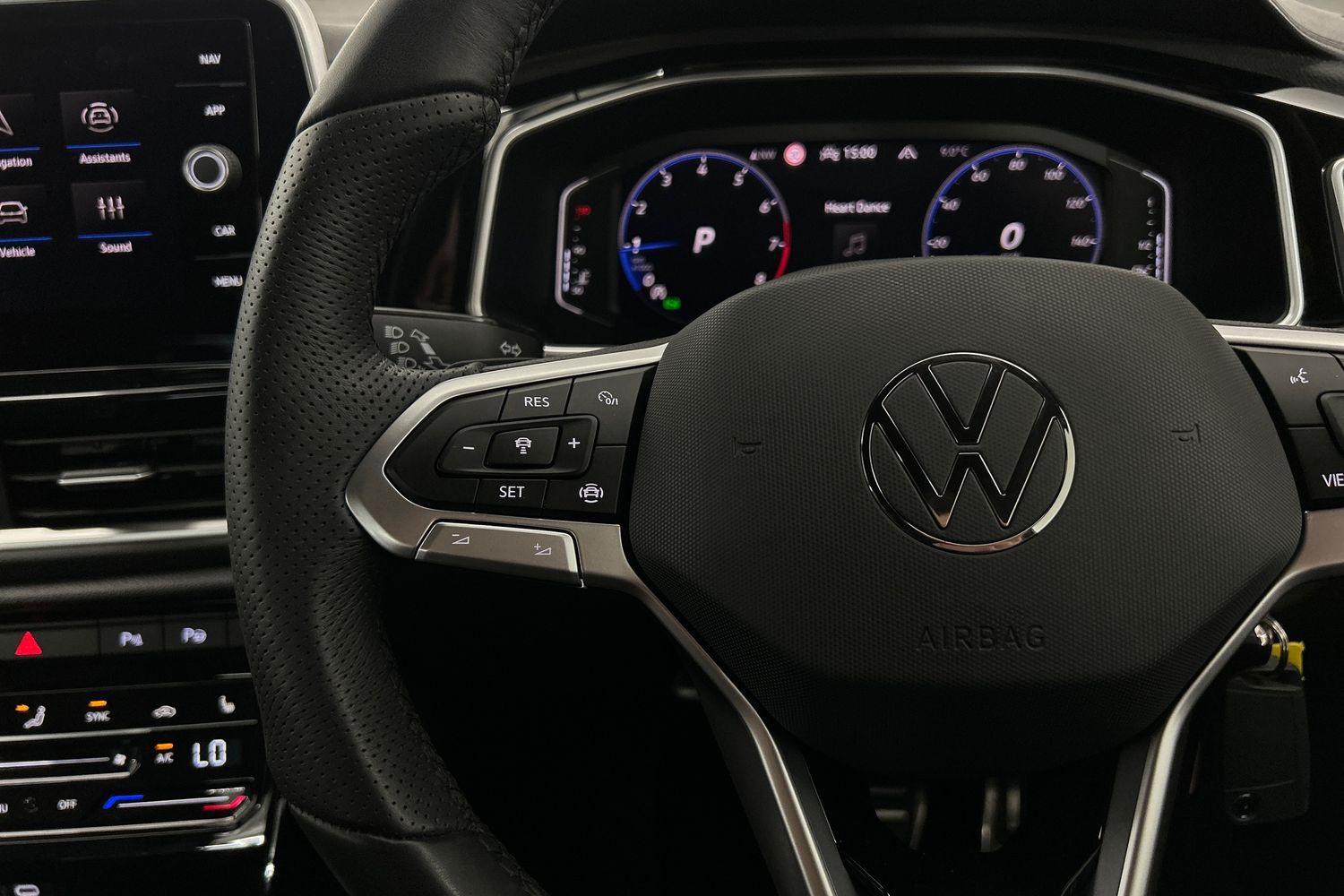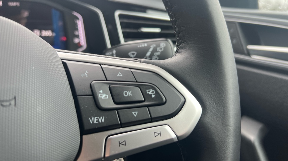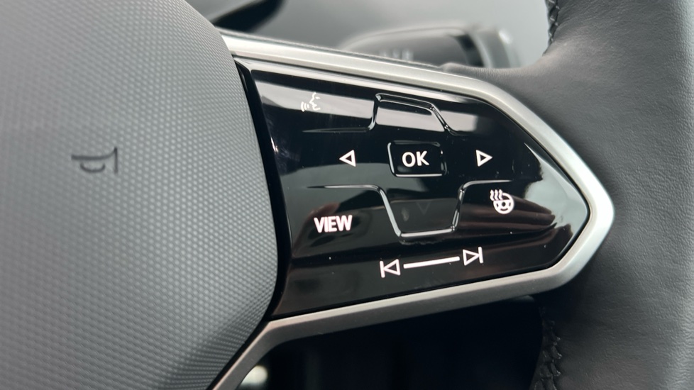 "Leatherette-wrapped multifunction heated steering wheel with touch control",