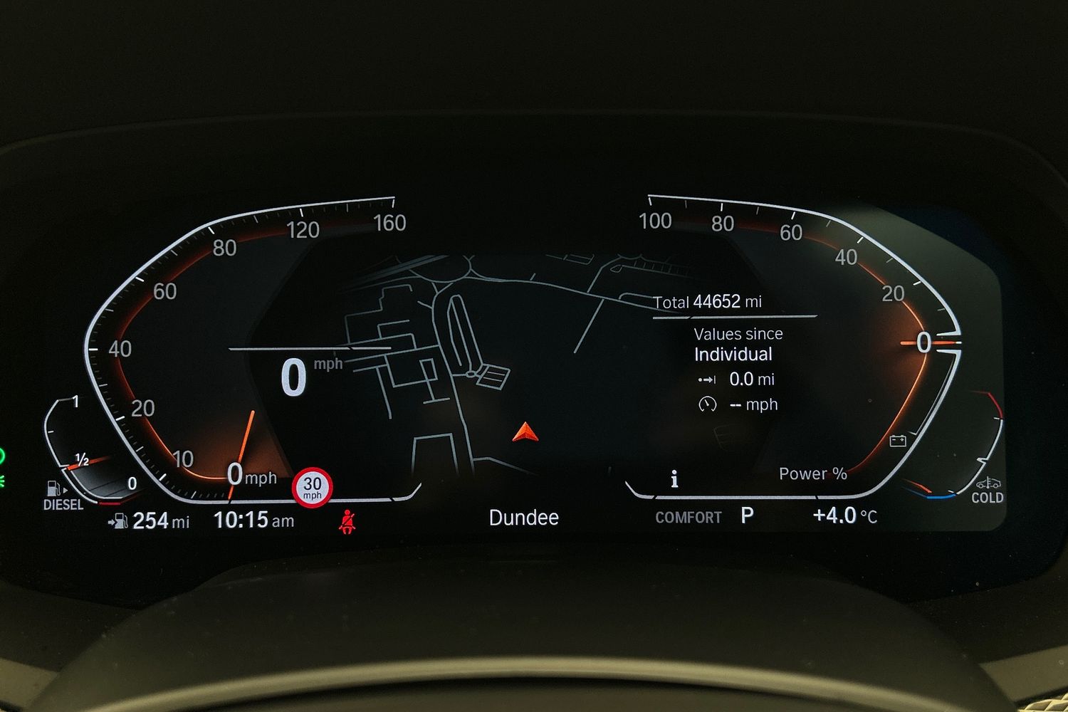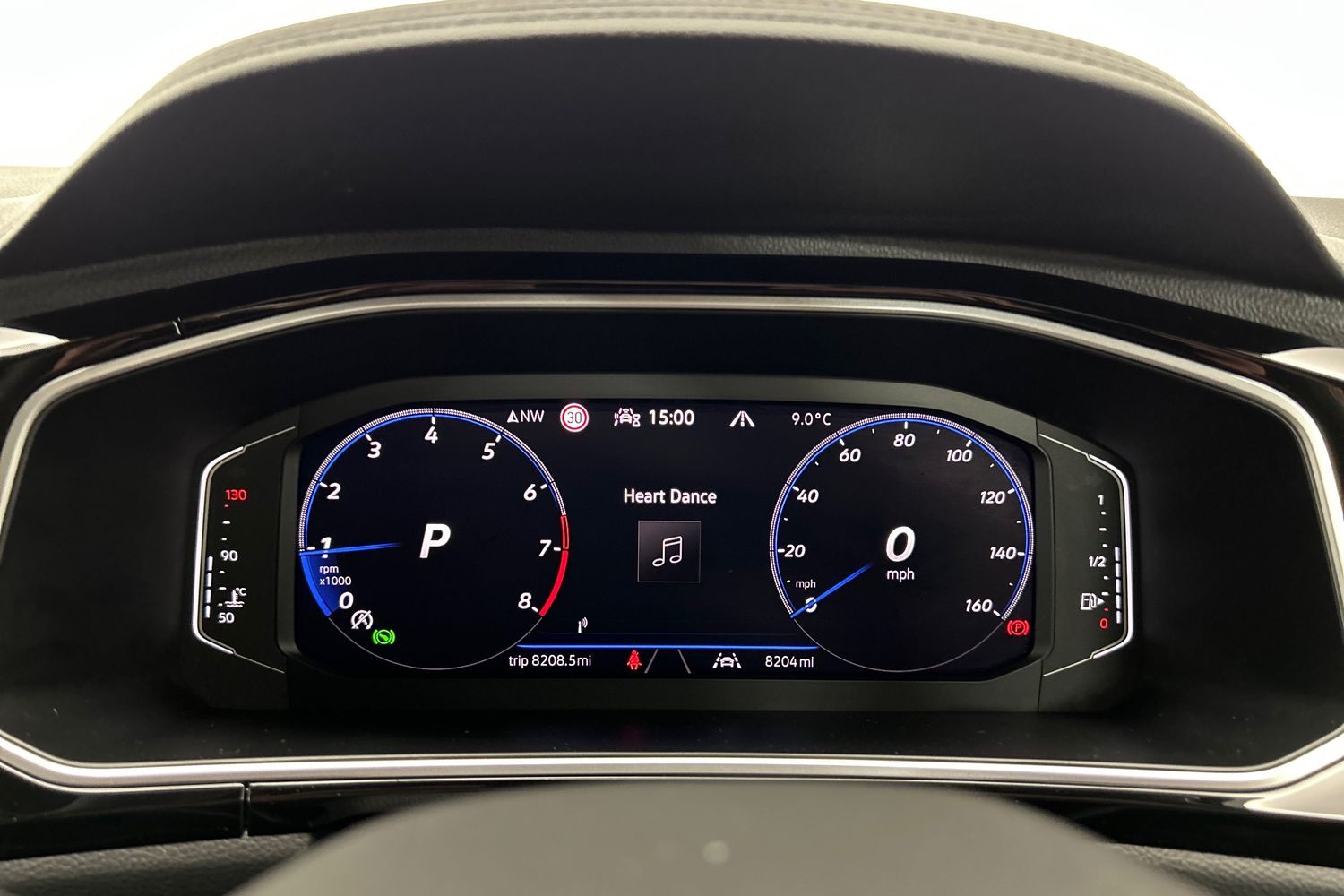 "Speedo and rev counter, electronic odometer, trip, service interval display and exterior temperature gauge",