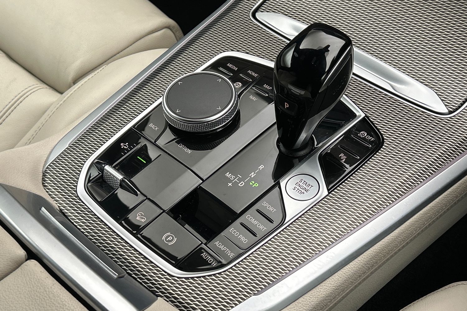 "Centre console with illuminated storage compartment with sliding cover and two drinks holders",