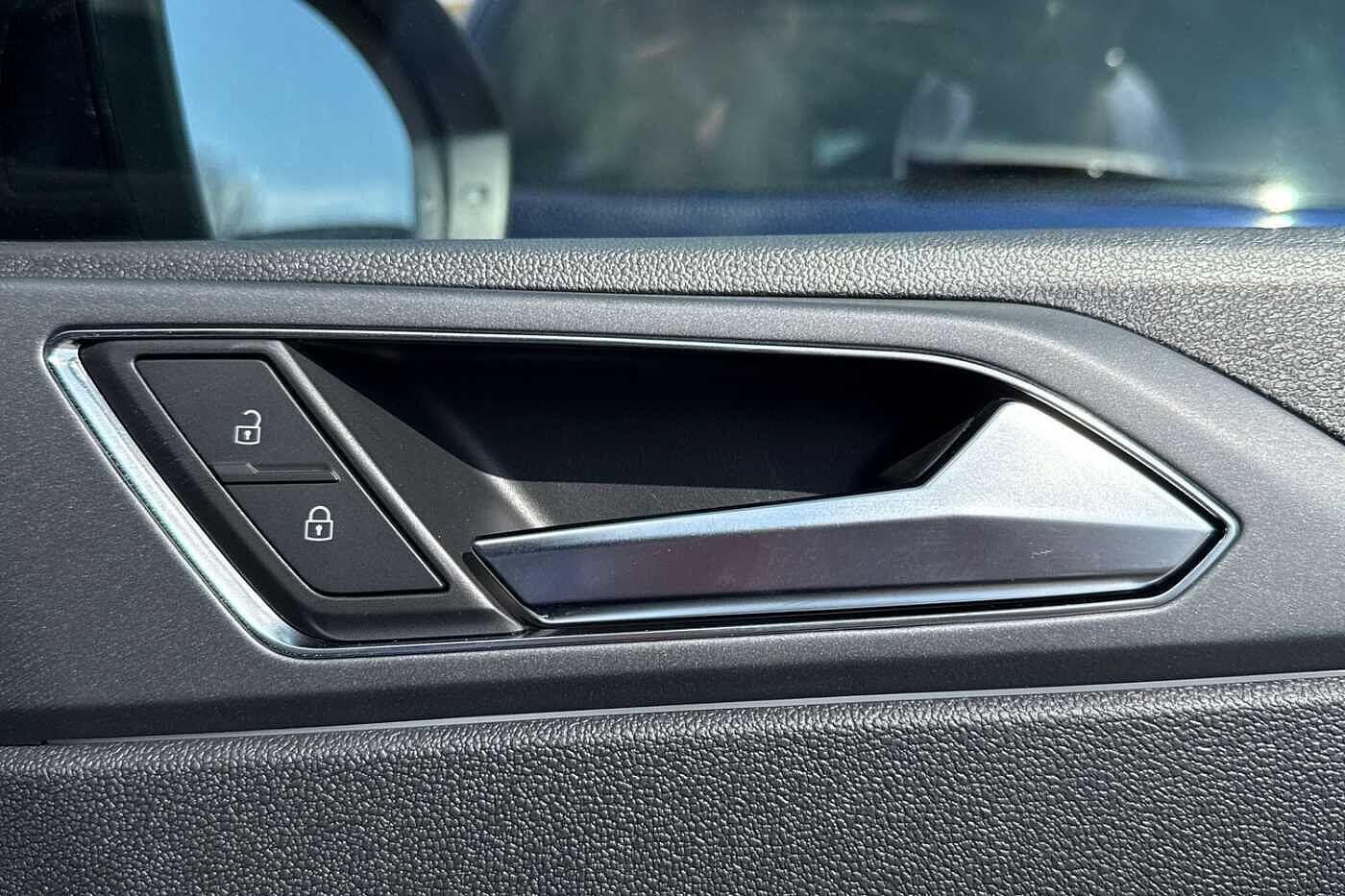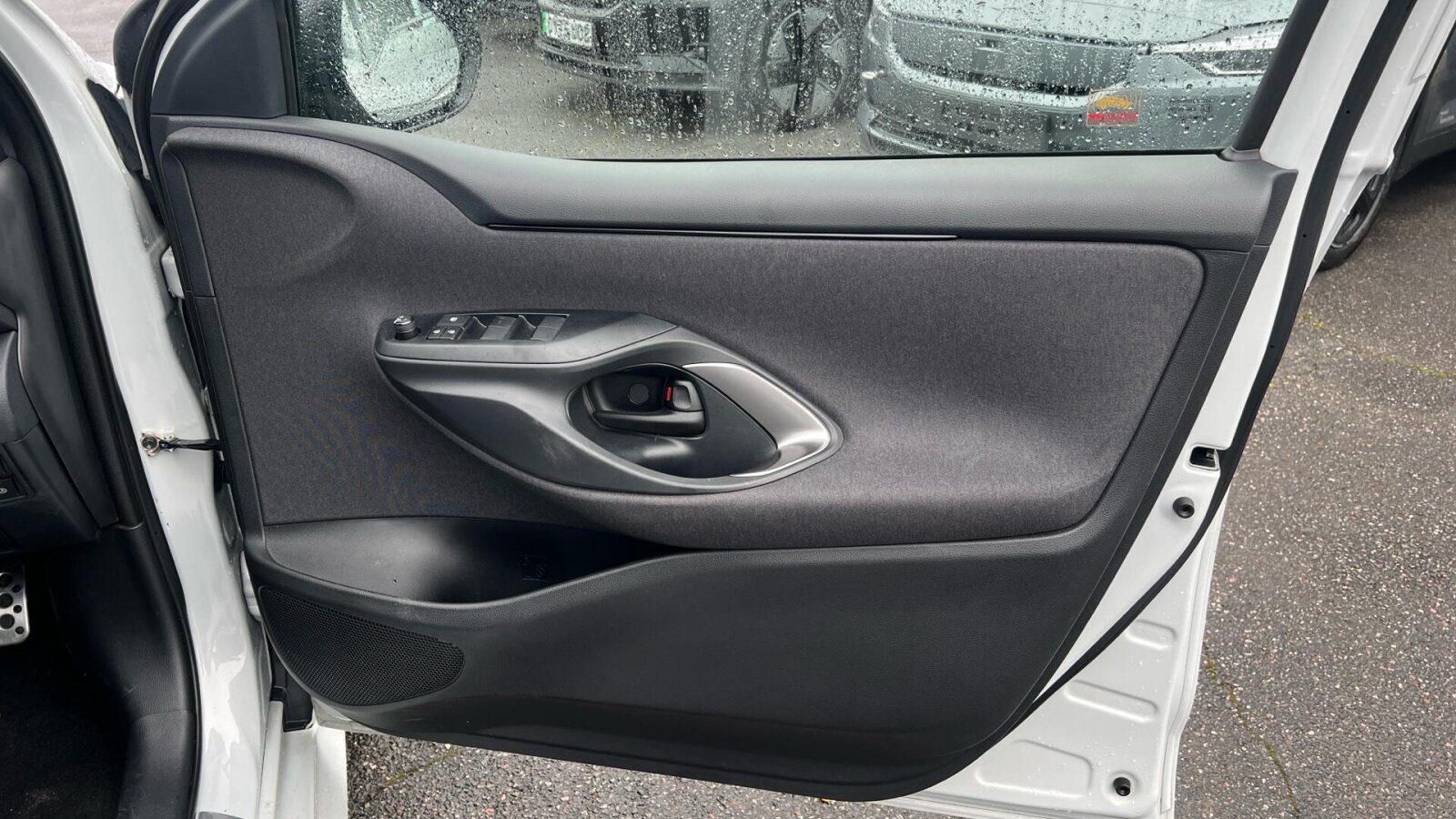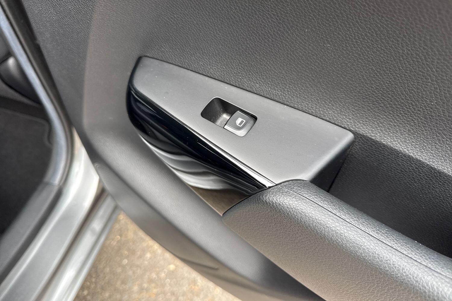 "Liquid palladium cloth inserts on door trim",