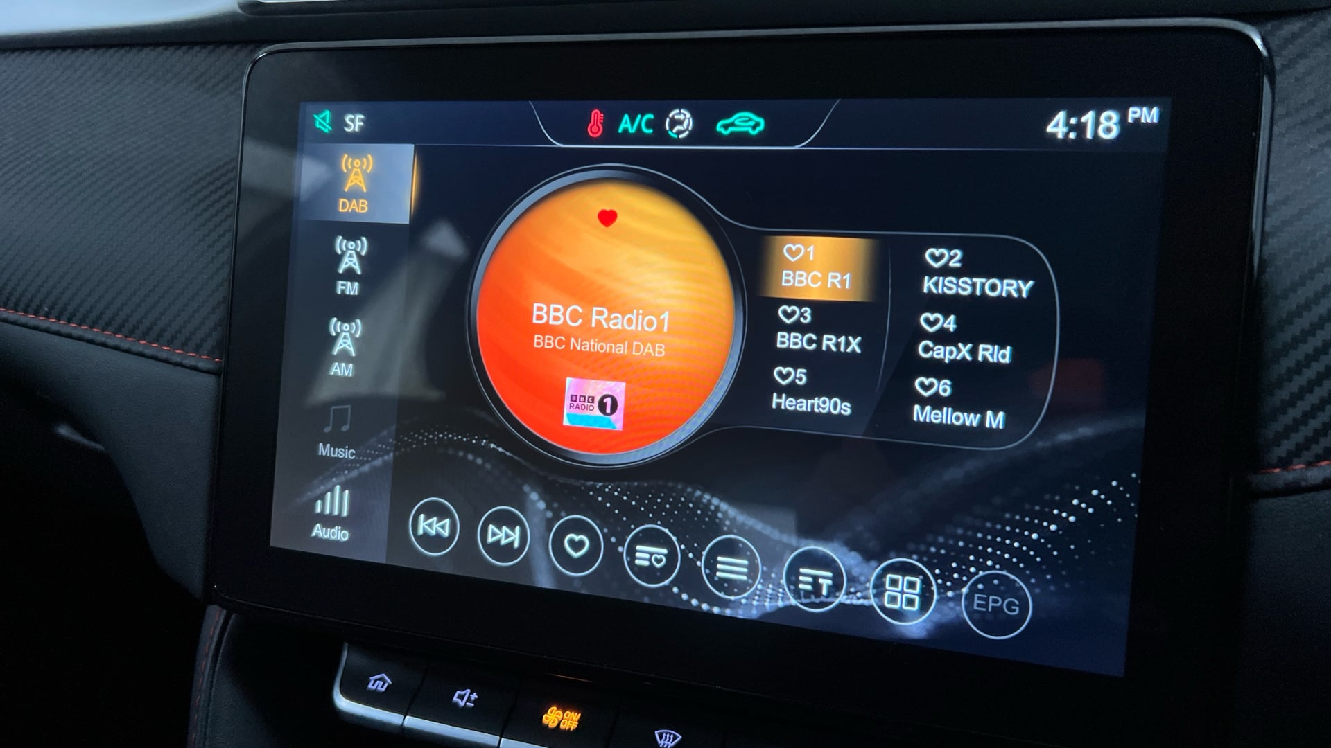 "Liquid palladium facia with hot red accents"