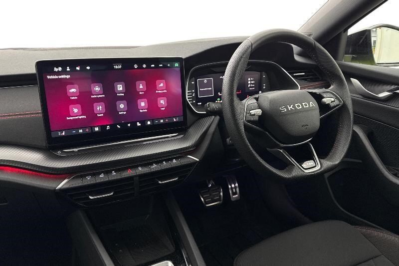 "features": "13\" touchscreen display with satellite navigation, 4x USB-C ports (2x in front centre console and 2x in rear) (45W), Adaptive cruise control with speed assist,lane assist plus and traffic tram assist, Blind spot detection with door exit warning, Bluetooth system, CareConnect and Emergency Call, ChatGPT functionality, Driver fatigue sensor, Front assist with extended predictive pedestrian protection, Front cross traffic assist, PAS, Quick start all heating software functionality, Stop/start engine system, Traffic sign recognition, Turn assist with evasive assistance, Virtual Cockpit - 10.25\" digital display, Voice control system, Washer for rear camera, Wireless charging for one smartphone (15W) with cooling function, Wireless smartlink apple carplay, SmartLink+ android auto, 8 Speakers, DAB Digital radio, Display cleaner, FM radio connection, Web radio connection, Acoustic side windows and interior noise suppression, Backdrop lighting, Body colour door handles, Body coloured door mirrors, Chrome window surround, Dark chrome grille surround, Electrically adjustable, heated, folding and driver side auto-dimming door mirrors with integrated indicators and logo projection, Frameless auto-dimming rear view mirror with USB-C, Ice scraper in fuel tank cap, LED 3rd brake light, Light assist with High beam control, Light assistant (coming/leaving home/tunnel light), Privacy glass, Rear fog light (x1), Rear side wing doors, Unique dark chrome design logo on alloy wheels, Windscreen wipers with rain sensor, 12V socket 1x centre console 1x boot, 2x cargo elements in boot, 2x light in boot, 3 seat bench in 2nd row, 60:40 Split folding rear seats, Bottle holders in the front doors 1.5 litre bottle and rear 1.5 litre bottle, Cup holder in front with easy open mat, Front armrest with storage box, Front comfort seats, Heated front seats, Height adjustable driver and front passenger seats with 2-way electric tilt, 4-way pneumatic lumbar support, and extendable thigh support, Height adjustable front and rear head restraints, Height adjustable front passenger seat, Illuminated glovebox, Interior lights with control switches, Isofix child seat fittings in outer rear and front passenger seats, LED front and rear reading lights, Massage function for front seats, Single front passenger seat, Skoda lettering on steering wheel, Storage compartment with cover, Storage pockets on back of front seats, Sun visors with illuminated vanity mirrors, Ticket holder on A Pillar, Tri zone climate control, Umbrella in driver's door, 3 rear seatbelts, 8 Airbags - Front driver and passenger,front side driver and passenger,centre,curtain front and rear,drivers knee, Crew protect assist, Driver and passenger seatbelts with warning light, Electronic parking brake, ESC including ABS, EBV, MSR, ASR, EDS, HBA, DSR, RBS, CBC, multi-collision brake (MKB) and Auto hold, Hill hold assist, Power operated child lock in rear doors, Alarm with interior monitoring tilt sensor and back up horn, Backrest remote release from trunk, Electronic engine immobiliser, Keyless start/stop, Remote central locking with SAFE system, Third key, Decorative front door sills, ",