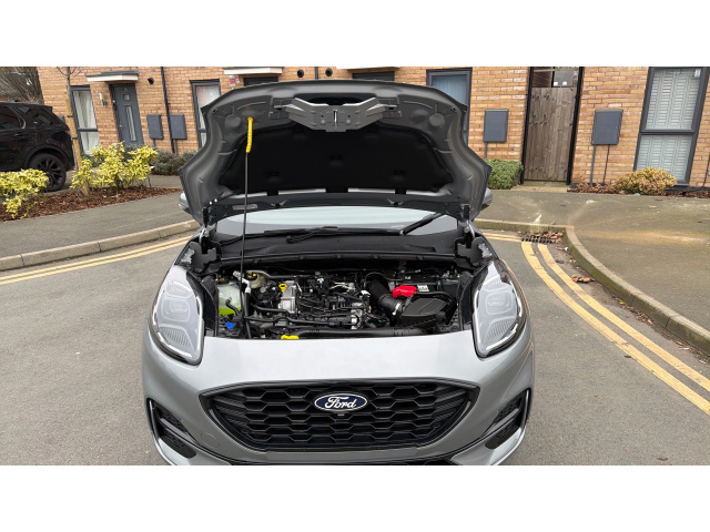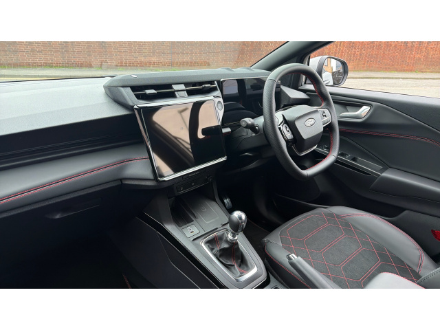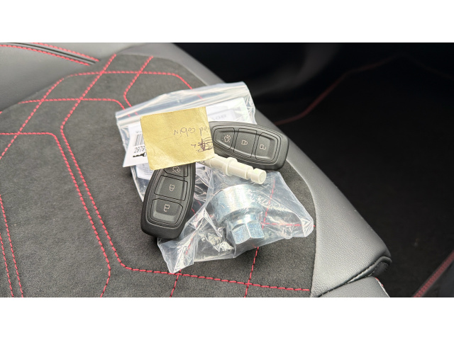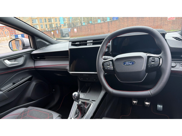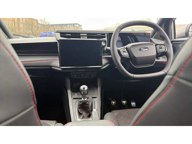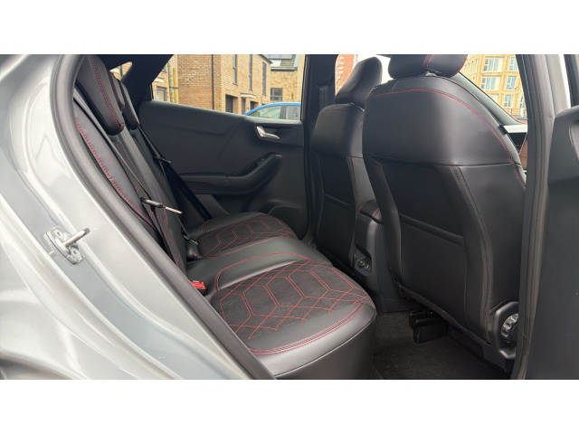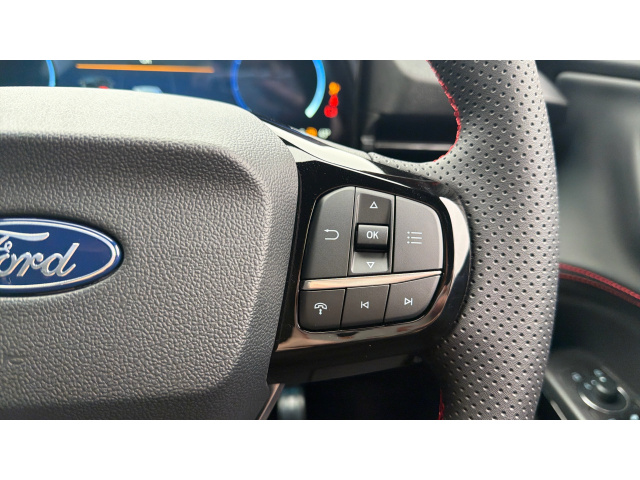 "features": "4.2\" Colour TFT Ice blue illumination analogue cluster with trip computer, Bluetooth system, Digital clock, Easy fuel capless refuelling system, Eco mode, Ford SYNC 4 Navigation with 13.2'' touchscreen, DAB radio, Emergency Assistance, Apple Carplay & Android Auto, 6 speakers & FordPass Connect, Lane keeping system - lane keeping alert and lane keeping aid, PAS, Rev counter, Selectable drive mode, Service interval indicator, Sports tuned suspension, Auto headlamps (on/off), Body coloured door handles, Electrically operated front and rear windows with one touch opening and closing, Electrically operated heated power fold door mirrors with puddle lamp with side indicators, Front variable intermittent wipers with electric wash, Full fixed LED headlamps, Heated rear window, LED daytime running lamp, LED rear lamps, LED third brake light, Polished twin tailpipe, Privacy glass, Quickclear heated windscreen, Rain sensor, Rear side wing doors, Tailgate wash/wipe, Unique ST-Line grille, full bodystyling kit, and large body coloured rear spoiler, 3 rear headrests, 3 seat bench in 2nd row, Cloth upholstery, Dual zone electronic air temperature control, Height adjustable front headrests, Isofix child seat preparation, Manual 2-way passenger seat adjust, Manual 4-way driver seat adjust, with manual lumbar adjust, Reach + rake adjustable steering column, Single front passenger seat, 3x3 point rear seatbelts, ABS+Electronic Brake force Distribution, Auto hold function, Driver airbag, EDL traction control, Electronic parking brake, Electronic stability control, Front and rear seatbelt reminder, Front inertia reel height adjustable seatbelts with pre-tensioners, Front passenger airbag, Front side airbags, Passenger airbag deactivate switch, Post collision braking, Pre collision assist with autonomous emergency braking and pedestrian/cyclist detection, Remote/power child rear door locks, Side curtain airbags, Three rear inertia reel lap/diagonal seatbelts, Tyre pressure monitoring system, Keyless entry and keyless start, MyKey system, Remote central locking & engine immobiliser, Thatcham alarm with power door dead locks, 17\" 5 spoke Rock mettalic finish alloy wheels, Mini steel spare wheel, ",