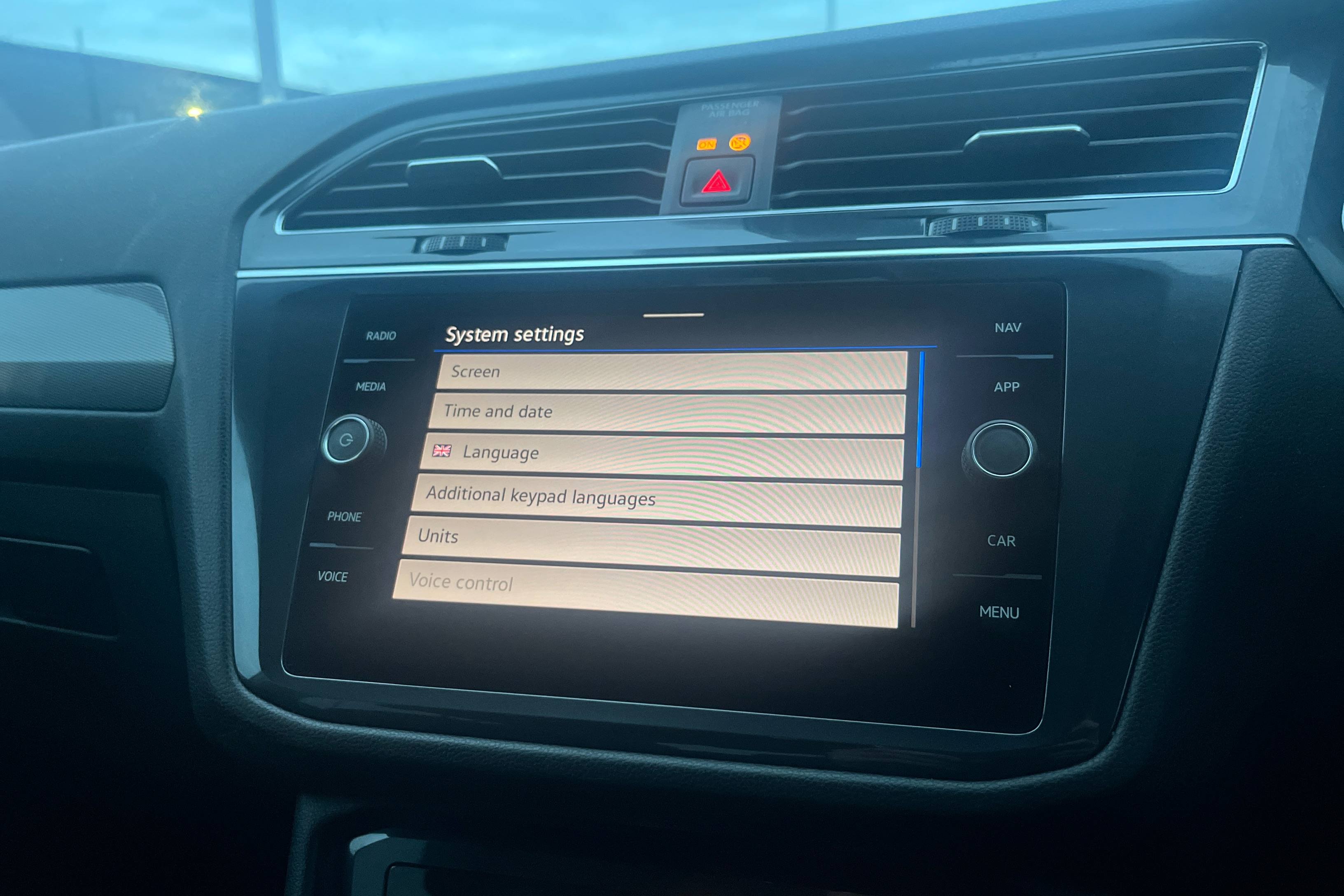 "Front passenger airbag",