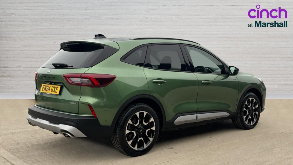 "features": "12.3\" digital colour instrument cluster, 360 degree view camera, e-Call (emergency call), Ford easy fuel, Ford SYNC 4 Navigation with 13\" touchscreen, DAB radio, emergency assistance, Andriod Auto/Apple CarPlay, 5G modem & Ford Pass connect, Front and rear parking sensors, Hands free power tailgate, Lane centering assist, Lane keeping aid with lane departure warning, Power assist steering, Selectable drive modes, Service interval indicator, 3-Pin Home charge cable (230V/16A Domestic socket), Active lifted suspension, Twist beam rear suspension, B&O premium audio system with 10 speakers, subwoofer and 2 USB ports, Active body styling kit including black mirror caps and a contrast black painted roof, Auto headlamps with high and low beam, Black roof rails, Body colour bumpers, Front LED fog lamps, LED daytime running lights, LED rear lights, Pop out door edge protectors, Power front/rear windows with global close, Power heated folding door mirrors with puddle lights, memory function and camera, Quickclear heated windscreen, Rain sensing wipers, Rear privacy glass, Rear side wing doors, Rear spoiler, Rear wiper, Third brake light, 12 way ergonomic power adjust driver's seat with memory (AGR certified), 12 way ergonomic power adjust passenger seat (AGR certified), 2nd row sliding seats, Active seats, Electronic automatic temperature control (EATC), Front and rear head restraints, Partial premium touch sensico upholstery, Rear centre head restraint, Single front passenger seat, Driver assistance pack with intelligent adaptive cruise control - Kuga FHEV/PHEV, 3x3 point rear seatbelts, Airbags - front driver/passenger, front and rear curtain, Drivers knee airbag, Dynamic brake support, Electronic stability control (ESC) and ABS, Evasive steering assist, Ford MyKey Gen 2 safety system, Manual child proof rear door locks, Pre collision assist with autonomous emergency braking, Rear seat Occupancy alert, Tyre pressure monitoring system, Engine immobiliser, Keyless entry and Ford power start button (Keyless start), Locking wheel nuts, Remote powered central double locking doors, Thatcham category 1 alarm, ",