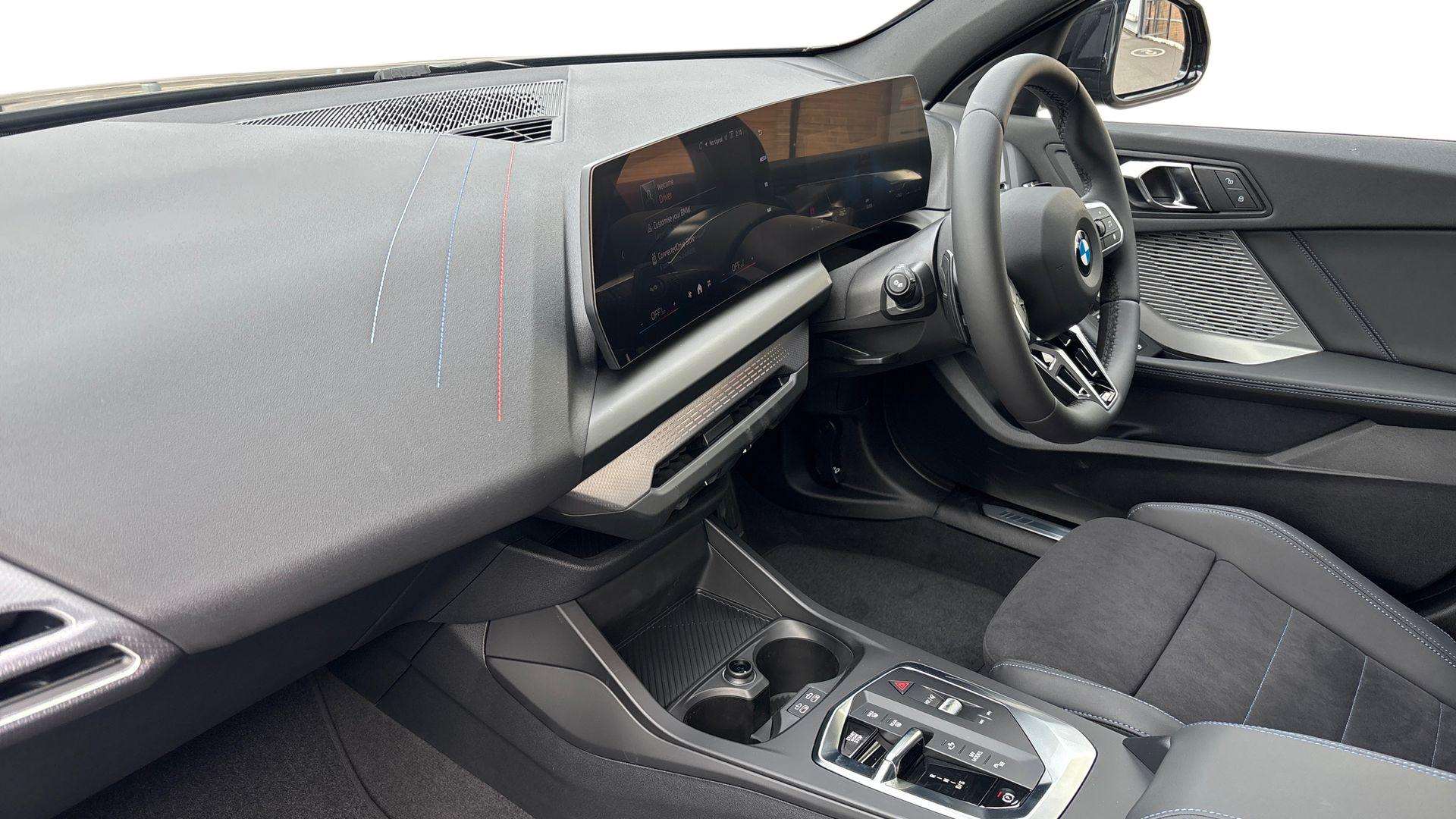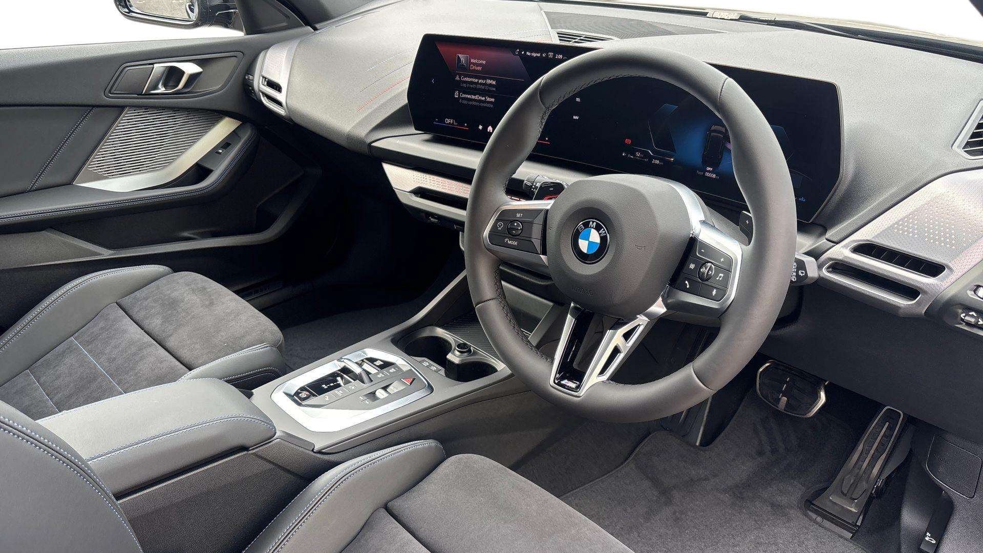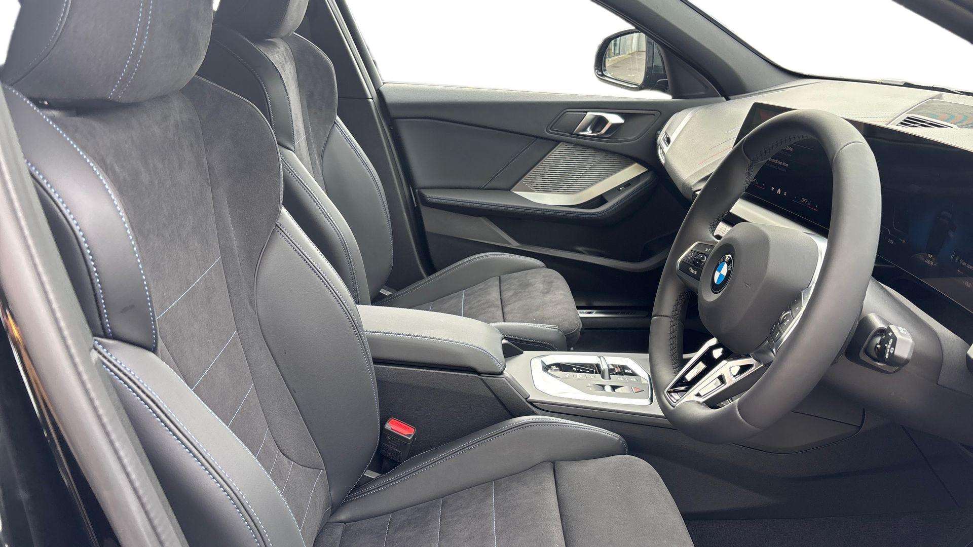 "features": "Active guard plus, Attentiveness assist, Bluetooth / WiFi interface for wireless connection of mobile terminal devices and audio streaming, BMW ConnectedDrive online services, BMW Live cockpit plus, BMW Teleservices, Check Control warning system for monitoring of lights and door/luggage compartment open warning, Eco pro mode, Electric power steering with Servotronic steering optimised at all speed ranges, Evasion assistant, Flat airvents in instrument panel with adjustable slats, Front and rear parking sensors, Front axle single joint with specific axle kinematics to minimise drive influences on steering + provide increased rigidity agile driving behaviour, Gearshift time display in manual mode, Integrated owners handbook, Left turn warning with brake function, My modes (Personal / Efficient / Sport), Oil sensor for level and grade, On board computer, Optimum shift indicator, Park assist including reversing assistant, lateral parking aid and reversing assist camera, Personal e-SIM, Personal Profile, Pull away assistant, Rigidly mounted rear subframe - Multi link construction with separate spring / damper configuration and excellent driving characteristics, Speed limit Info including no-overtaking indicator, Speed limiter, 49 litre fuel tank, Aluminium lightweight construction, Anti roll bar front and rear, Balancer shaft, Double VANOS twin scroll turbocharging system, Drive Performance Control, Electronic differential lock, Electronic selector lever, High precision injection, M Adaptive suspension, Petrol Particulate Filter, Steptronic transmission with double clutch, Twin tube gas filled shock absorbers with degressive characteristic curve, VALVETRONIC engine management, DAB Digital radio, Auto dimming rear view mirror, Automatic windscreen wipers and automatic headlight, Body colour door handles, Body colour roof trims, Chrome 'M' logo side designation, Chrome exhaust twin tailpipes round 90mm in left, Chrome kidney grille frame with Satin Aluminium struts, Direction indicator side lights in exterior mirrors, Electrically adjustable exterior mirror with mirror adjustment switch on drivers armrest and aspheric on driver side, convex on passenger side, Exterior M sport design elements, Fading support, Folding side mirrors with auto dimming/folding wing mirrors with auto dimming, Follow me home headlights, Front and rear bumper system with replaceable deformation elements, Front and rear electric windows with open and close fingertip control, anti trap facility and comfort closing, Front bumper panel with M specific design in vehicle colour with inserts in black high gloss, Front door sill finishers in black plastic with M designation in metallic look, Green tinted heat protection glazing, Heated rear window, High gloss black exterior mirrors, High gloss shadowline window frame, Recess cover mirror frames and B/C pillar embelisher trim, High level third brake light, Integrated front windscreen with washer jets, LED daytime running lights, LED eyebrow turn indicators, LED front fog lights, LED Headlights, Lightweight engineering, Matt black air guide grilles, Matt black wheel arch trim, Model badge on tailgate right, Nearside reverse light in rear light cluster, Preparation for high beam assistant, Rain sensor, Rear bumper panel with M-specific design in vehicle colour with inserts in black high gloss, Rear fog lights, Rear side wing doors, Rear window wiper, Shark fin antenna, Side sill covers with M specific design in body colour, Trailer stabilisation logic, Visible VIN plate, Welcome lighting, 12V power socket in front centre console with blanking plug, 3 rear seat head restraints, 3 seat bench in 2nd row, 3 spoke sports leather steering wheel with black leather and stitching, pearl chrome decorative finish, specific M Badge, Anthracite front and rear floor mats, Anthracite headlining, Black boot net with lashing eyes, Cargo function on 2nd seat row, Child seat ISOFIX attachment for two outer rear seats and front passenger seat with anchorage points, Conditioned based service, Driver and front passenger backrest net on rear, Driver and front passenger seat heating, Driver side folding compartment in instrument panel, Folding rear clothes hook, Footrest and pedals in black plastic, Four grab handles integrated in roof lining, Front and rear door pockets with bottle holders, Front and rear side armrest integrated into door trim, Front armrest with storage compartment, Gearshift paddles on steering wheel, Glove compartment, Height adjustable front head restraints, Luggage compartment for bag hooks on left and right, foldable luggage compartment liner and four lashing eyelets, Manual adjust steering wheel, Multi-function controls for steering wheel, Rear seat backrest with manual 60:40 split folding with 3 top tether clips integrated on rear of seat panels, Single front passenger seat, Storage compartment in centre console, Storage compartment in luggage compartment, Stowage of the parcel shelf in luggage compartment trim, Sun visors with vanity mirrors and insert tab, Two front centre console cupholders, Type C two USB ports in rear centre console, Upper retaining strap integrated into backrest rear panels, Connected pack professional - 1 Series, Interior lights pack - 1 Series, M Sport exterior styling aerodynamics pack - 1 Series, 2 tone horn, 3 point seatbelts on all seats, front pyrotechnic belt tensioners, stopper and belt force limiters, rear coded belt buckles, Airbags - Front driver/passenger, front and rear curtain head protection, front side, manual deactivation of front passenger airbag, Anti lock braking system (ABS) with brake assist, BMW emergency call, Brake drying, Braking readiness, Child proof locking system in rear door, Comfort modes, Cornering brake control, Crash sensor activating of airbags, Unlocking doors, hazard warning lights, interior light, safety battery terminal, Driver and front passenger seat belt security check, Dynamic stability control + (D