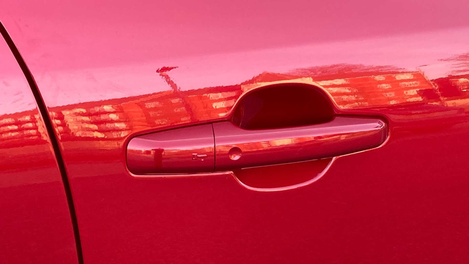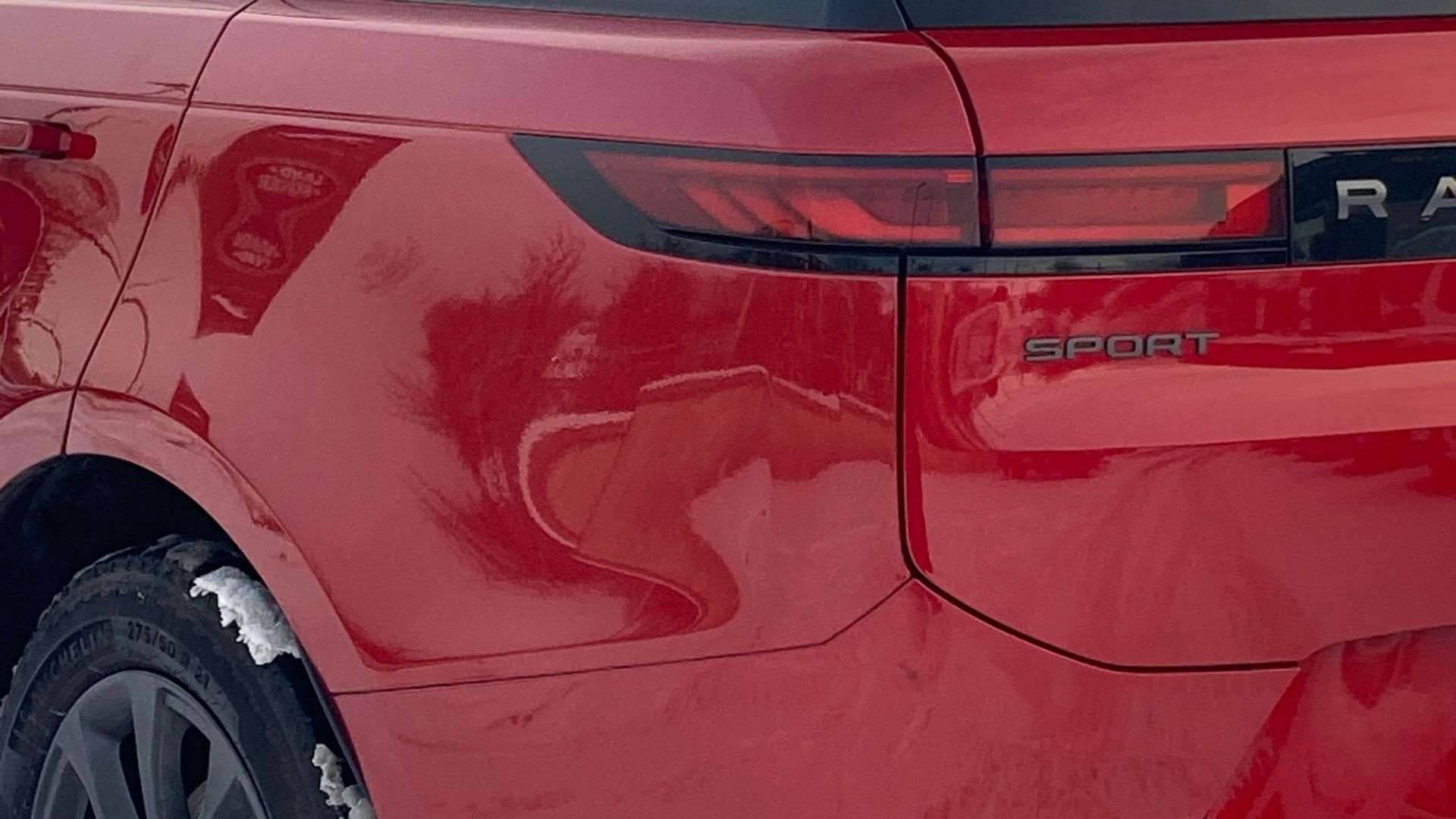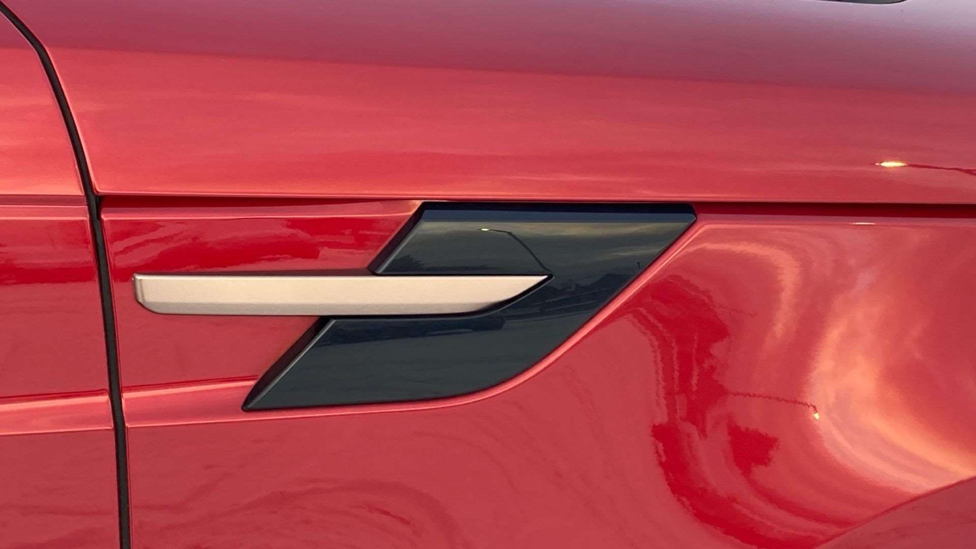 "R Dynamic badge on side door",