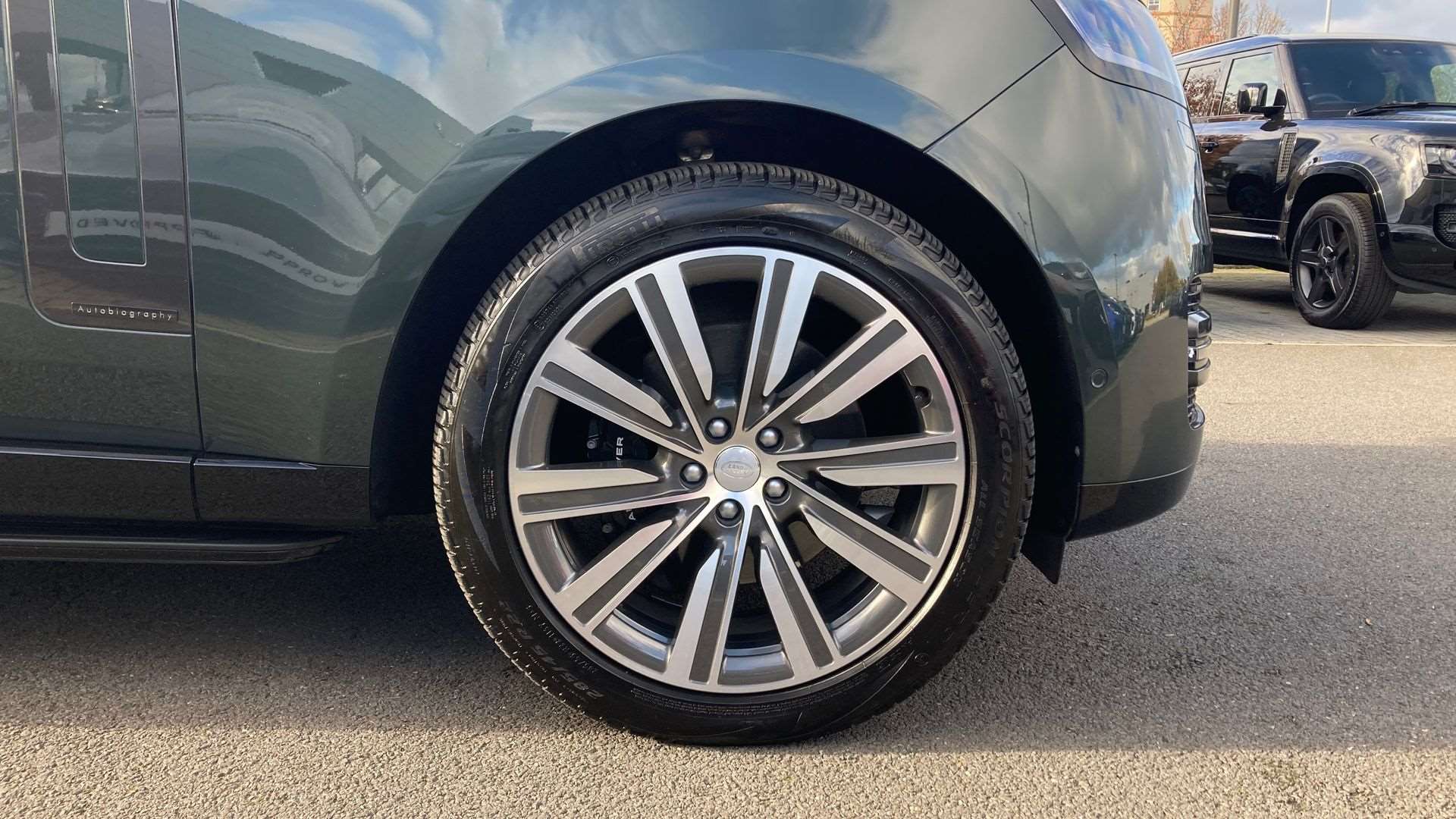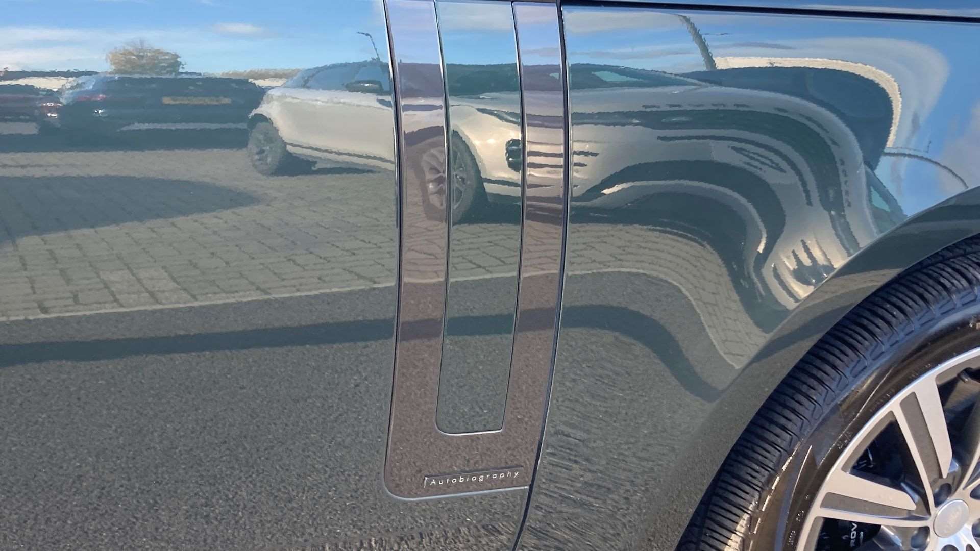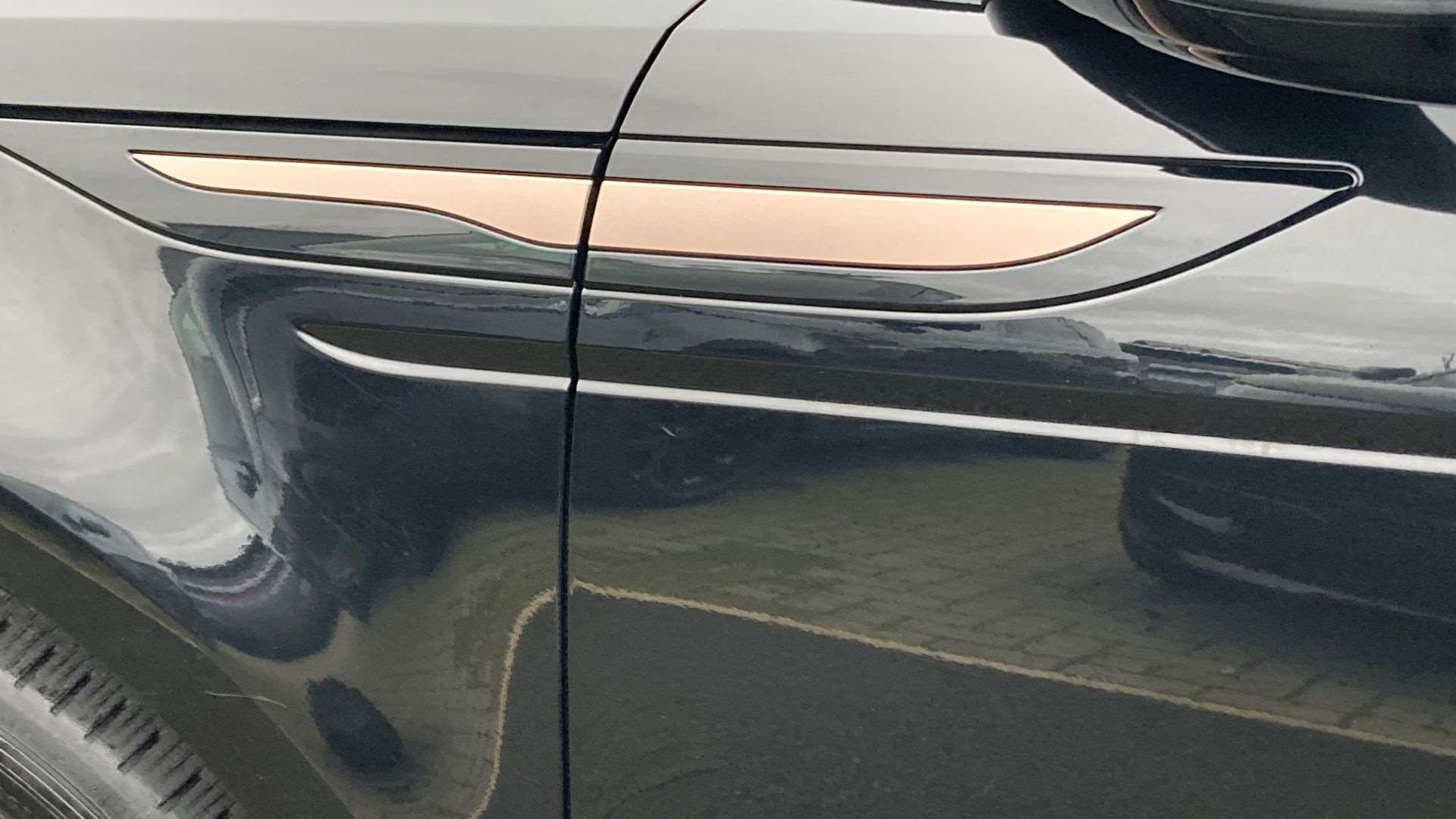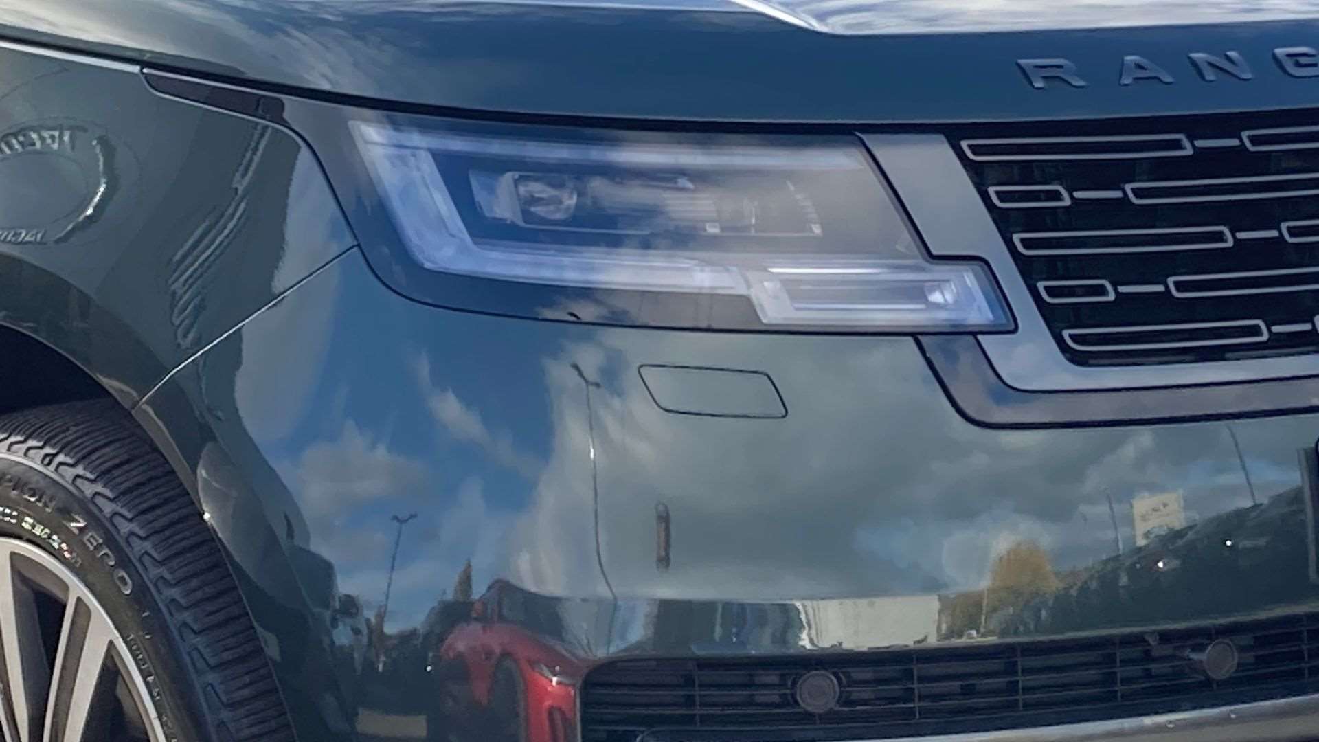 "R Dynamic badge on side door",