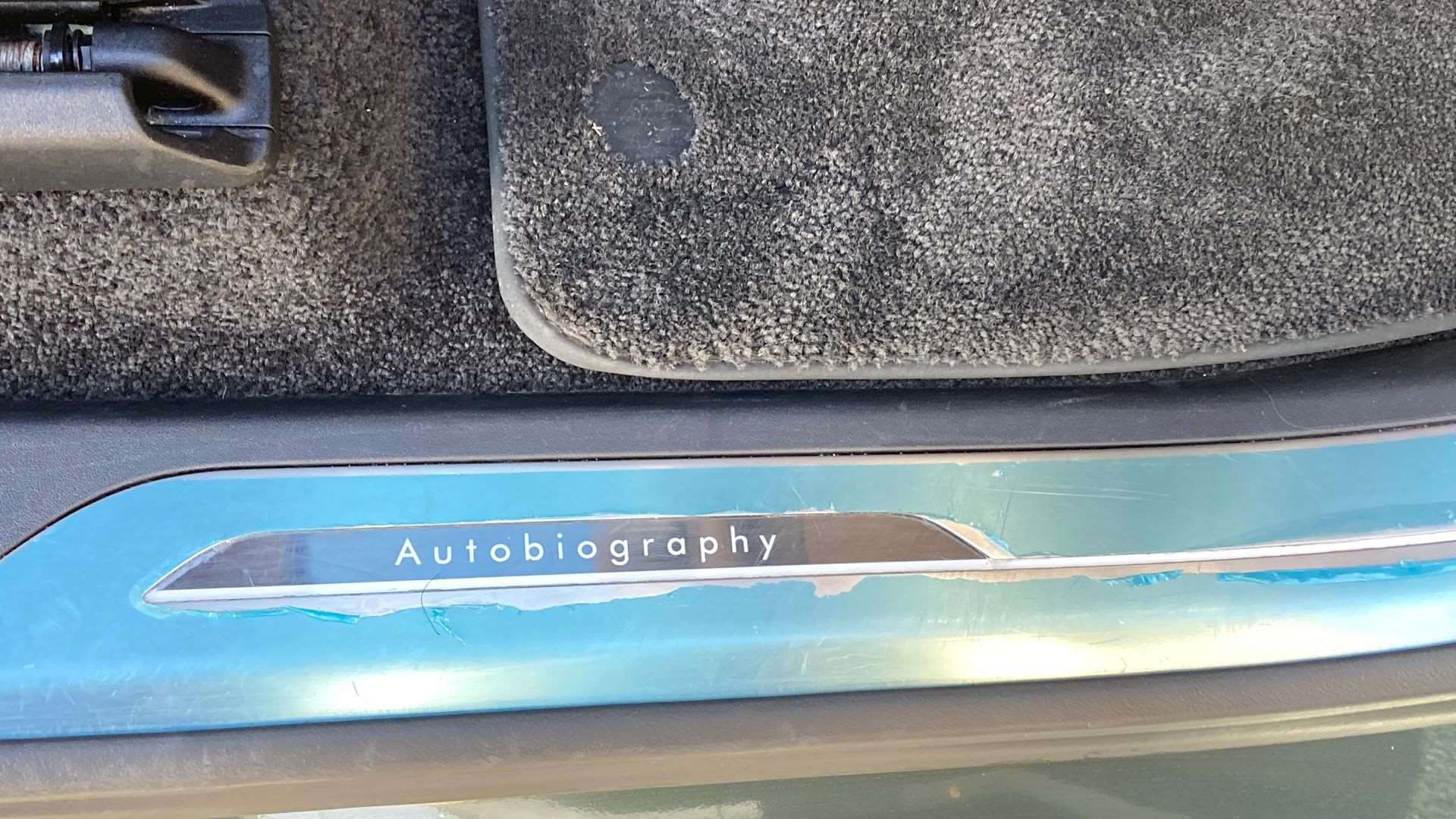 "Glovebox finisher with jaguar script",