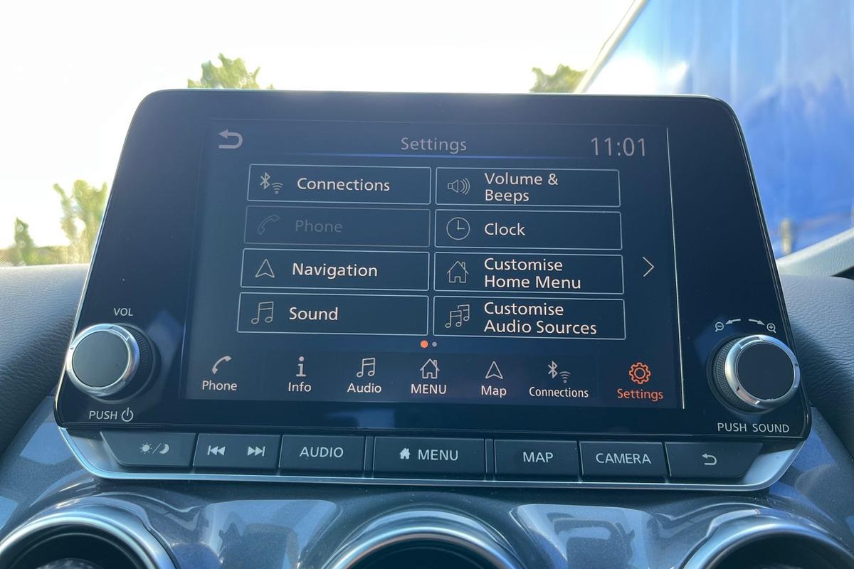 "features": "7\" High definition full colour TFT screen combimeter, Blind spot intervention, Blind spot warning, Drive assist custom mode, Drive modes (sport, normal, eco), Driver drowsiness and attention warning, Electric speed sensitive power steering, Emergency and breakdown call, Emergency lane keep assist, Emergency Stop Signal (ESS), Engine start/stop button, Event data recorder, Idle stop/start system, Intelligent Cruise control (ICC), Intelligent forward collision warning, Intelligent speed assist, Lane departure warning system, Nissan connect 12.3 inch touchscreen infotainment system, Outside temperature sensor, Rear cross traffic alert, Rear parking sensors, Rear view camera, Reversing detection, Wireless Apple CarPlay and wired Android Auto, Limited slip differential, 2 front USB-C ports, 6 speakers, AM/FM audio system with DAB, Bluetooth audio streaming, Auto rear wiper when reversing, Body colour mirror caps, Body coloured door handles, Bodyside mouldings, Chrome side window finisher, Electric auto folding door mirrors, Electrically adjustable and heated door mirrors with LED turn indicator, Follow me home headlights, High beam assist, Intelligent auto headlights, LED 3rd brake light, LED daytime running lights, LED Headlights, LED rear lights, One touch front and rear electric windows with remote opening and closing, One touch passenger window, Partially body coloured bumpers, Rear roof spoiler, Rear side wing doors, Shark fin antenna, Splash free rain sensing wipers, Three blink turn signal, 3 bench rear seats in 2nd row, 3 rear headrests, 60/40 split folding rear seat bench, Chrome interior door handles, Cloth upholstery, Dark headlining, Dual zone automatic climate control with pollen filter, Front door with bottle holders, Height adjustable front headrests, Leather shift knob, Luggage space lighting, Multifunction steering wheel, Passenger seat back pocket, Rear door bottle holders, Single front passenger seat, TEP steering wheel, Tilt/telescopic adjustable steering wheel, Two rear isofix child seat anchorage points with top tether, White ambient light (Partial area coverage), 3x3 point rear seatbelt pretensioners + load limiters, Autonomous emergency braking, Child locks on rear doors, Curtain and front side, far side airbags, Driver and passenger airbags, Driver, passenger and 2nd row rear seat belt reminder, Electric handbrake with auto hold function, Front seatbelt pretensioners + load limiters, Height adjustable front seatbelts, Hill start assist, intelligent front emergency braking, Rear automatic braking, Tyre pressure monitoring system, Vehicle dynamic control, Engine immobiliser, Intelligent key with walk away lock and approach unlock functions, Remote central door locking with deadlocking, Thatcham alarm, 17\" Alloy wheels, Tyre puncture repair kit, ",