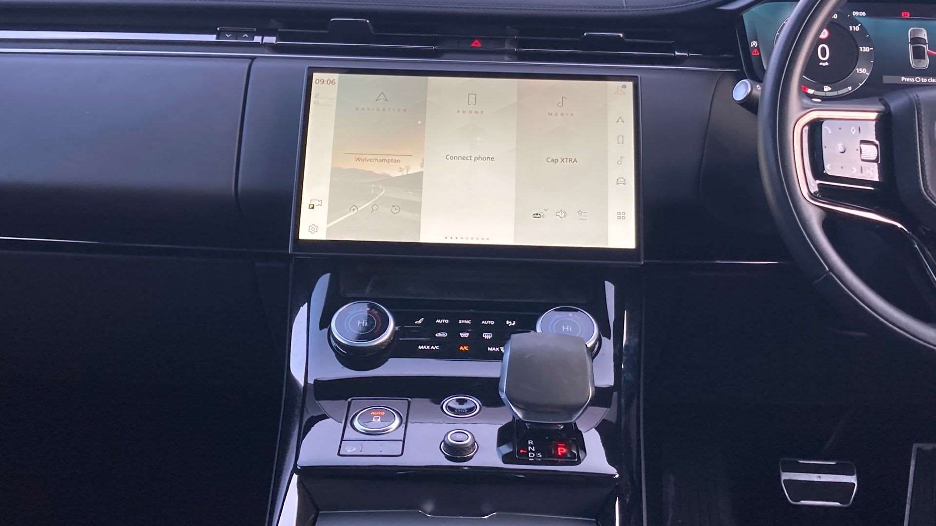 "Start up sequence with movement in dials and lighting",