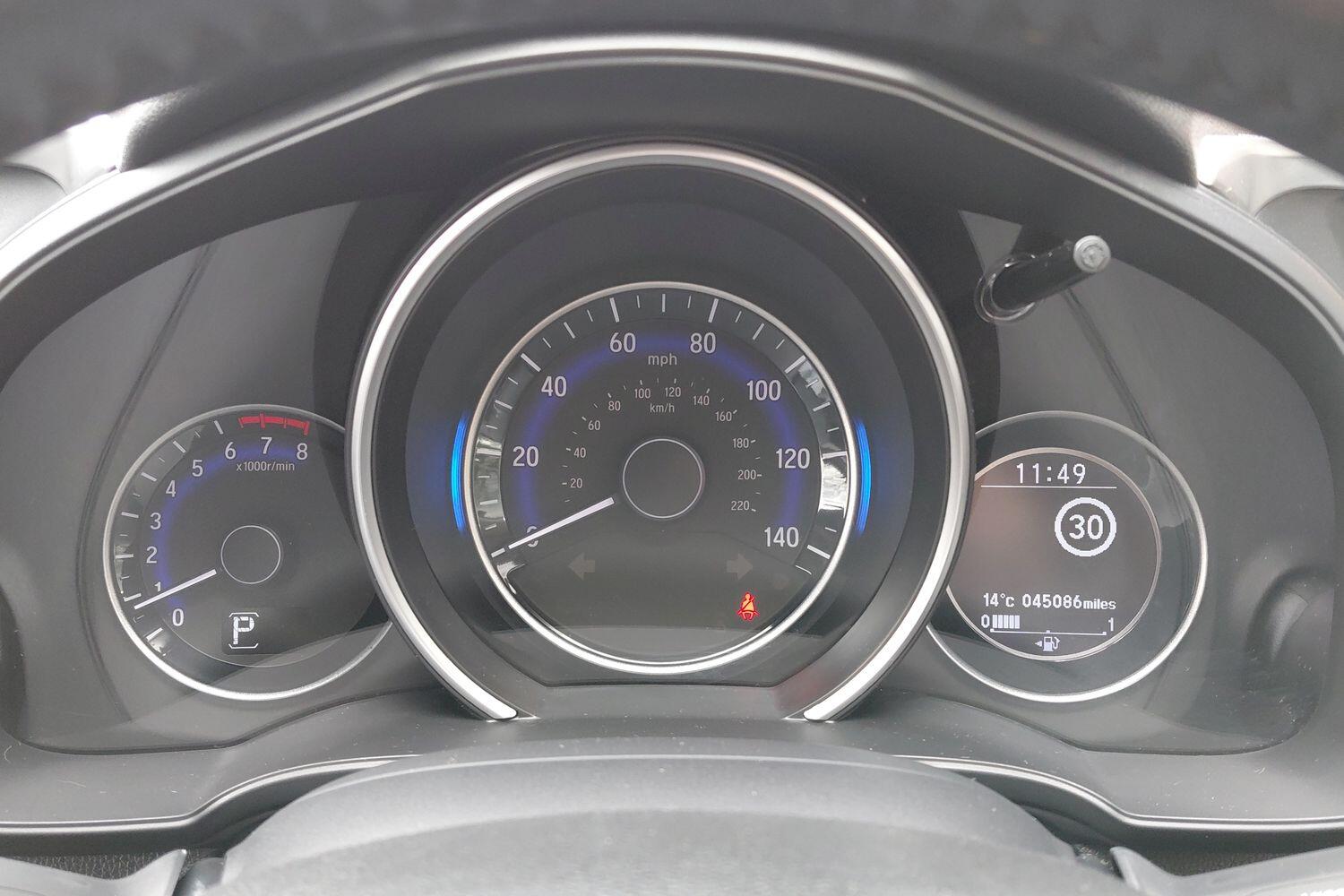 "Speedo and rev counter, electronic odometer, trip, service interval display and exterior temperature gauge",