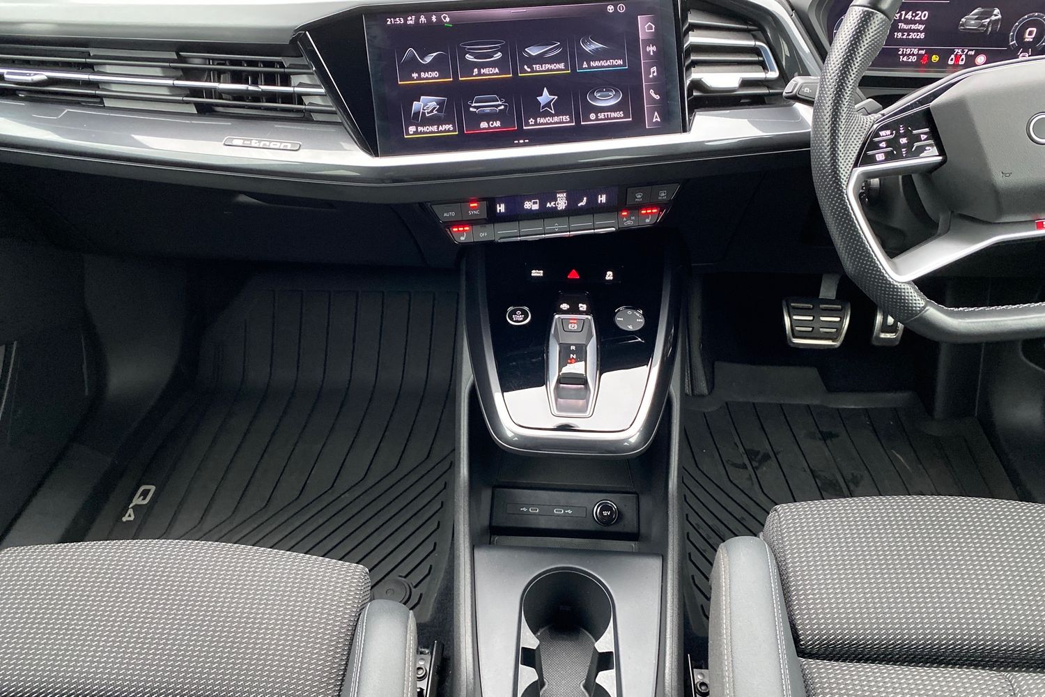 "2 USB-C ports in the front, 2 USB-C charging sockets on the center console in the rear",