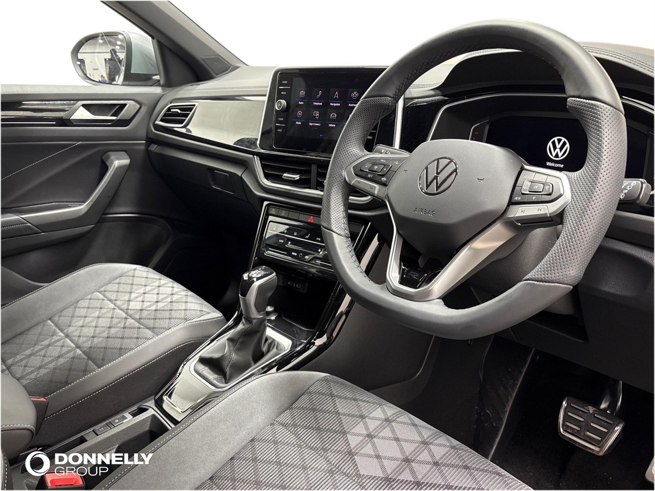 "3 Spoke tailored steering wheel with chrome trim",