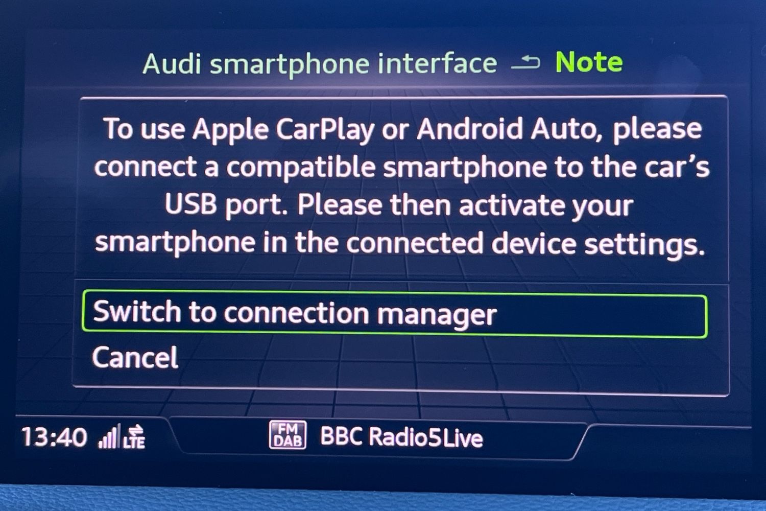 "Audi music interface - apple iPod, apple iPhone, USB storage media, compatible MP3 players, 2 x USB charging points and 1 x Aux-in",