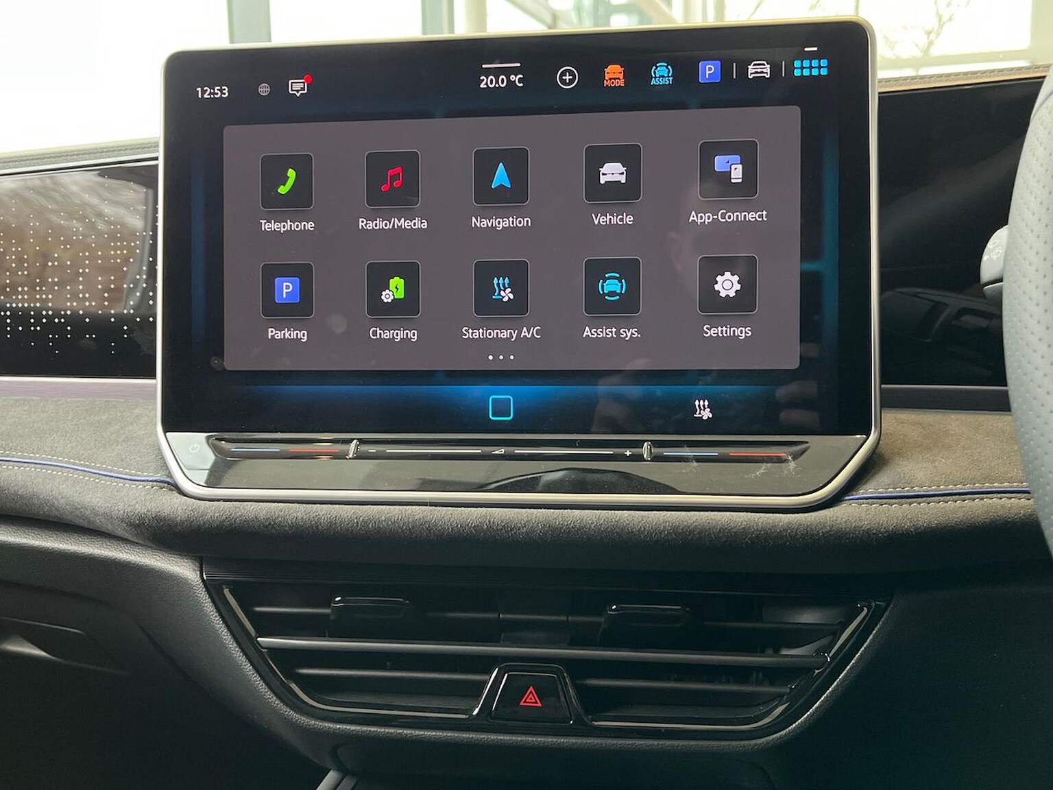"Front windscreen with grey tinted sunband",