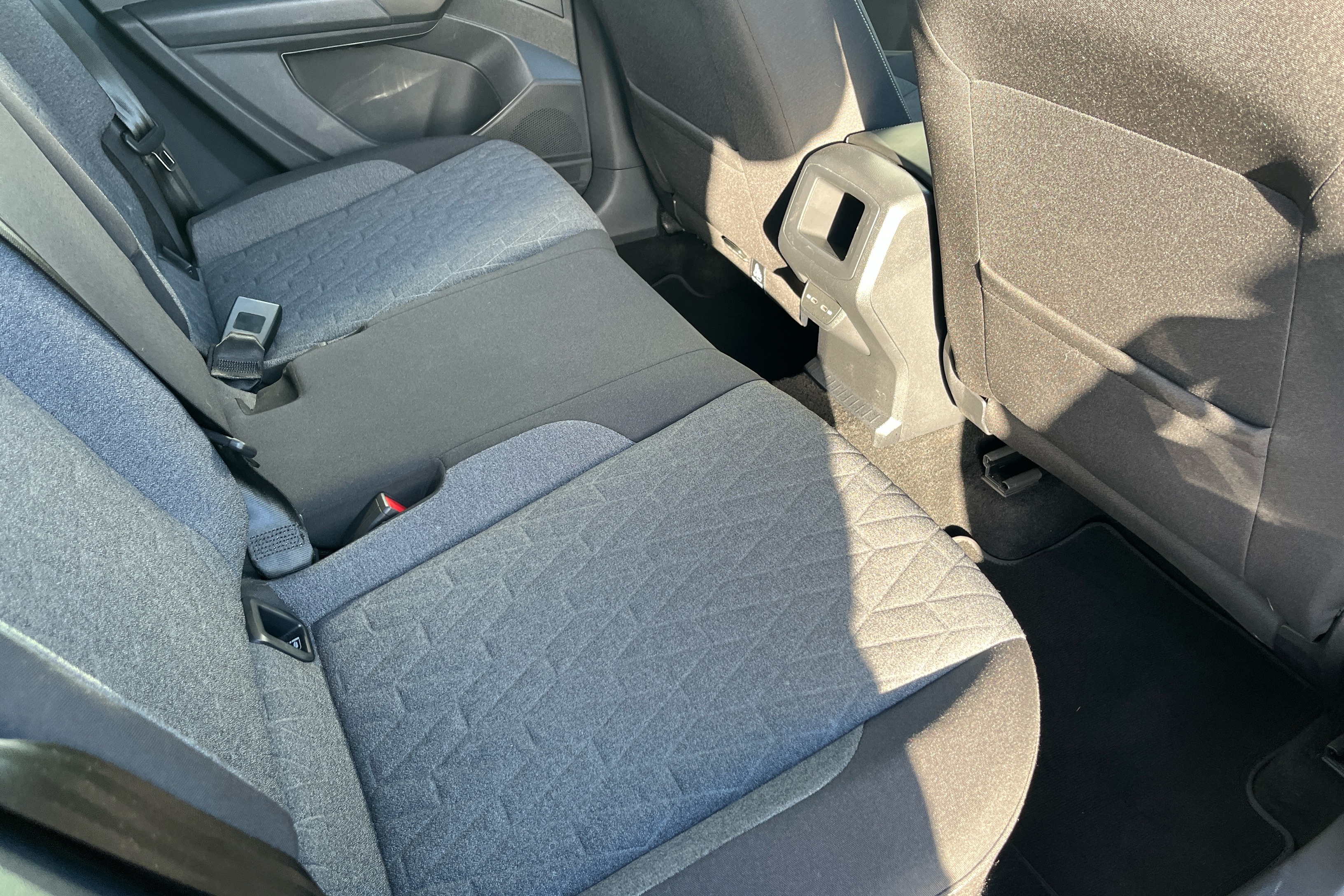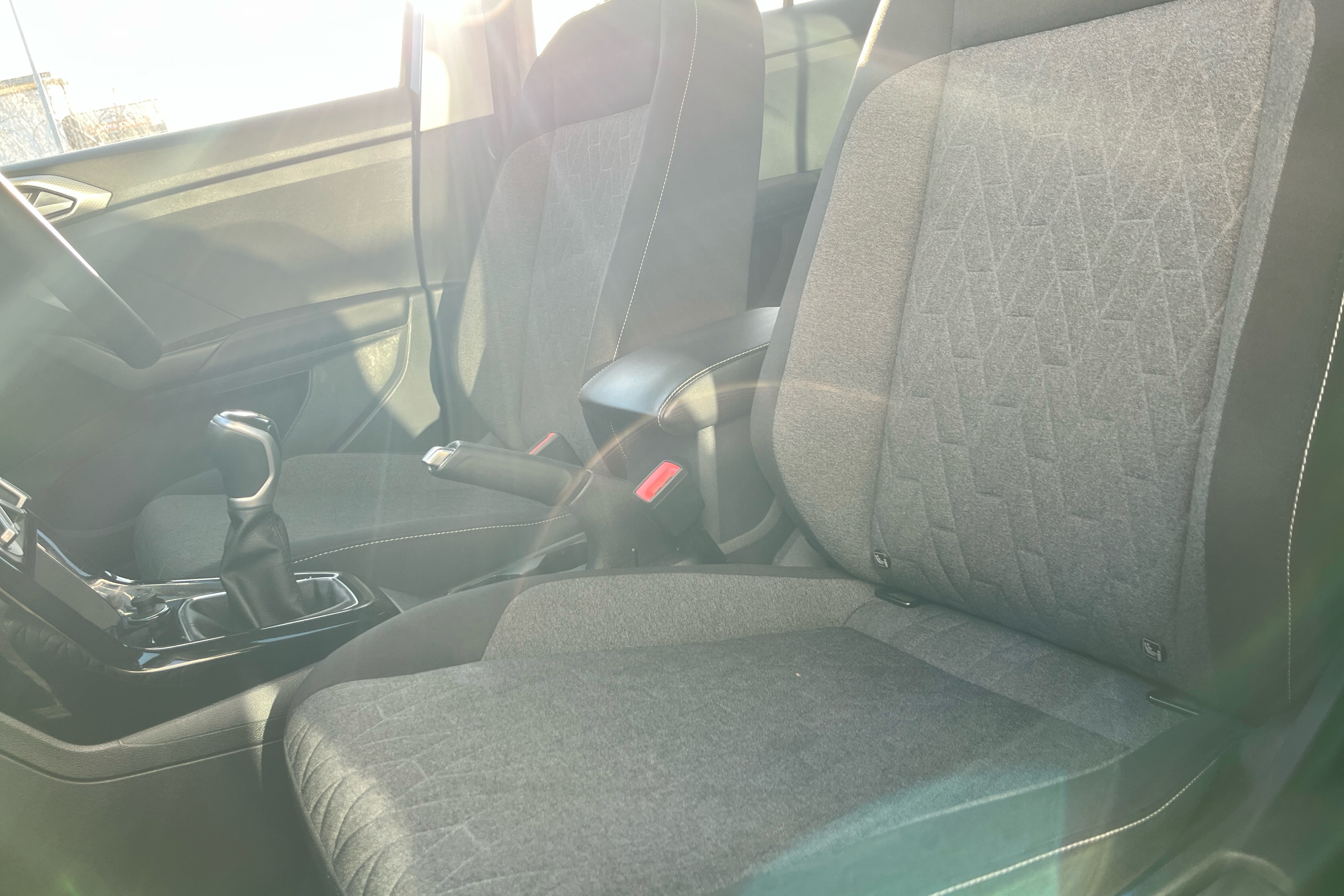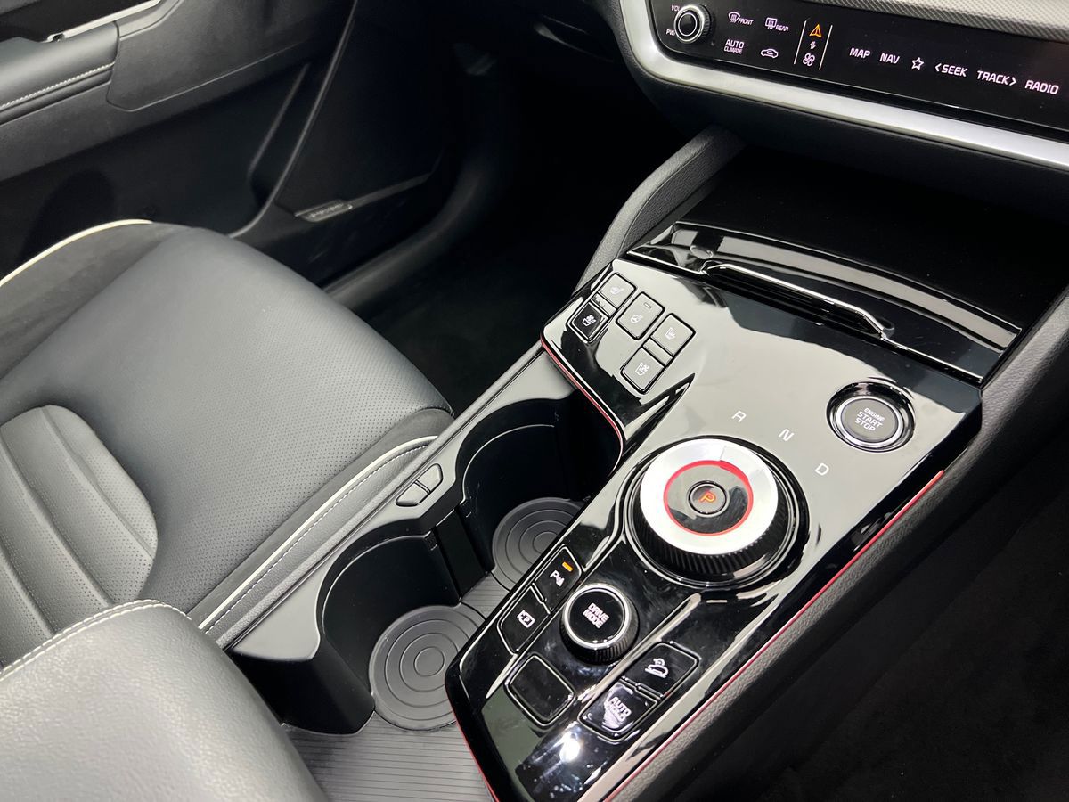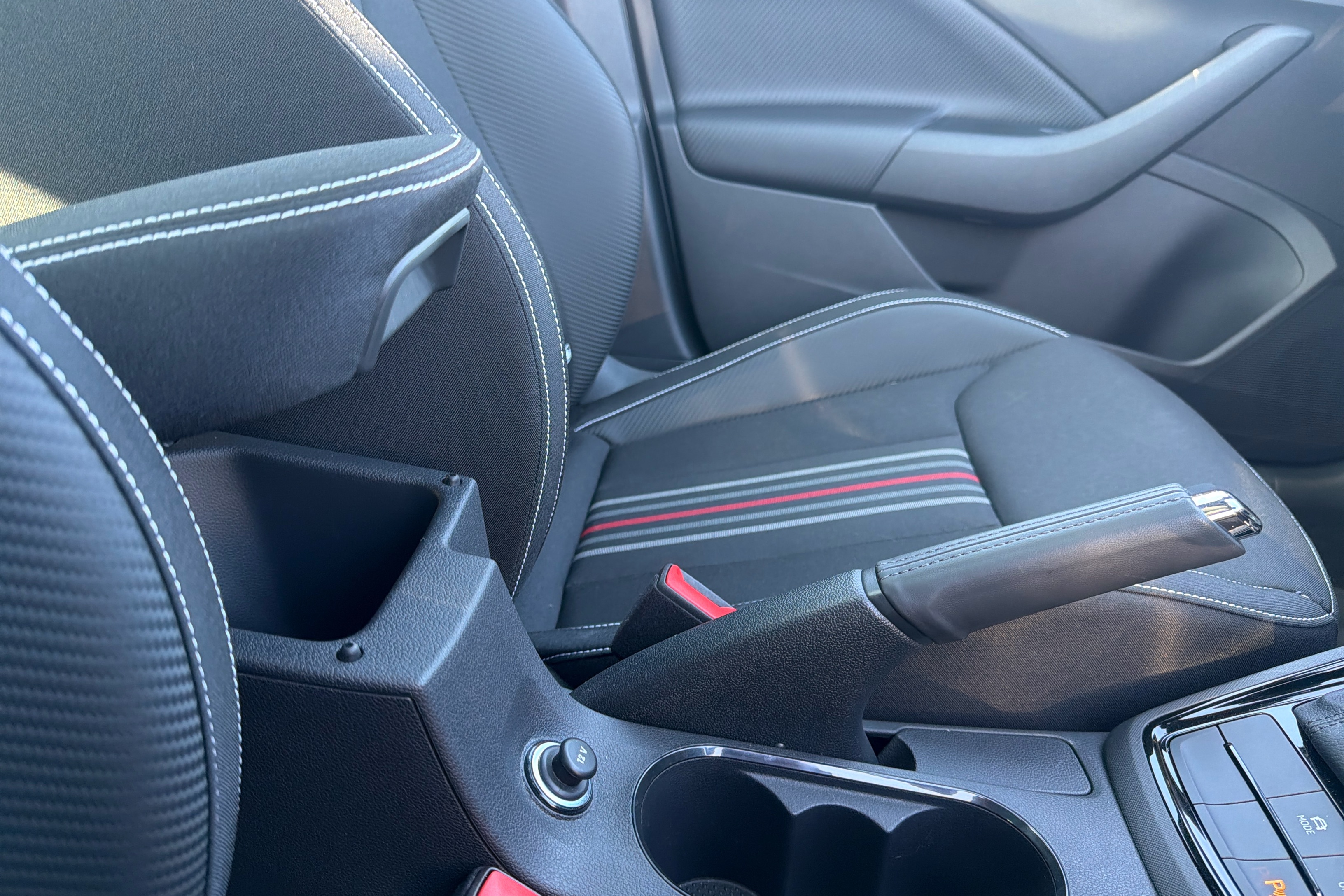 "Narrow centre console with cup holder and compartment for mobile phone",