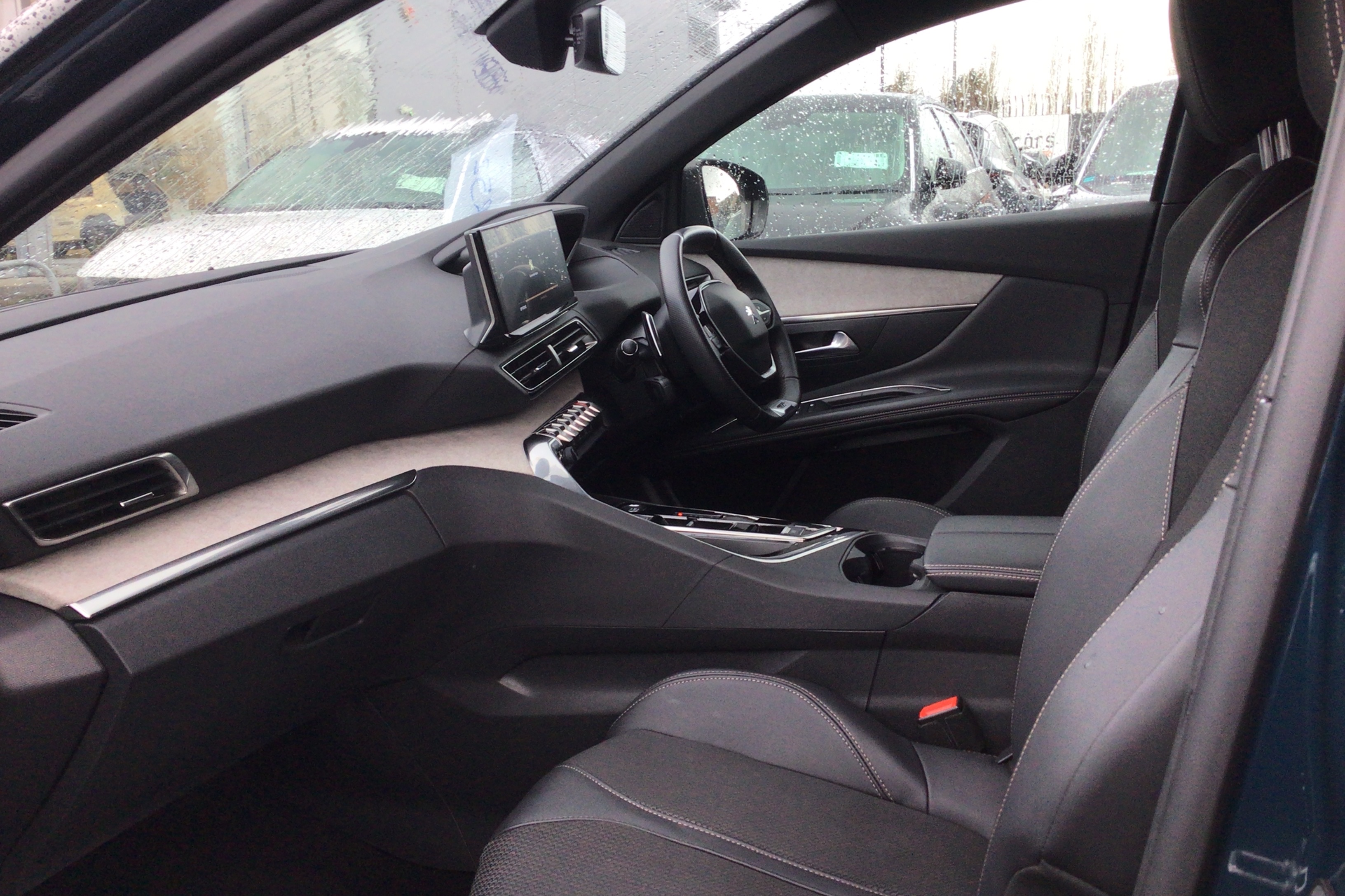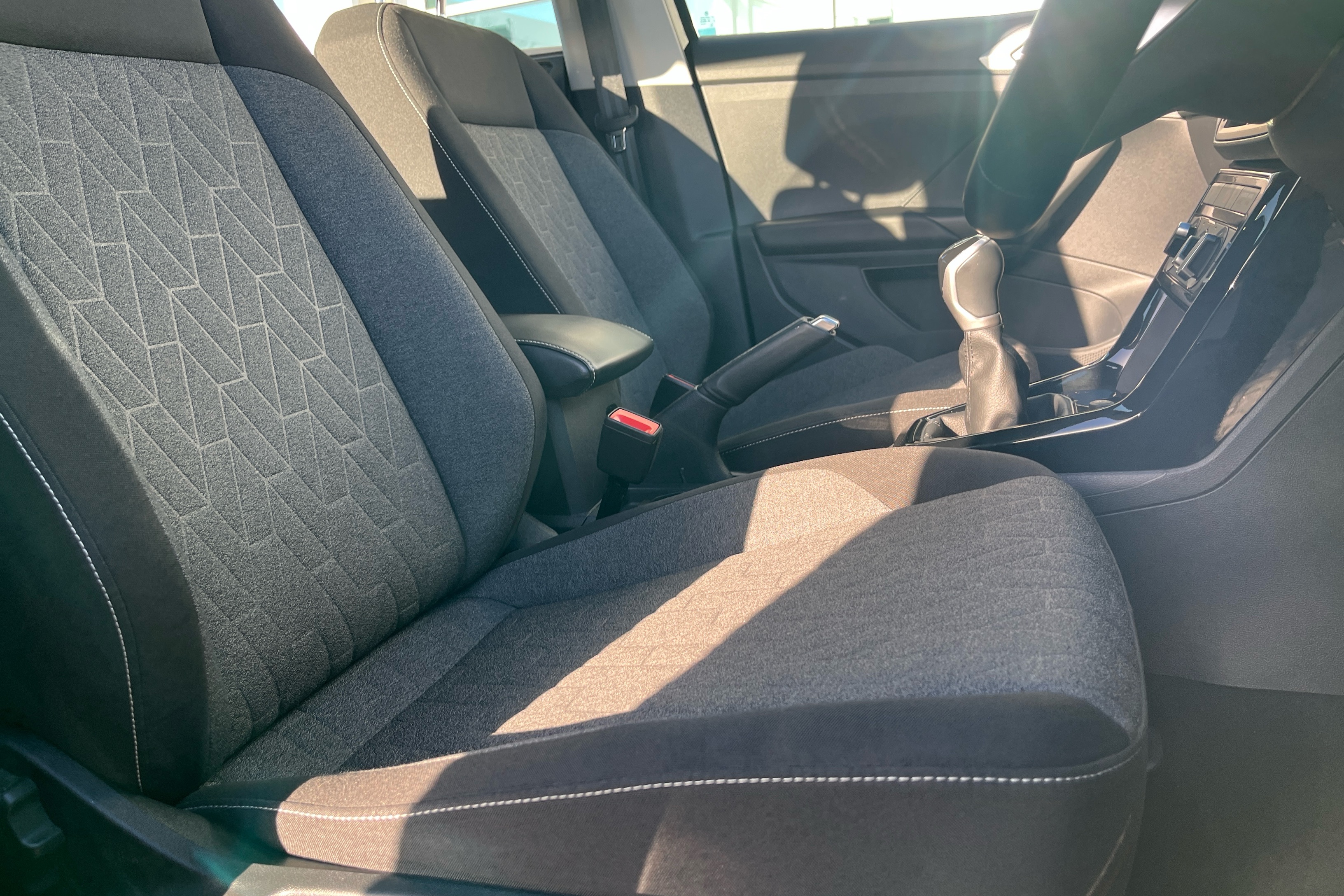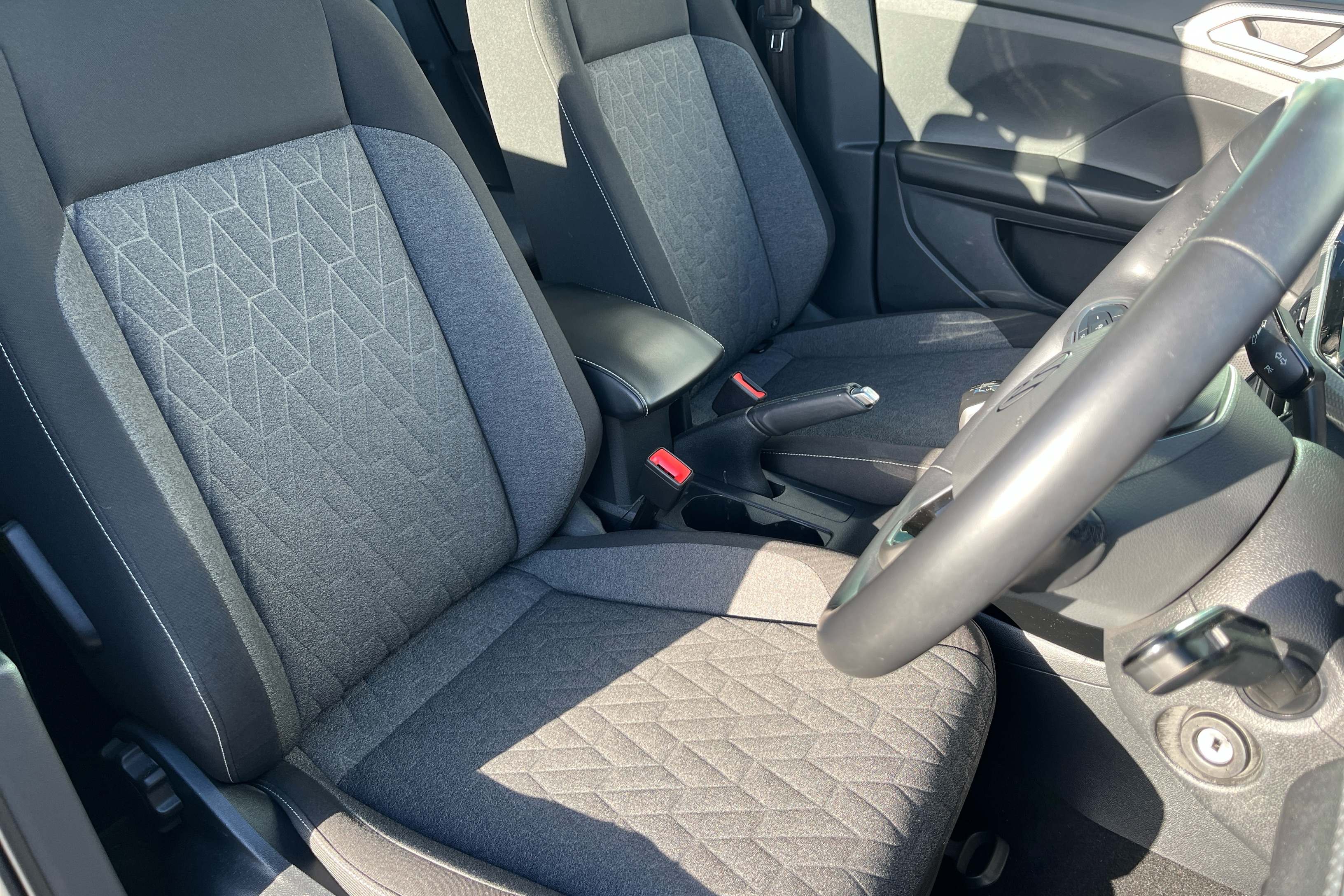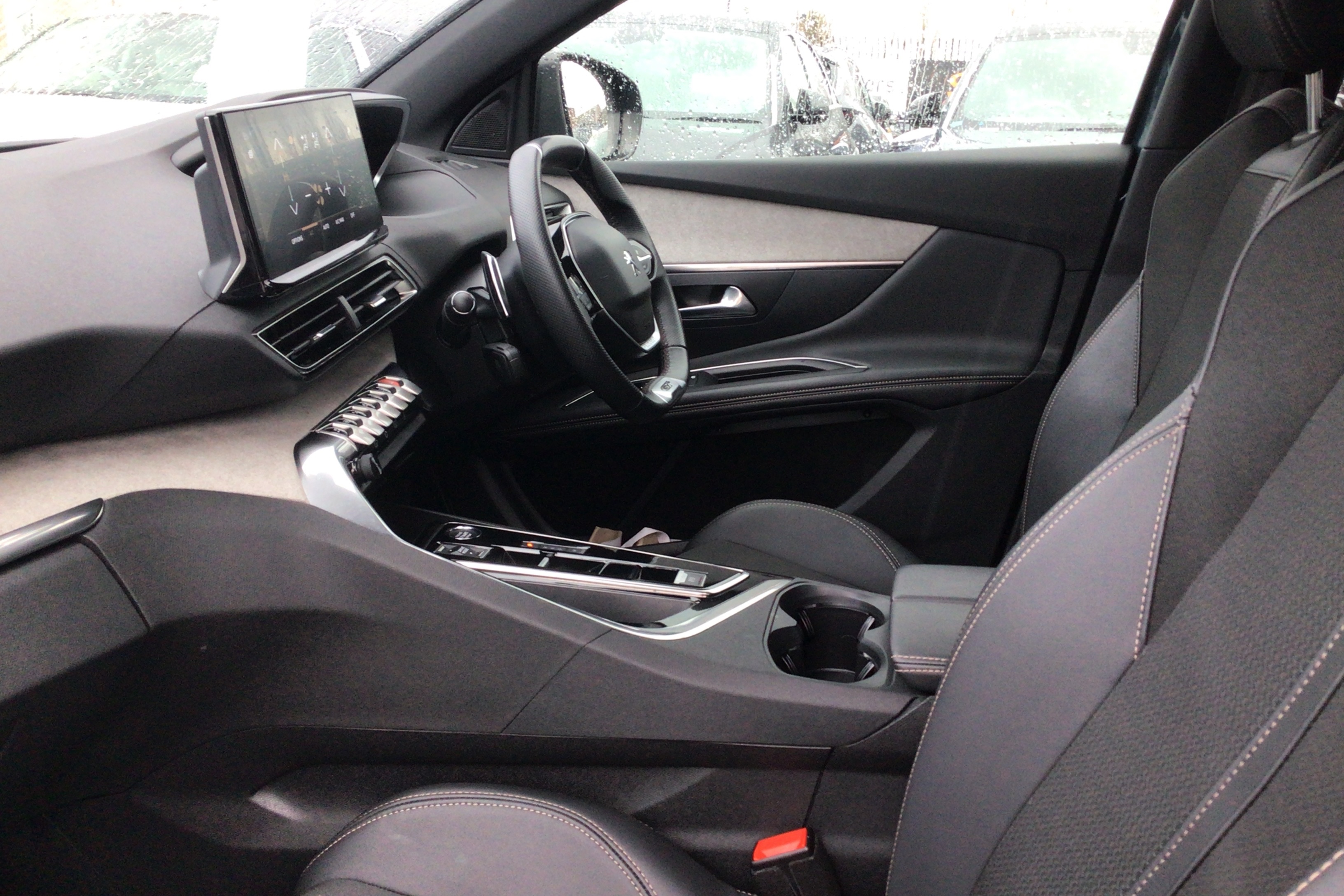"Narrow centre console with cup holder and compartment for mobile phone",