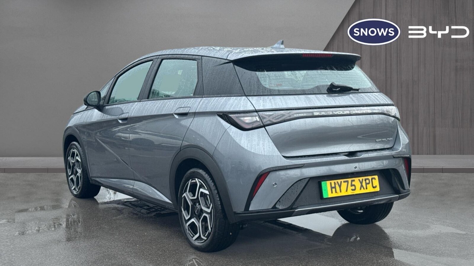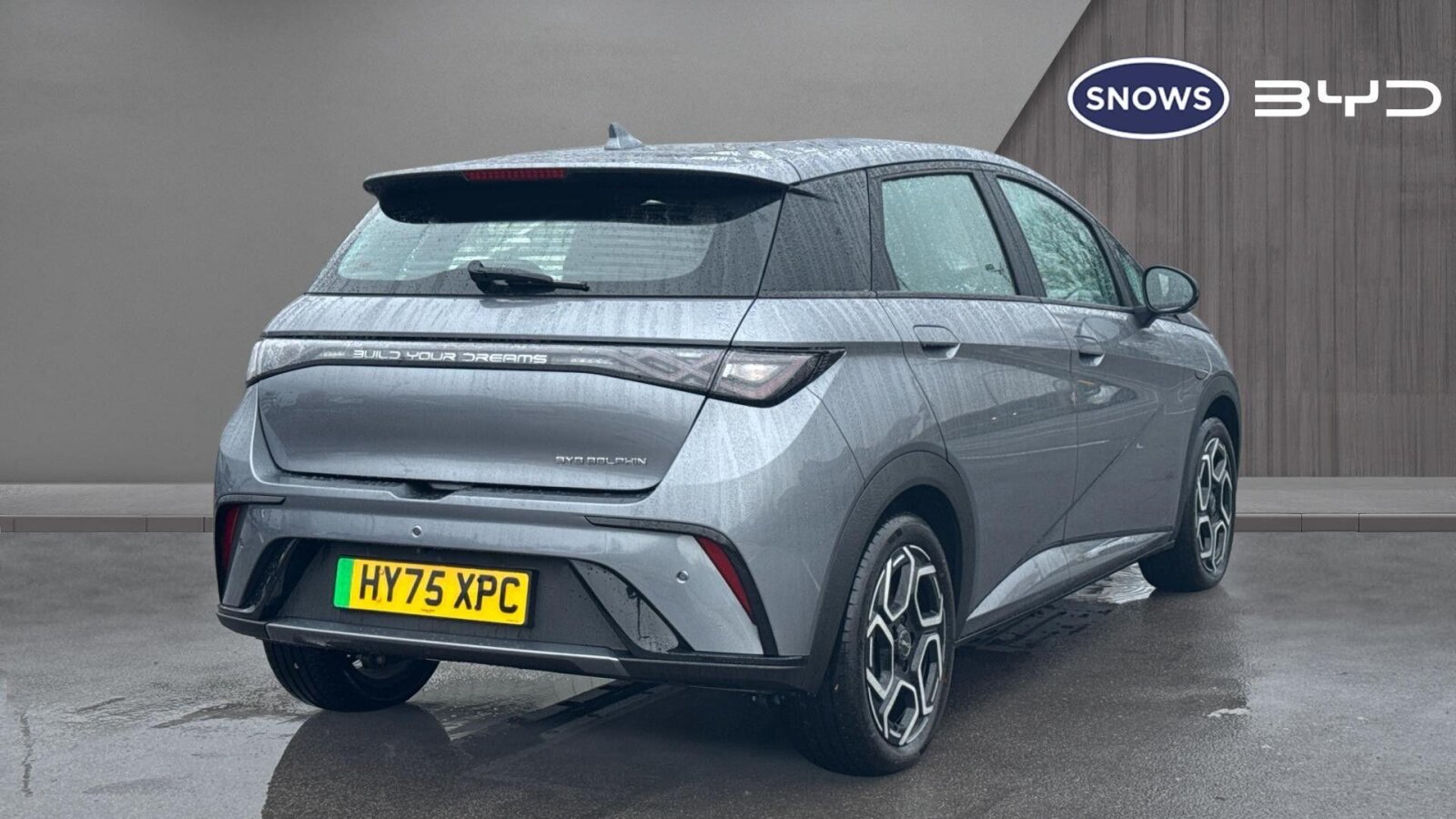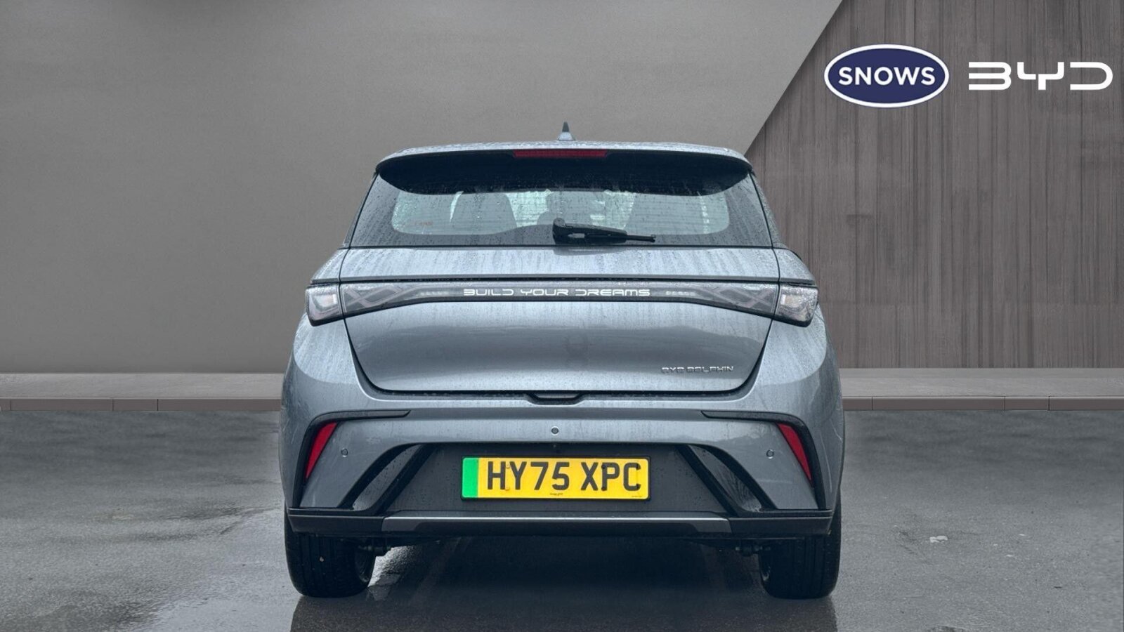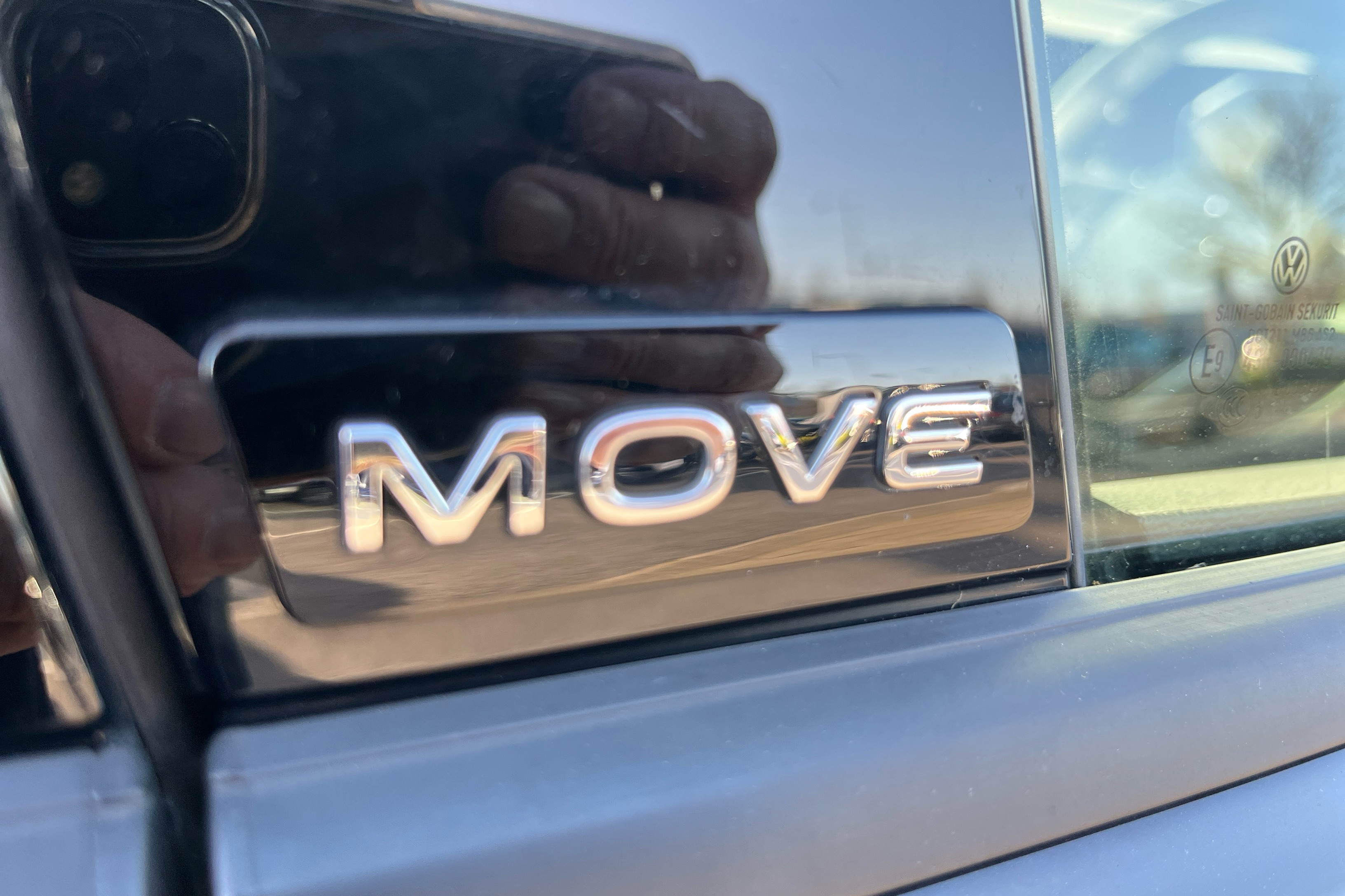"Rear Transporter nameplate in black grained decorative trim",
