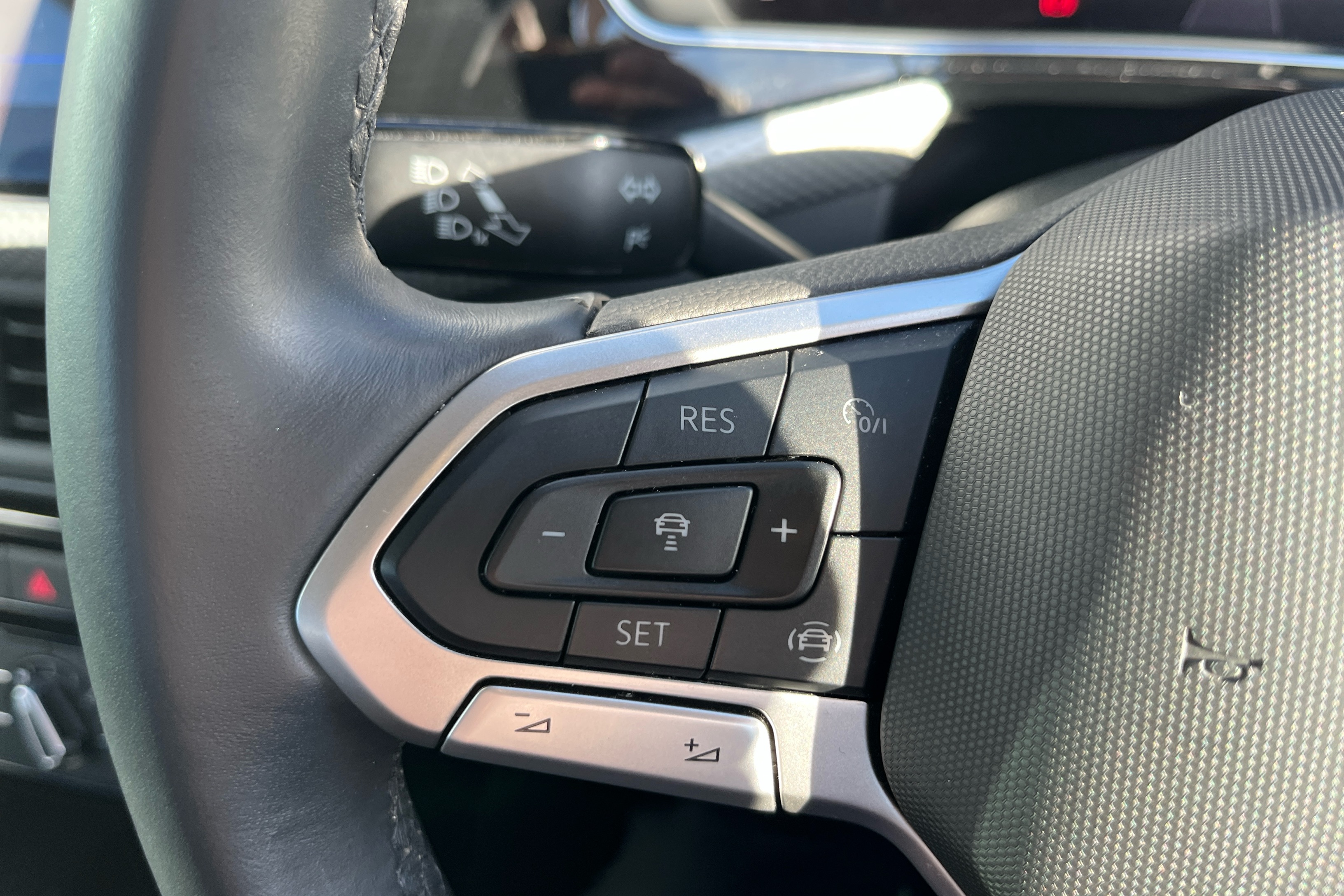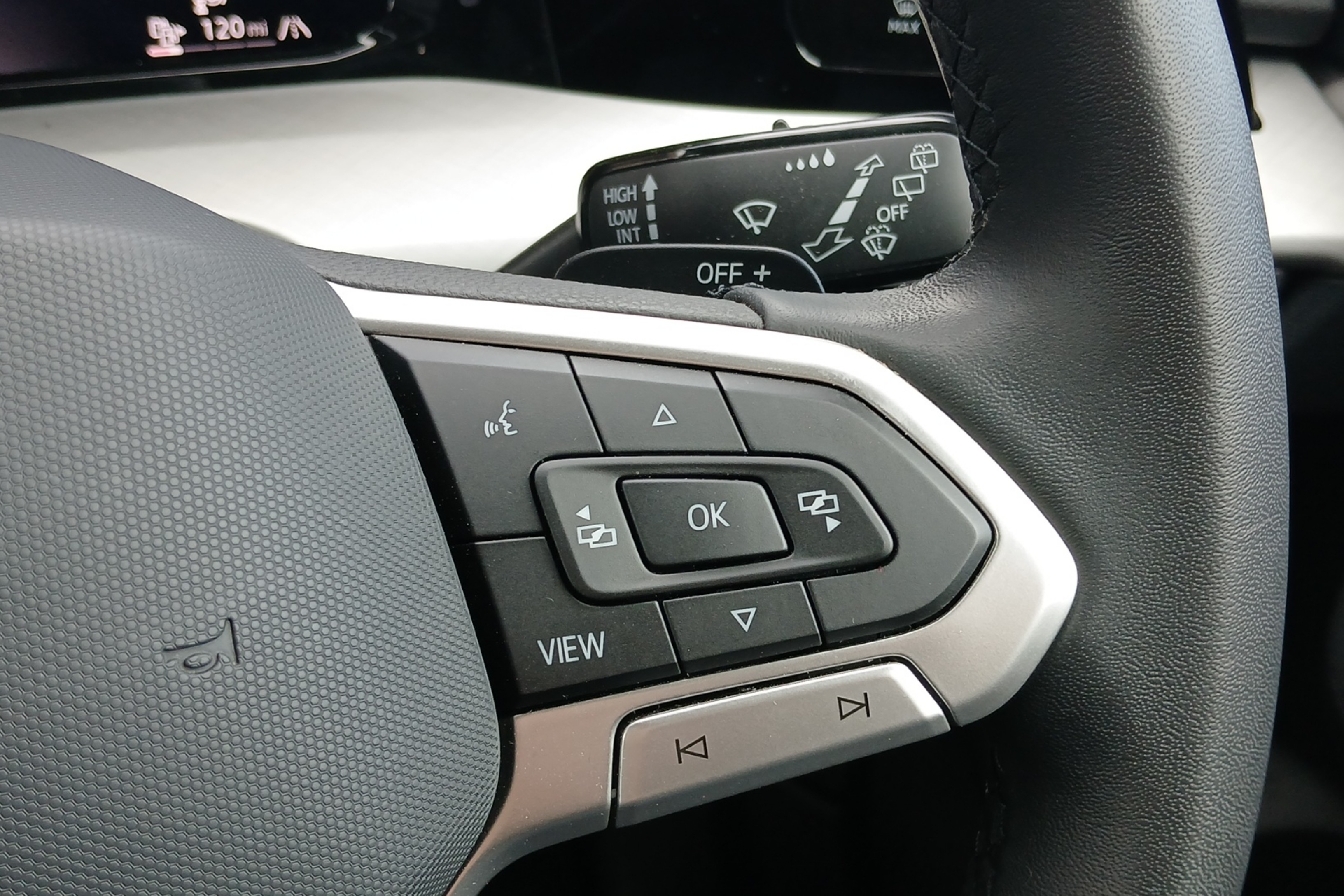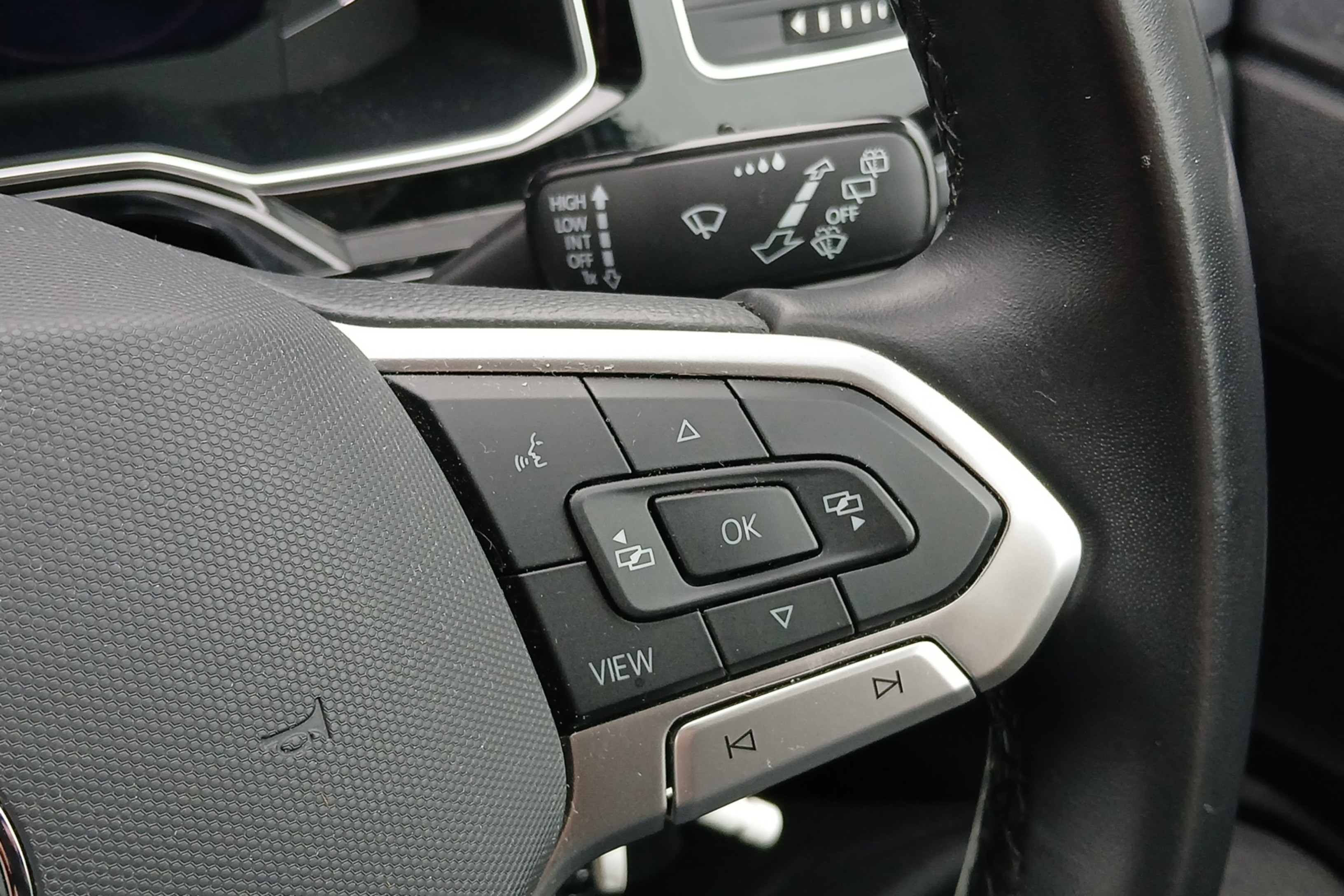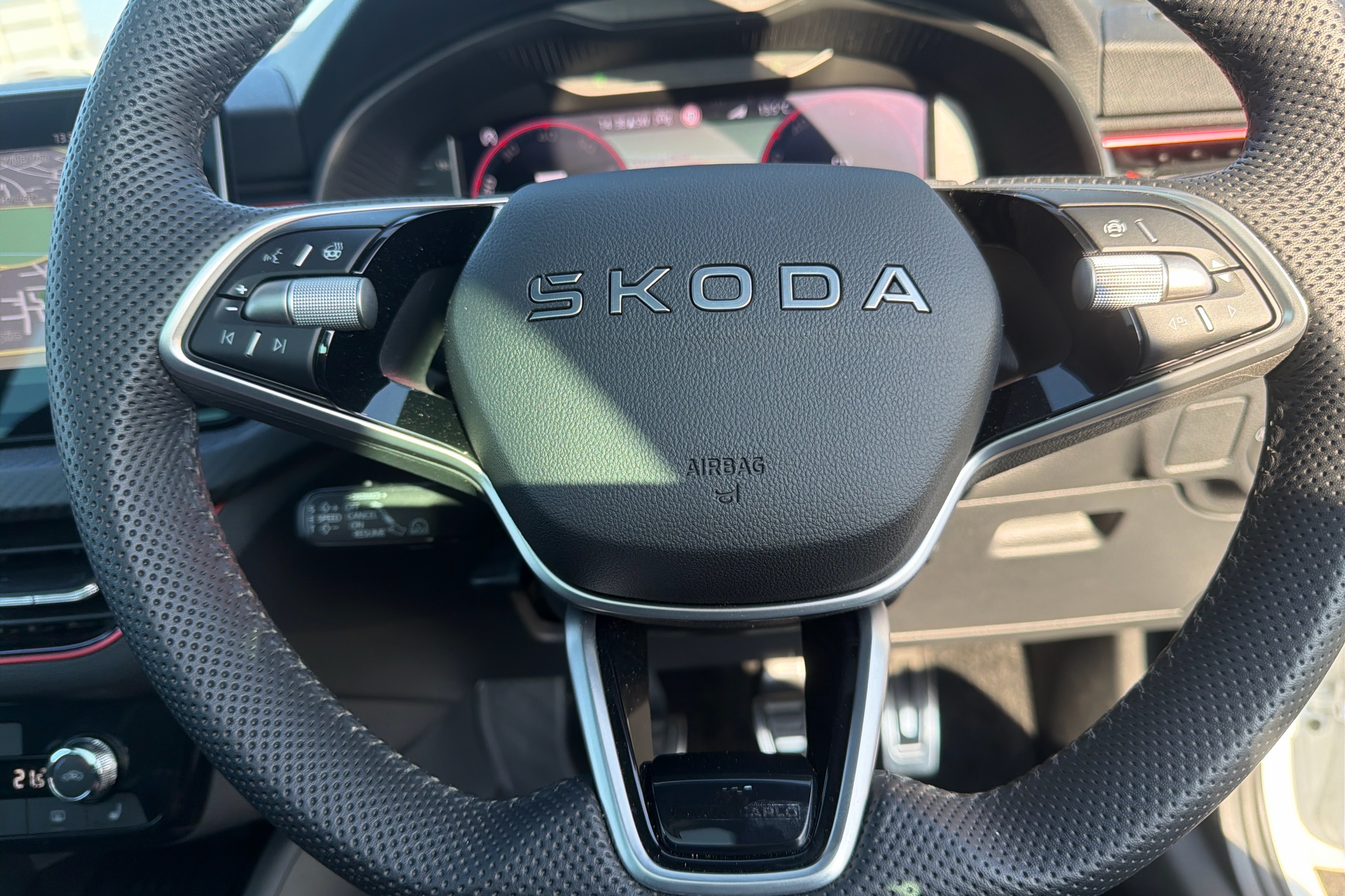 "3 spoke leather wrapped multi function steering wheel",