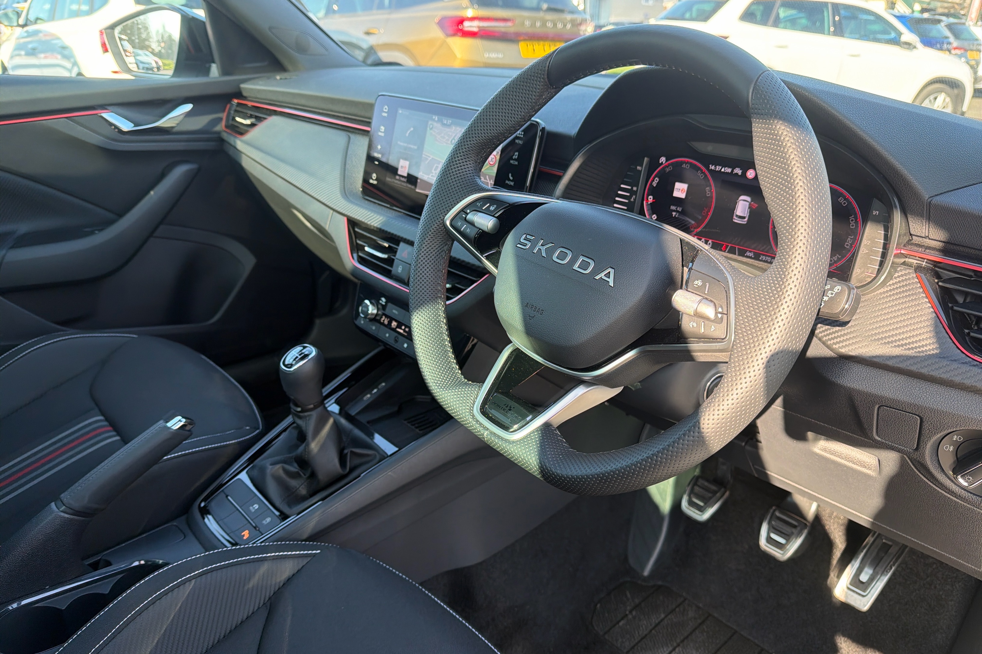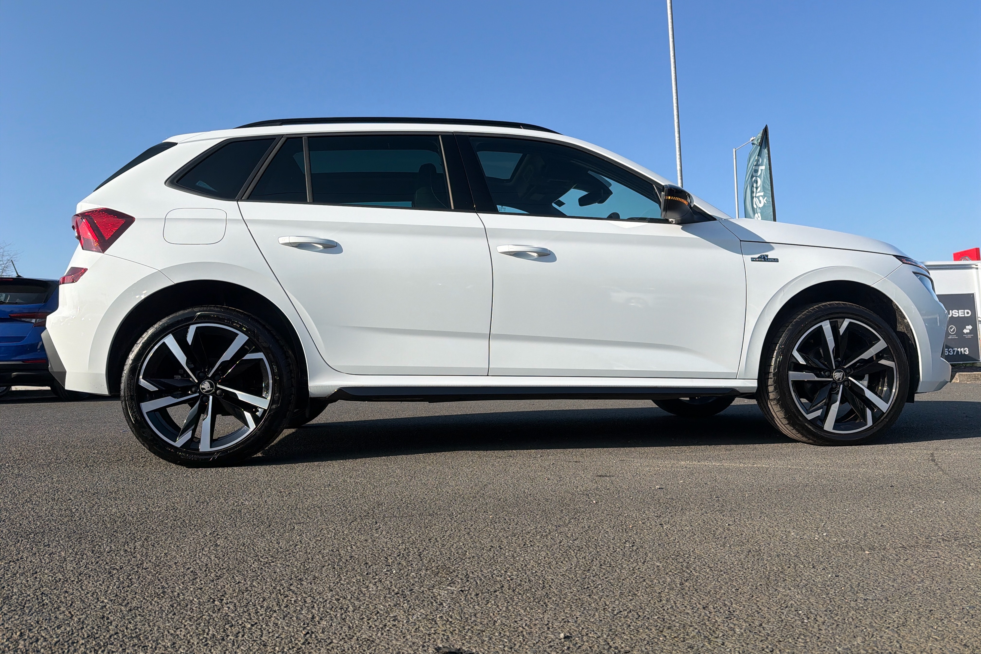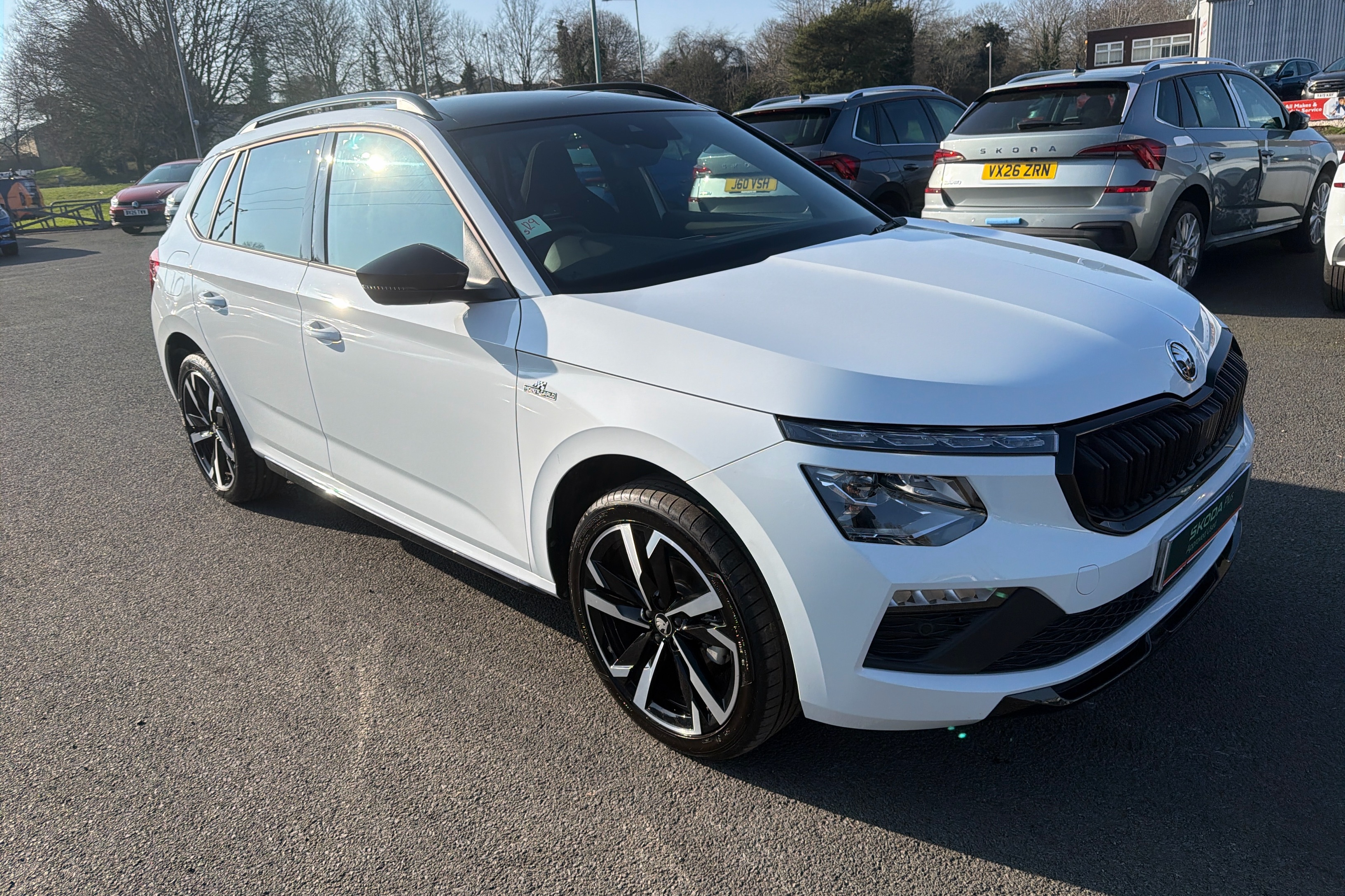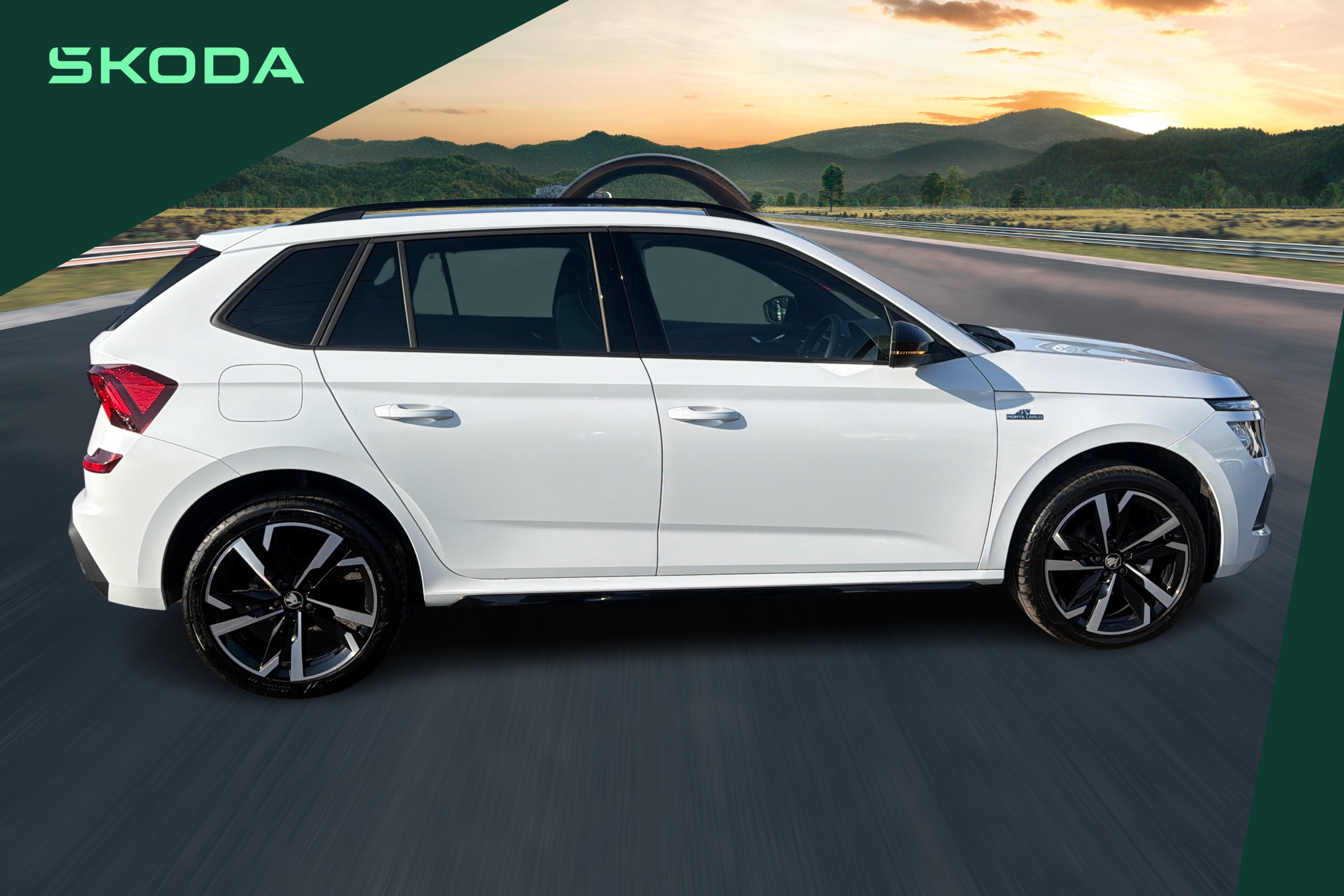 "features": "Advanced driver attention and drowsiness monitor, Bluetooth system, E-call, Front assist system, PAS, Rear parking sensors, Rear view camera, Service indicator, Speed limiter, Traffic sign recognition, Virtual cockpit with 10.25\" display, Voice control system, Wireless smartlink, 4 USB C ports, 8 Speakers, 9.2\" Skoda navigation display, DAB Digital radio, Auto dimming rear view mirror, Automatic headlight control with coming home and leaving home feature, Black door mirrors, Black radiator grille, Black rear diffuser, Black roof spoiler, Body colour bumpers, Body colour door handles, Boot lettering in black, Extended tailgate glass, Fixed panoramic sunroof with black roof rails, Front and rear electric windows, Heated rear window, LED daytime running lights, LED high beam, LED low beam, LED third brake light, Light sensors, Monte carlo plaque, Privacy glass, Rear side wing doors, Rear wiper, Ticket holder inside windscreen, 12V socket in luggage compartment, 3 seat bench in 2nd row, Aluminium pedals, Ambient lighting in white/red, Art leather carbon decor inserts, Art leather carbon door inserts, Black roof lining, Cargo elements, Chrome inner door handles, Driver and passenger sun visors with vanity mirror, Dual zone climate control, Front and rear roof lights, Front centre armrest, Front head restraints, Glove compartment with illumination, Height adjustable driver seat, Height adjustable front passenger seat, Ice scraper, Inner circulation control with pollen filter, ISOFIX on front passenger seat, Isofix preparation for back seats, Leather gearknob and handbrake lever, Manual lumbar support for front seats, Monte Carlo cloth upholstery, Net package and top tether hooks in boot space, Net under rear shelf, Pocket on the back of both front seats include mobile phone pockets, Rake/reach adjustable steering wheel, Reading lights, Rear centre armrests, Red hotstamping, Single front passenger seat, Sports seats, Textile floor mats, Third rear headrest, Top tether for front passenger seat, Umbrella in driver's door, Light and view plus package - Kamiq, 3x3 point rear seatbelts, Airbags - driver and front passenger, Disc brakes, ESP, Extended and predictive pedestrian/cyclist protection, Front passenger airbag deactivation switch, Front side airbags with curtain airbags, Hill hold control, Manual leather parking brake, Manual rear child locks, One tone horn, Seatbelt reminder for driver an co-driver, Traction control, Tyre pressure monitor, Anti-theft alarm system with interior monitoring, backup horn, towing protection and remote central locking with SAFE system, Anti-theft wheel bolts, Electronic engine immobilizer, 18\" Ursa black diamond cut alloy wheels, ",