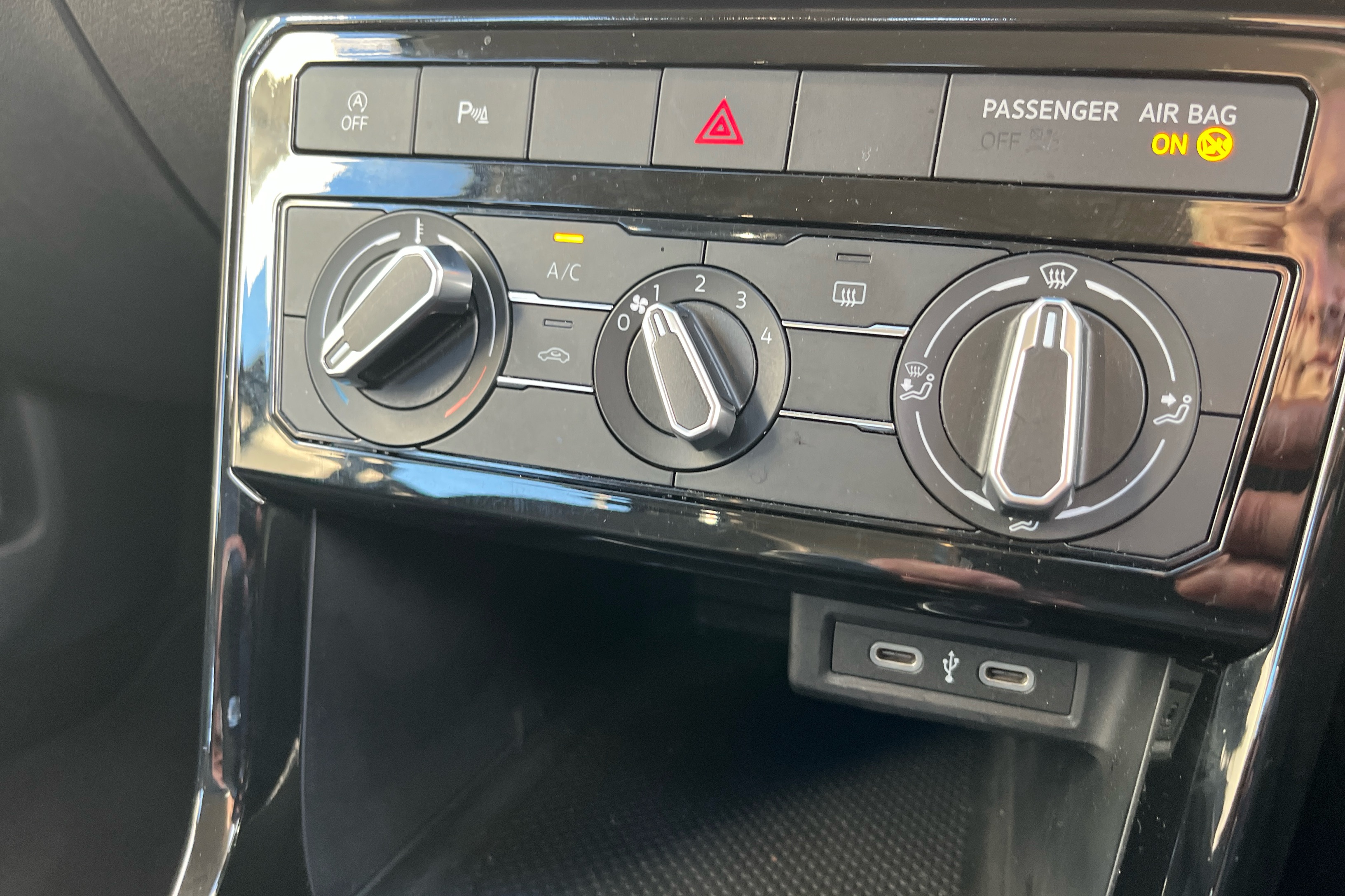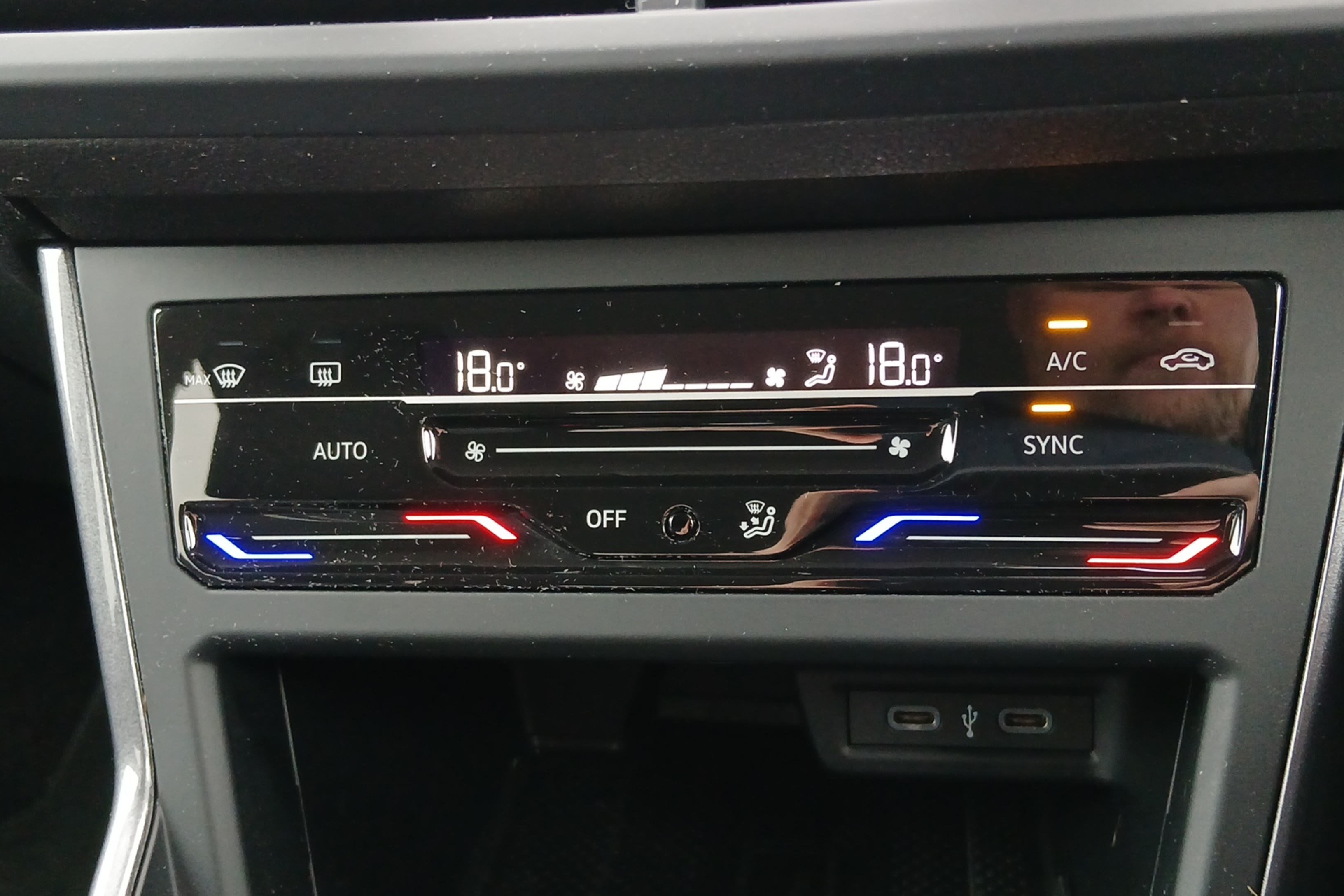 "2x 15-W USB data/charging ports in dashboard and 1x USB-C, 1x USB-A center bottom",