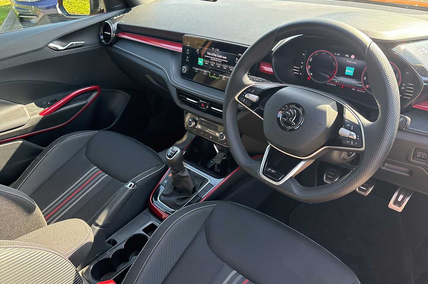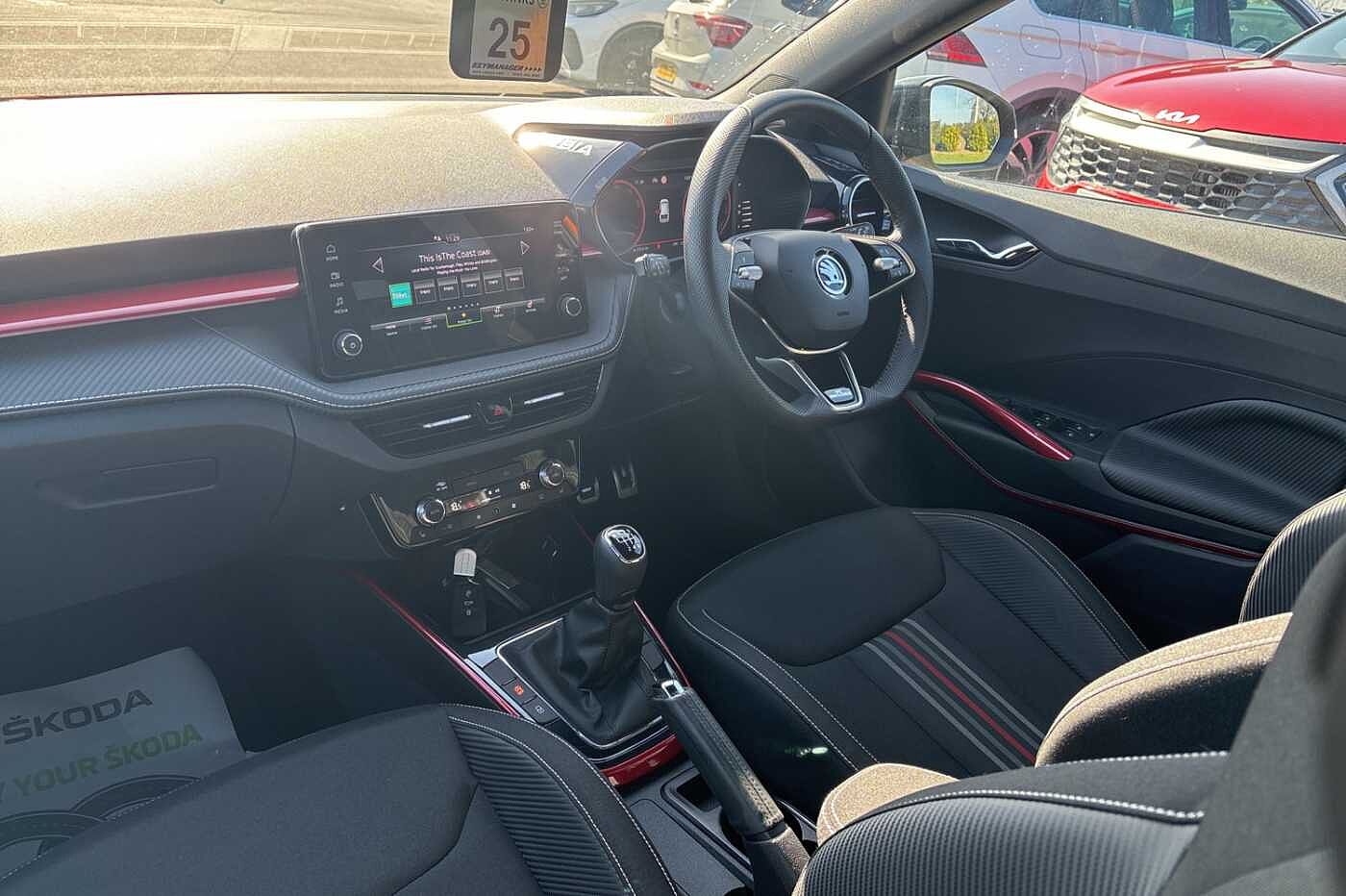 "Accent surfaces in gloss black - centre console control panel, switch panel and trim on front doors in gloss black",