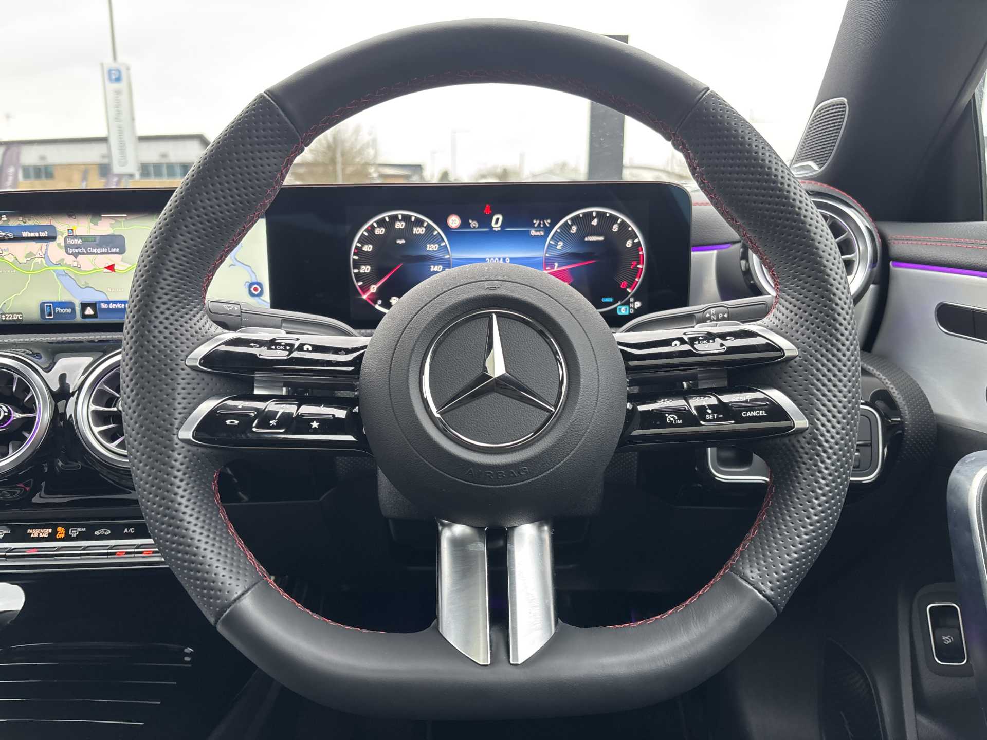 "Steering wheel with trim in chrome look, S emblem, steering wheel grips in perforated leather and contrast stitching"