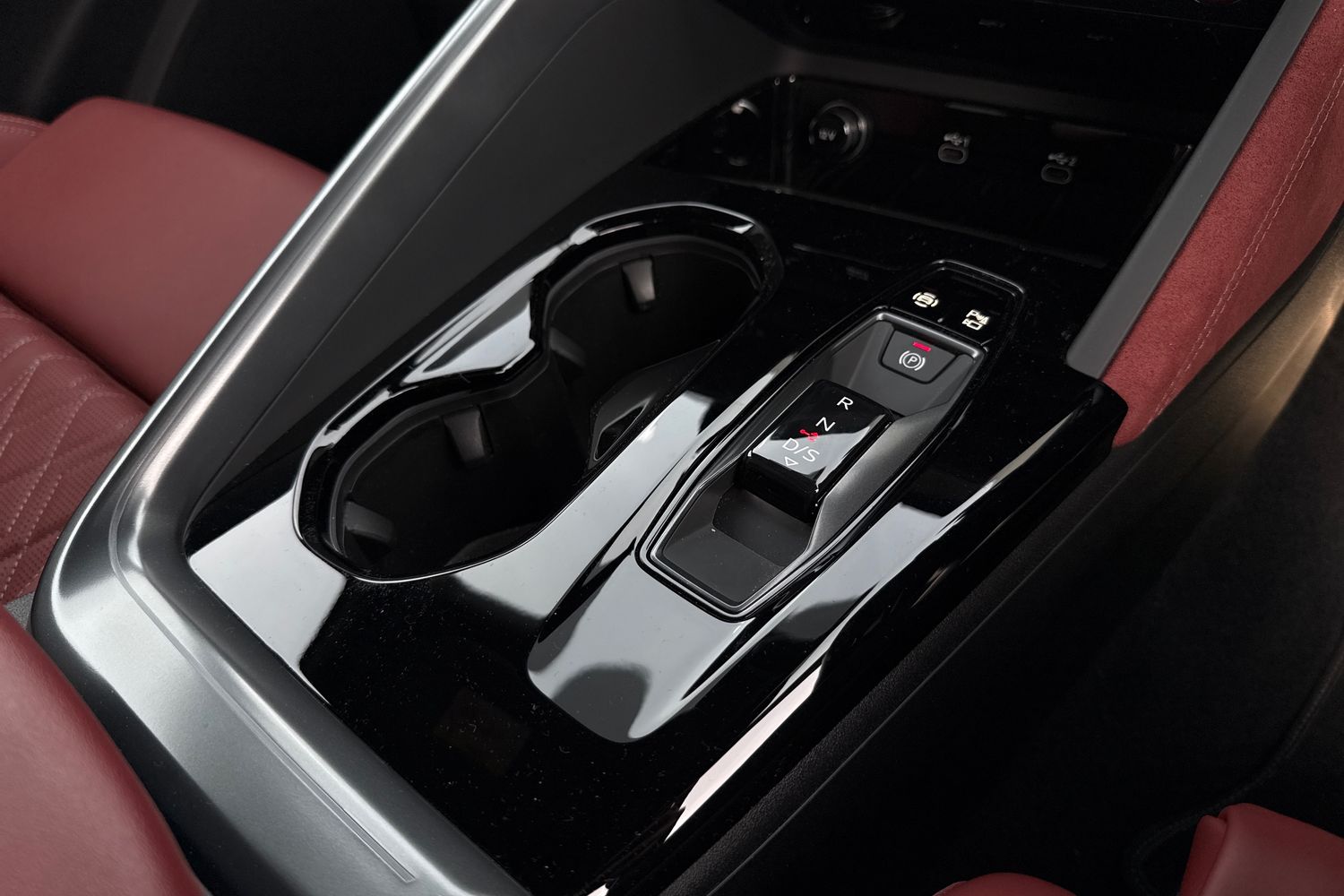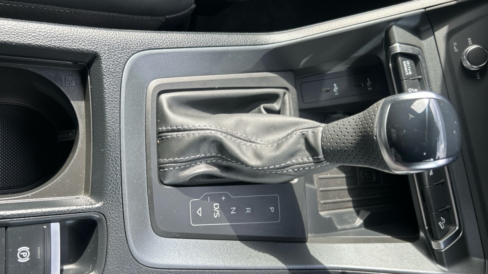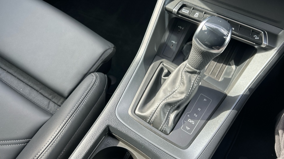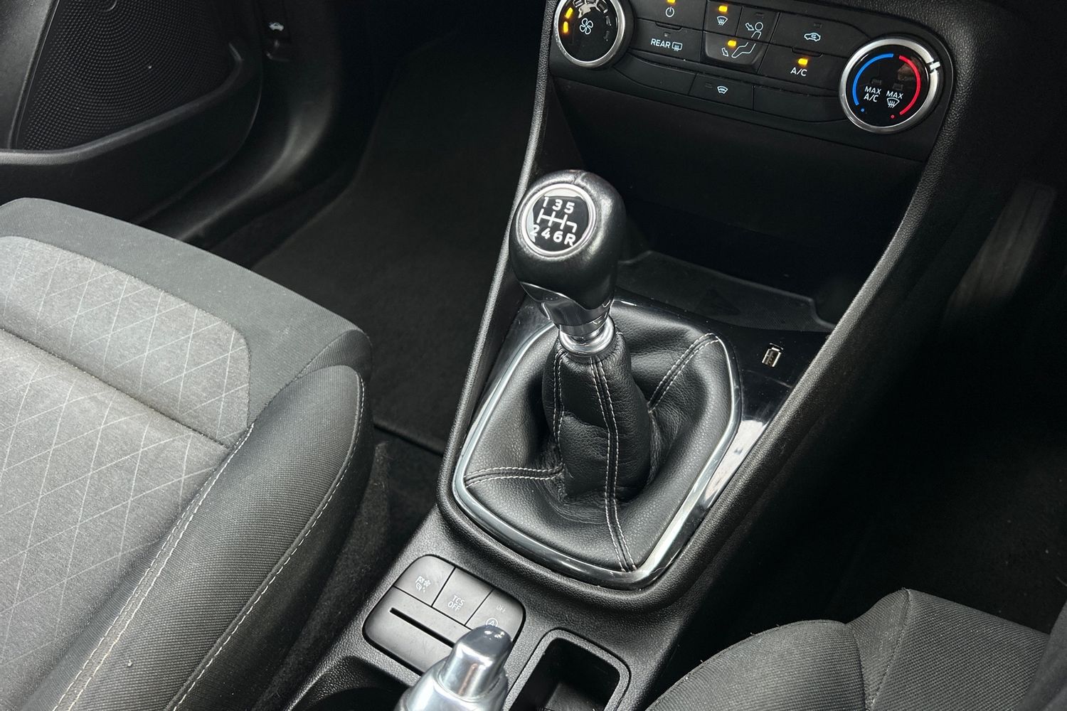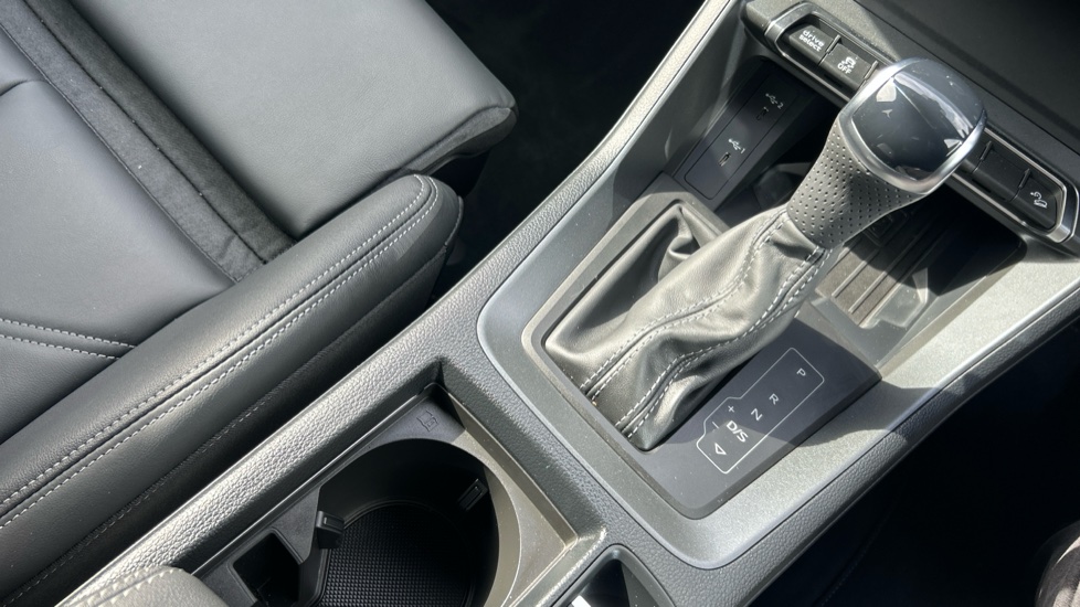 "Leather gear shift with chrome surround",