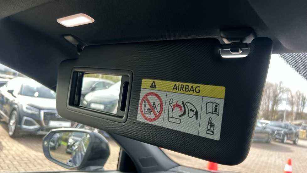 "Driver and passenger sunvisors with illuminated vanity mirrors",