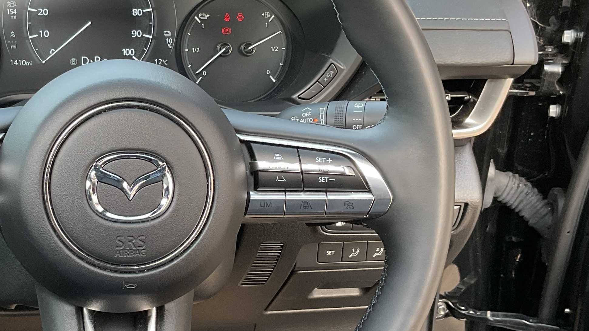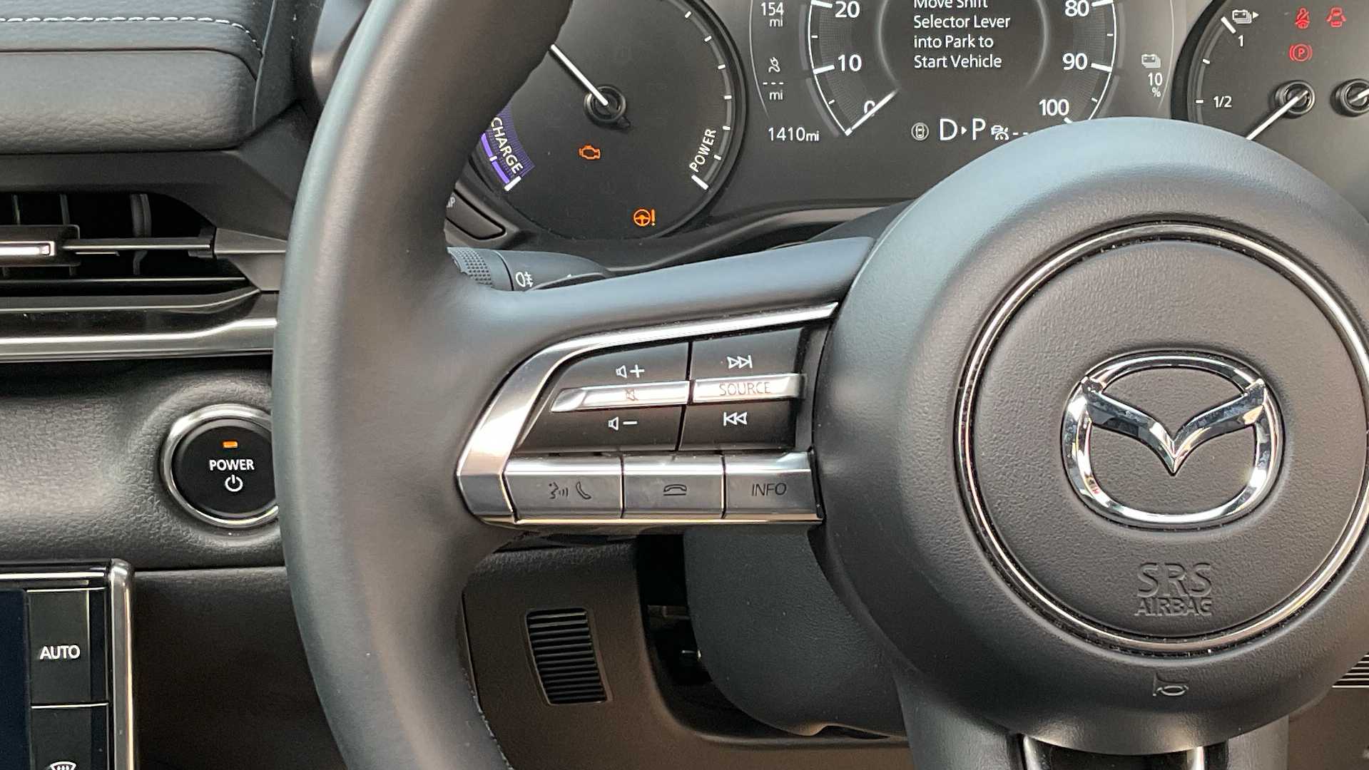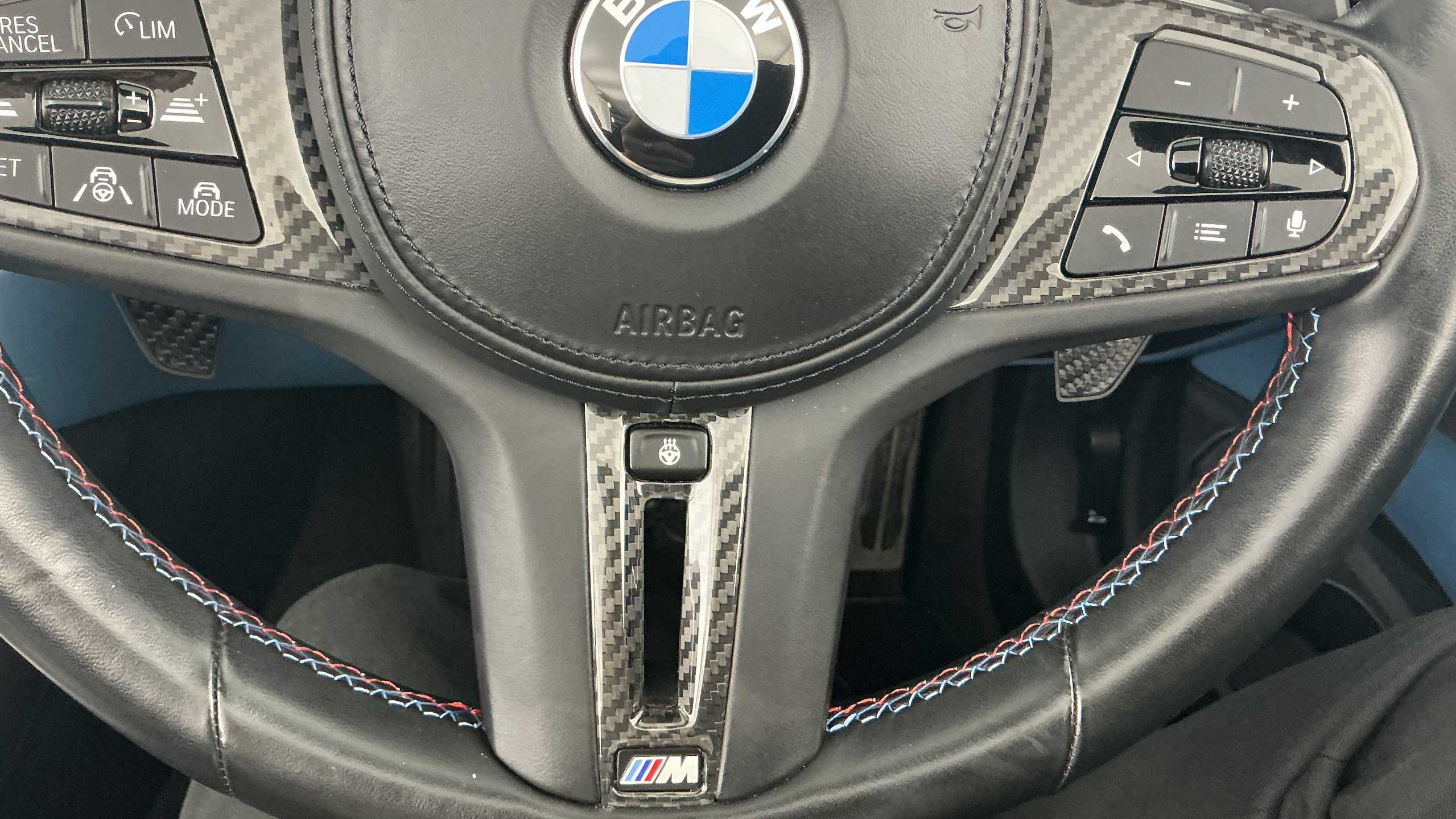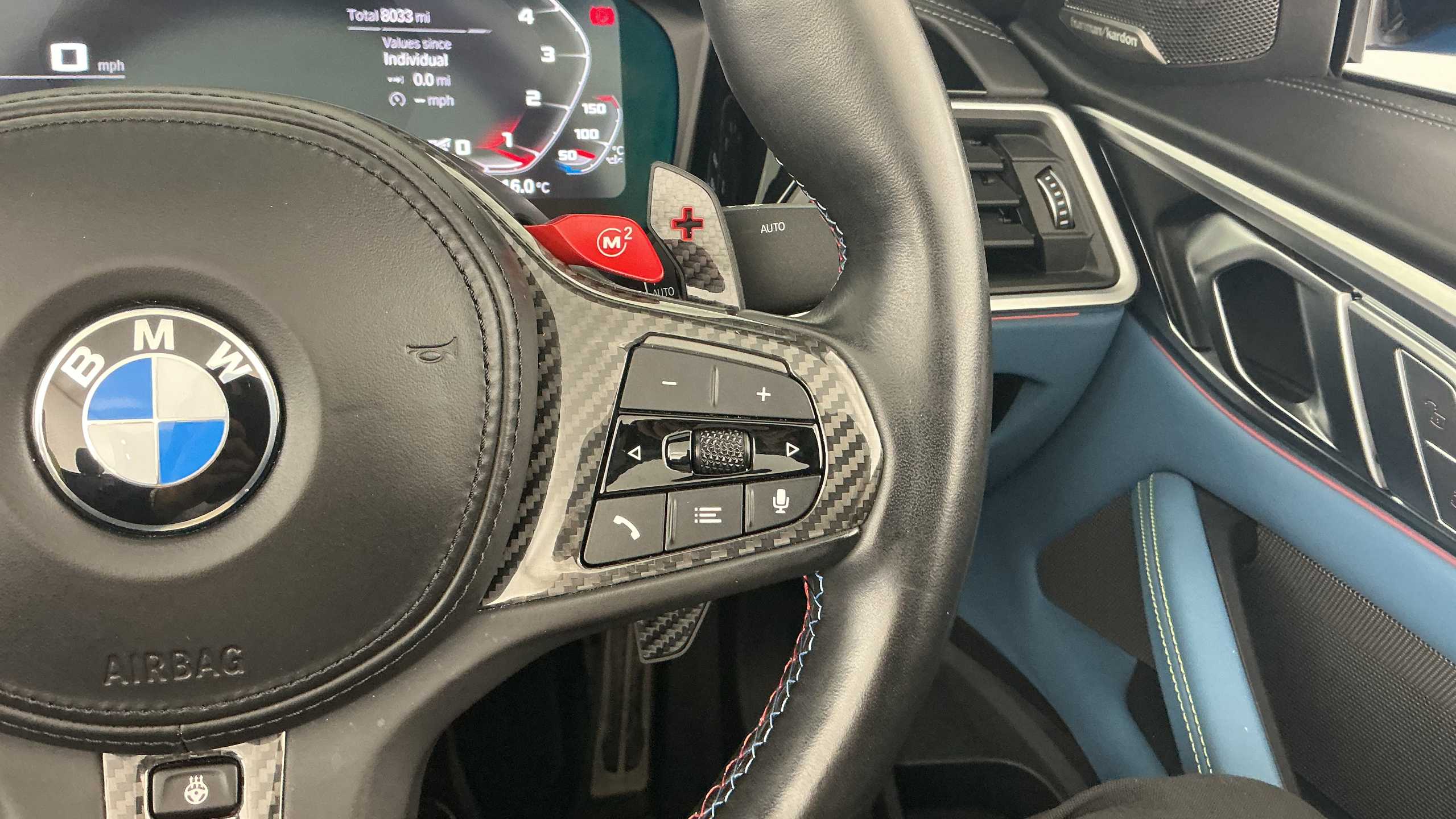 "Three spoke leather wrapped multifunction steering wheel with shifting paddles"