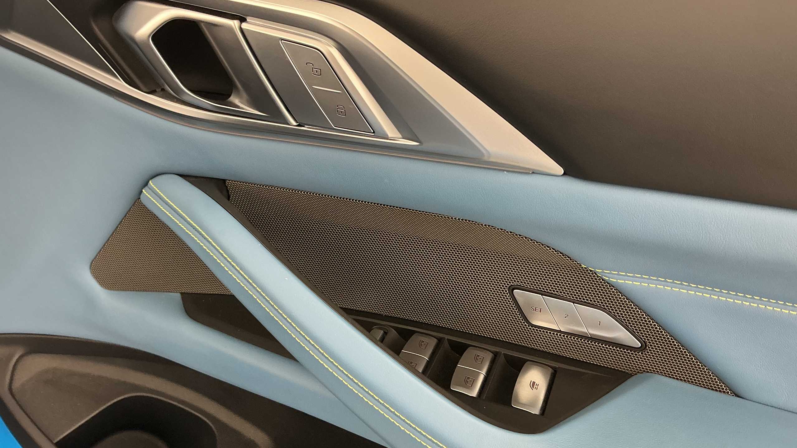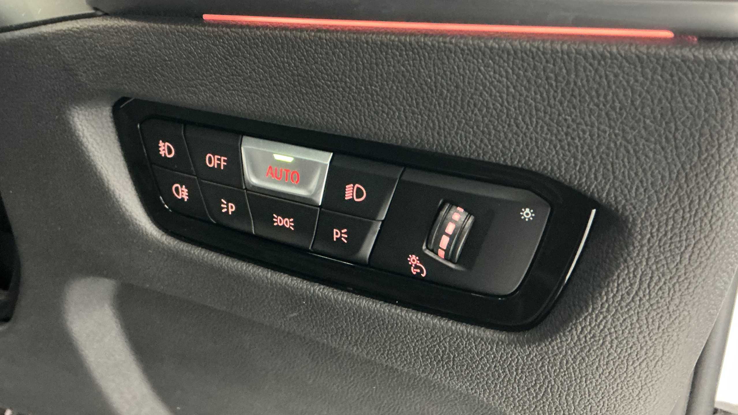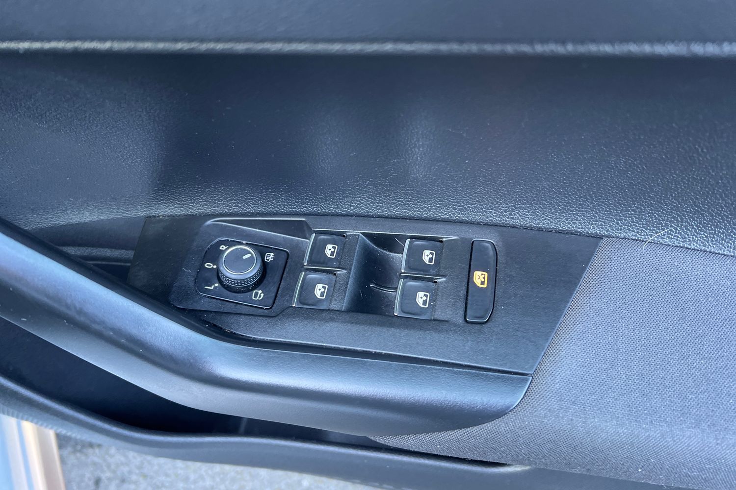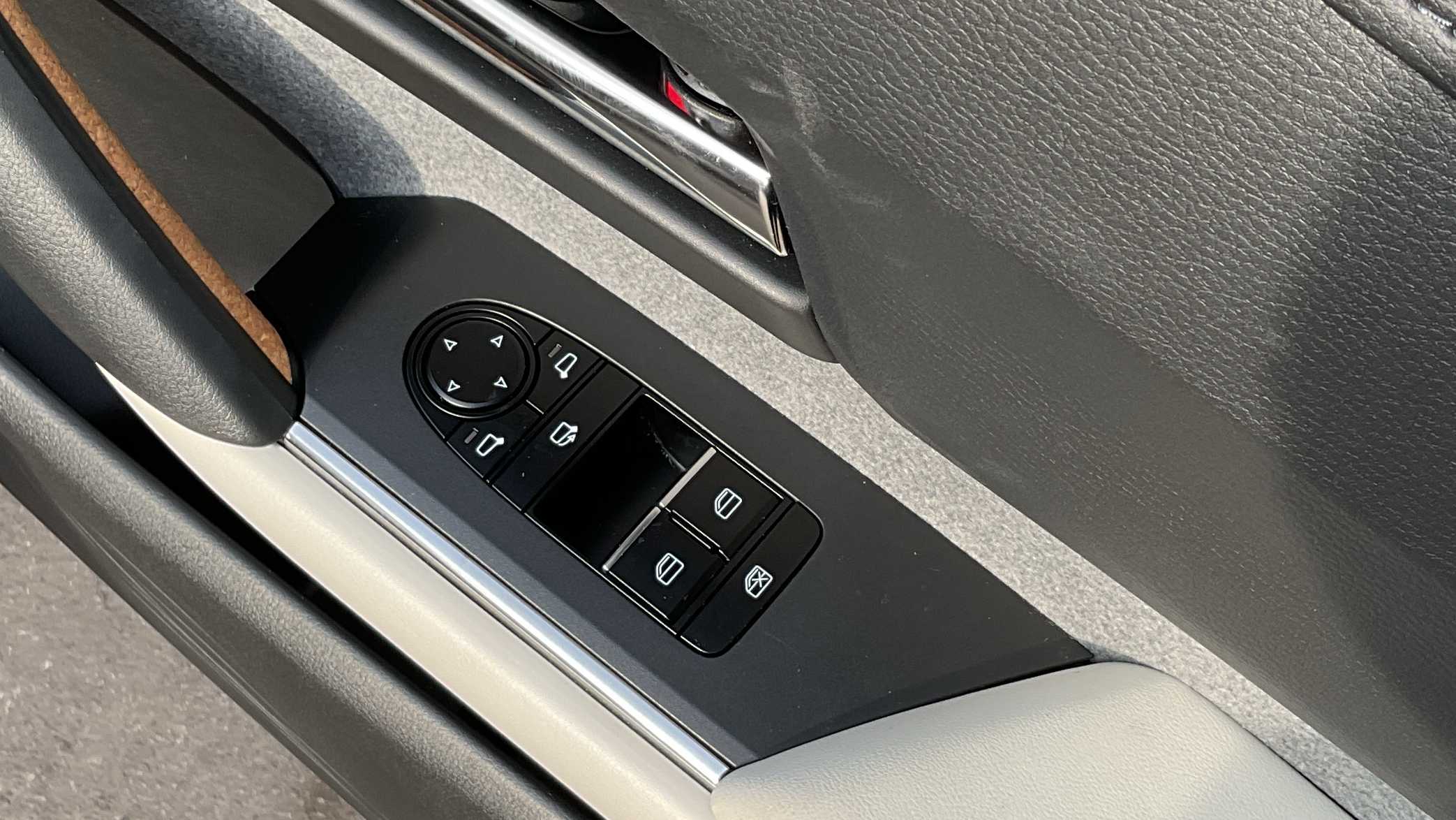 "Chrome applications on rotary light, mirror adjustment, window regulator switches, outlet with frame in black",