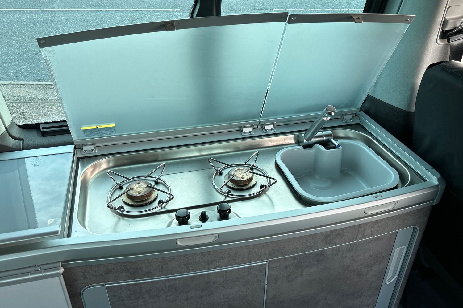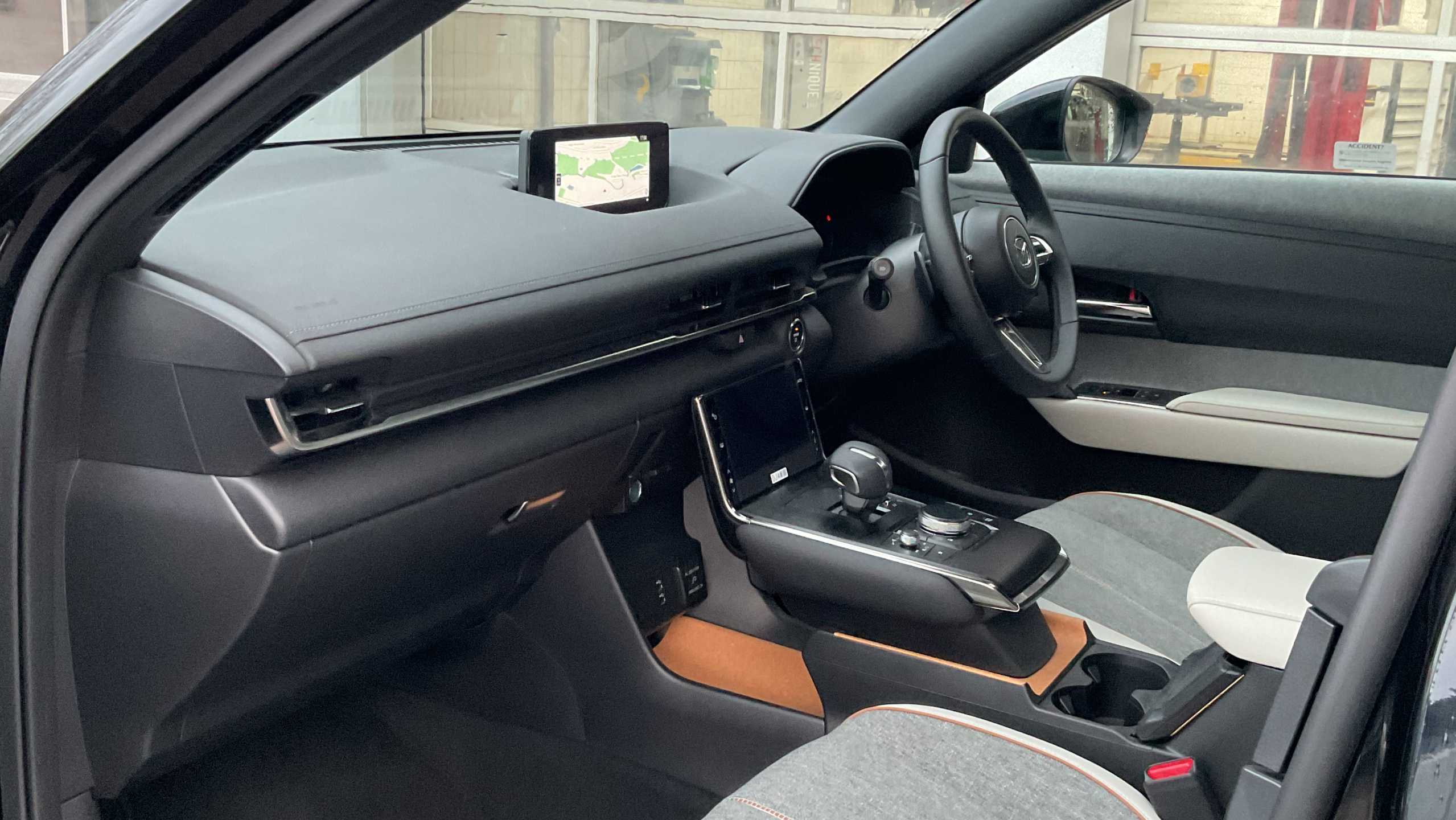 "Dark grey anodised matt decorative inserts in dash and front door panels"