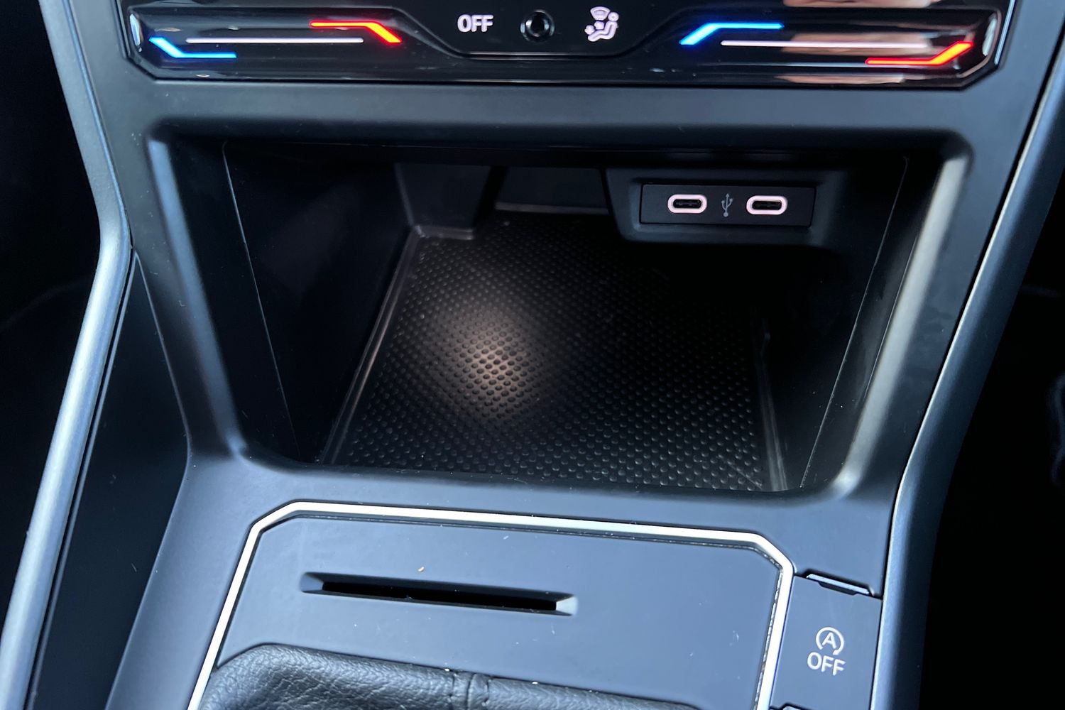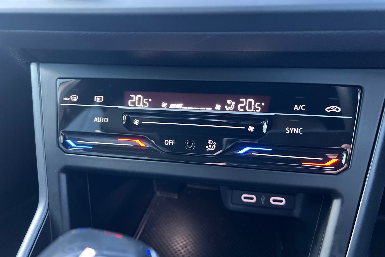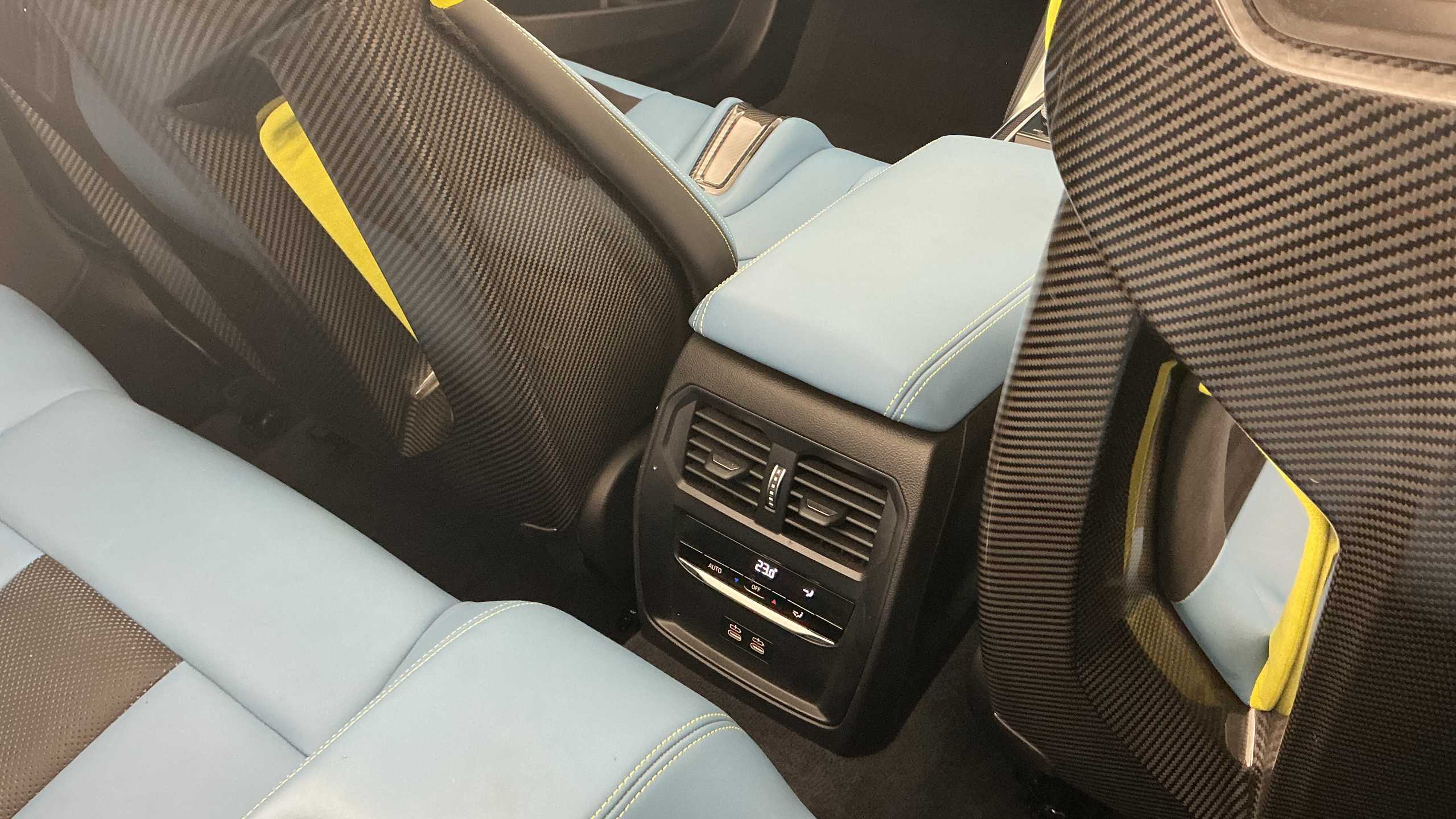 "2 USB-C ports in the front, 2 USB-C charging sockets on the center console in the rear",
