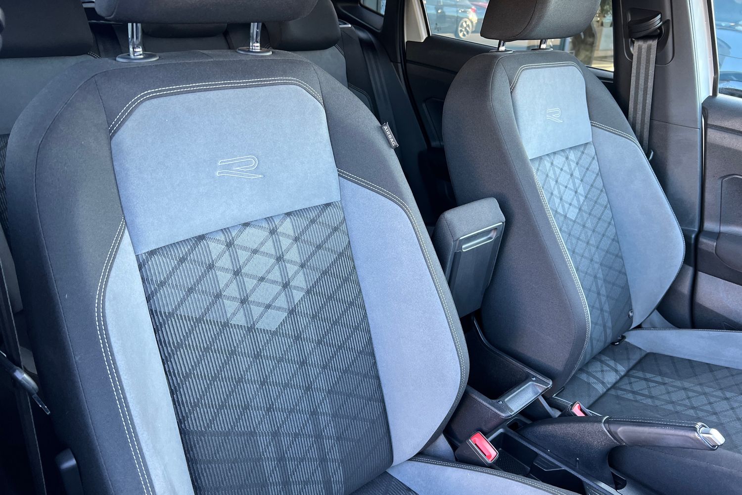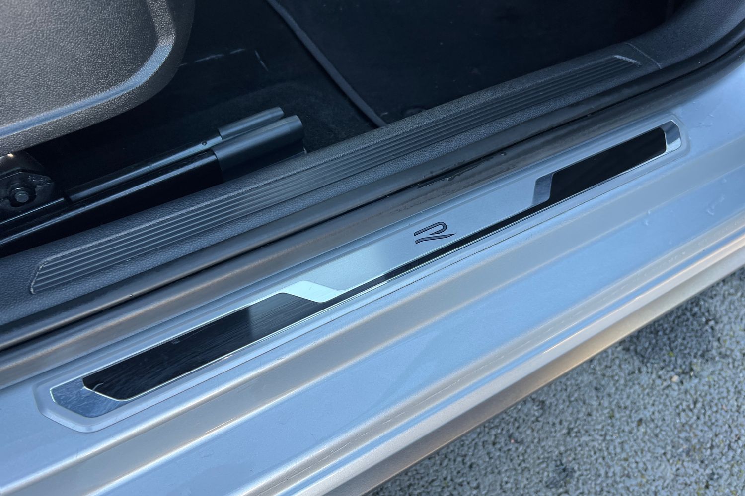 "Front scuff plates with R-Line logo",