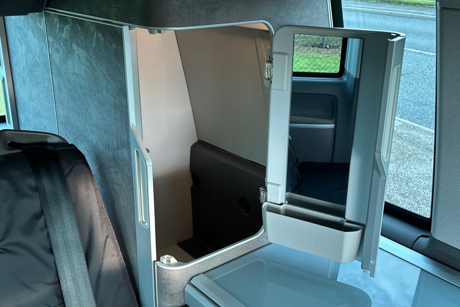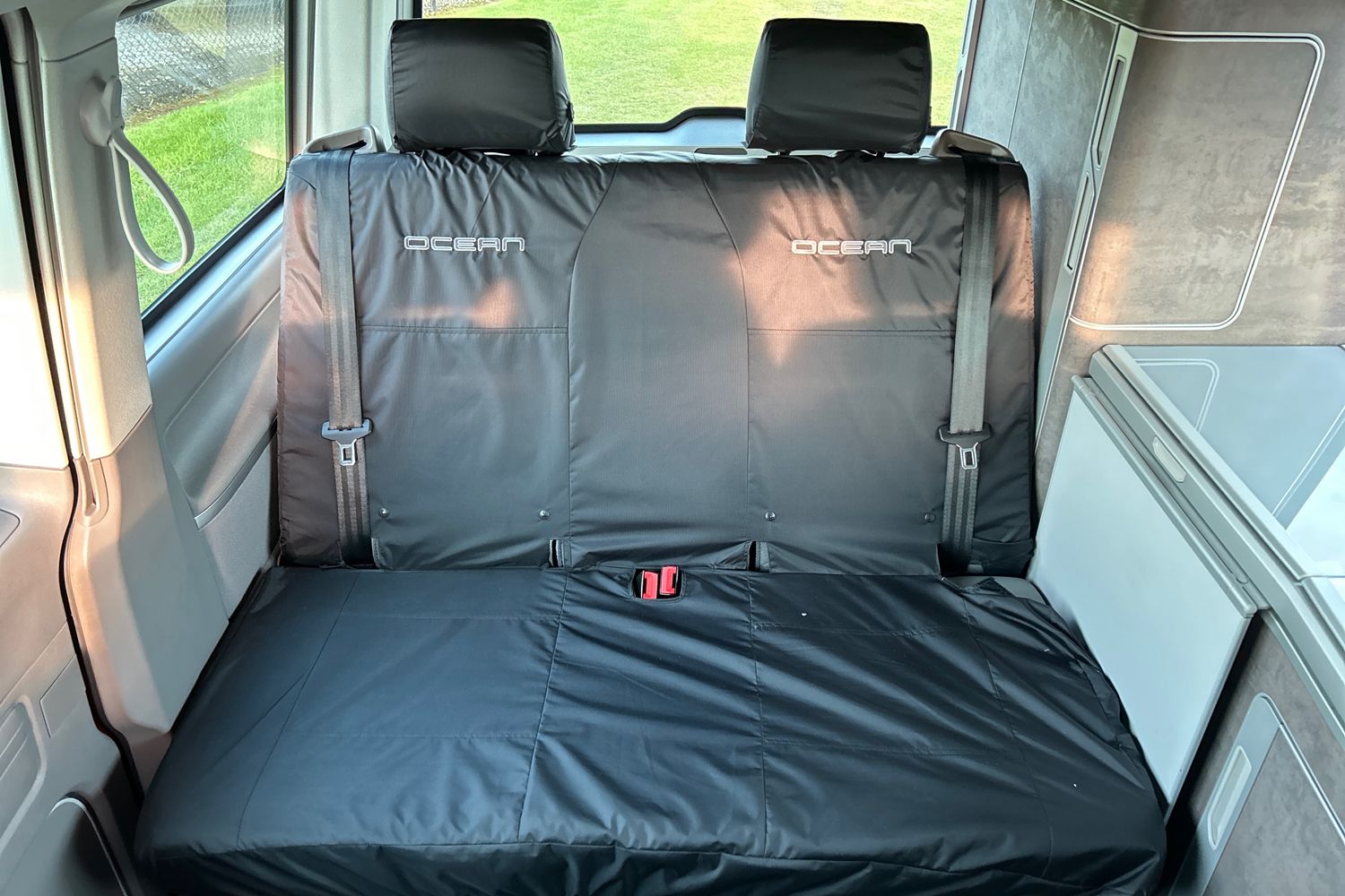 "Front seat backrest storage pockets",