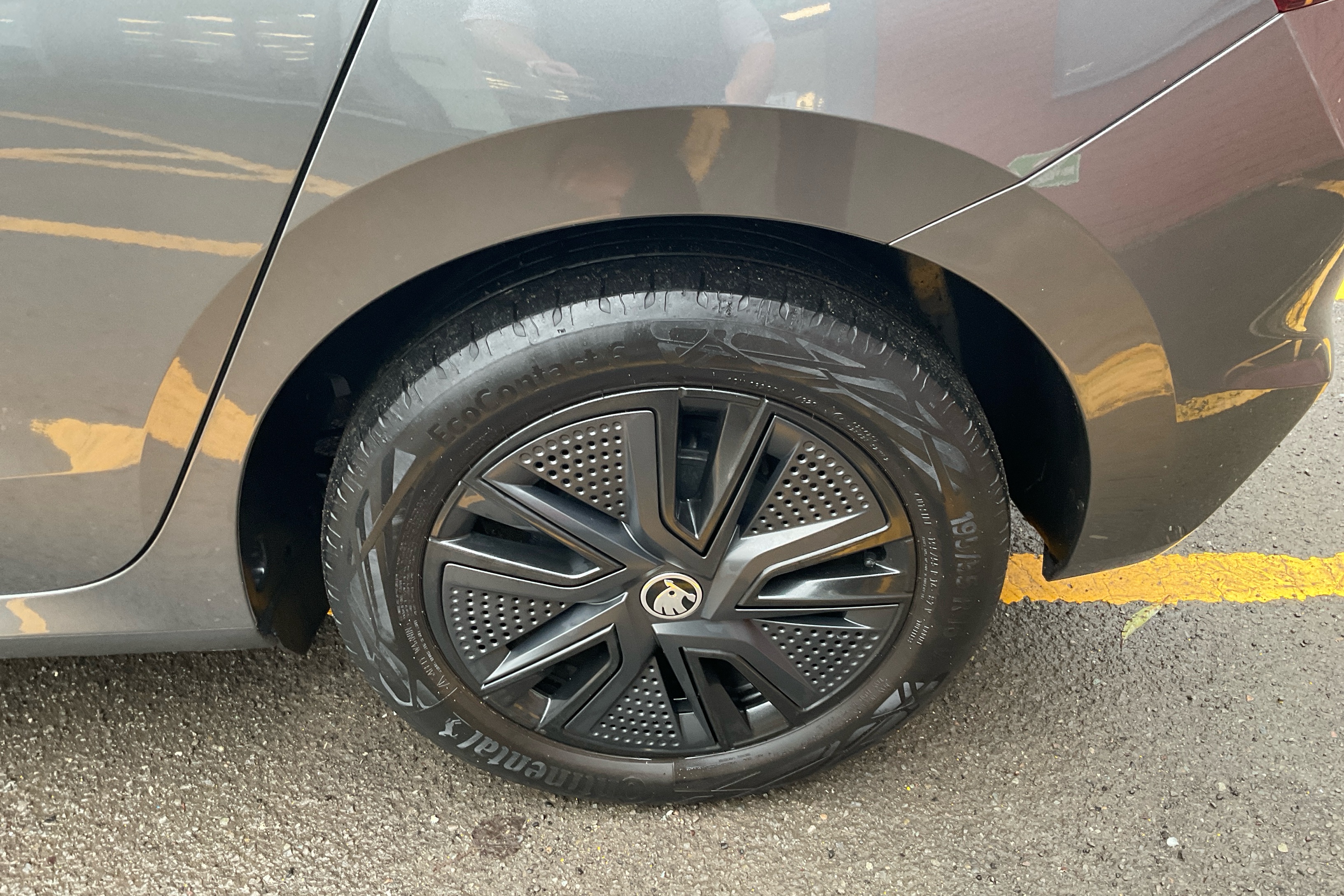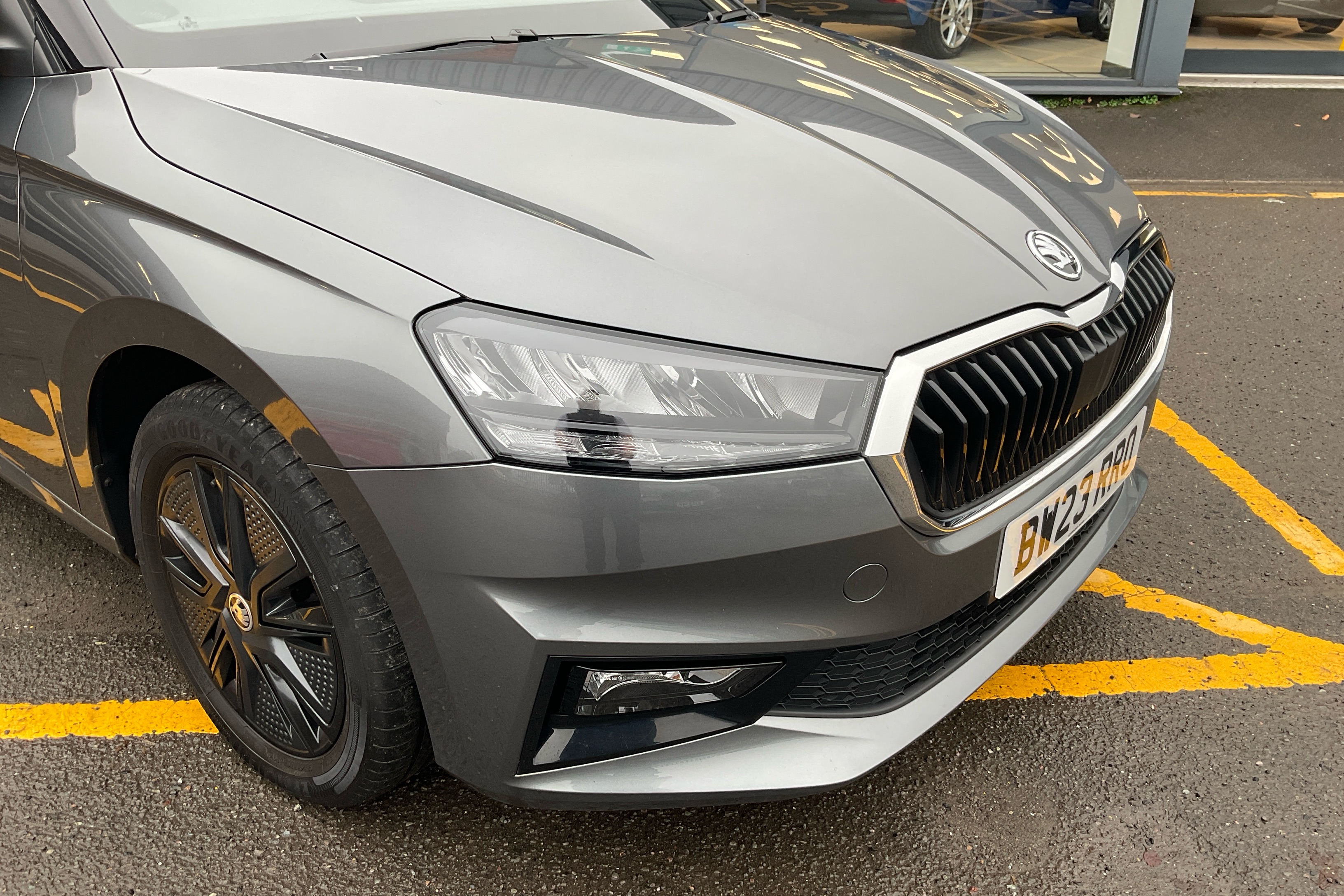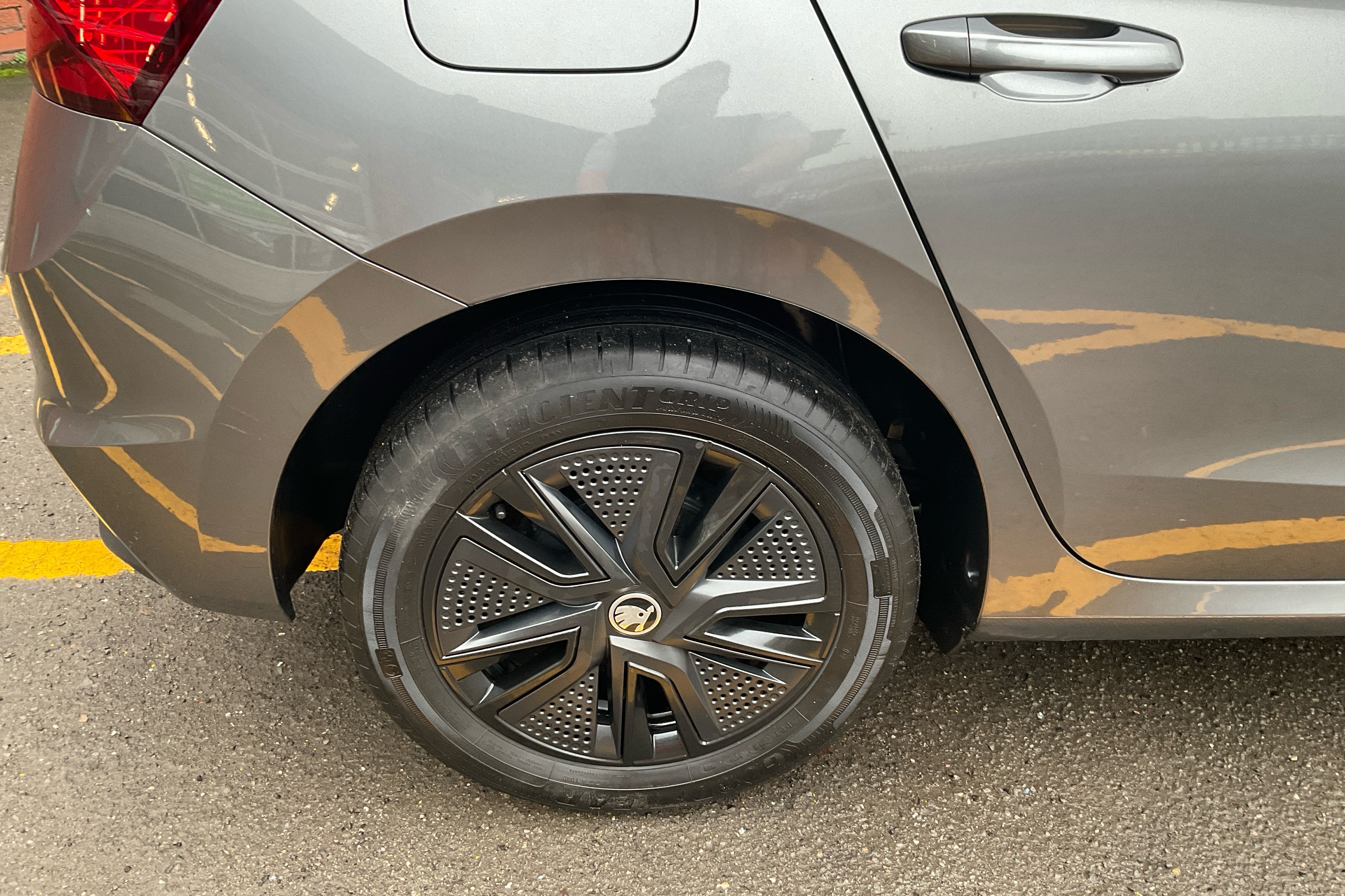 "SKODA tailgate lettering in chrome",