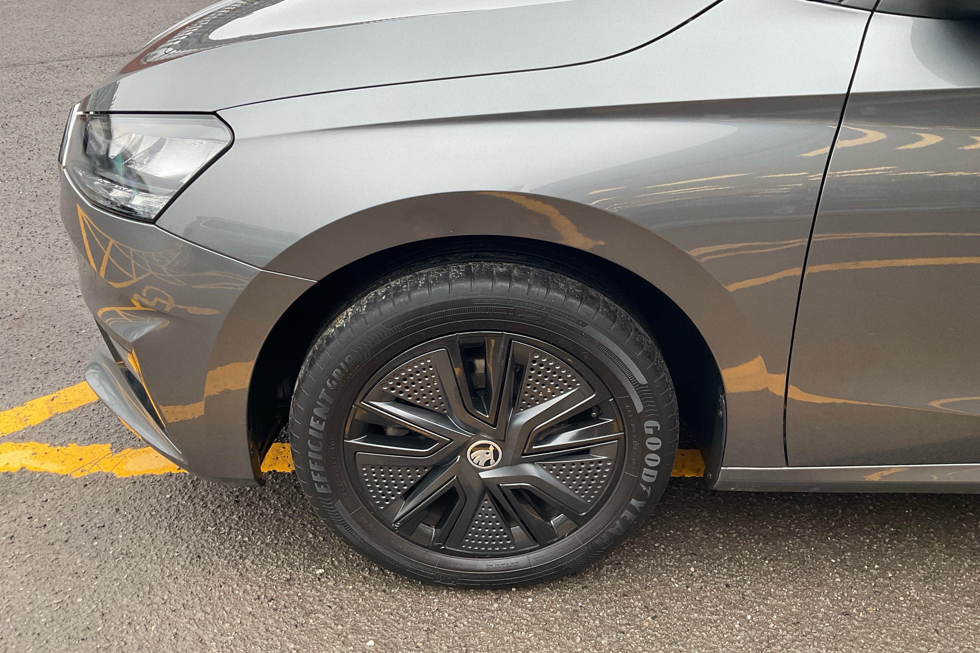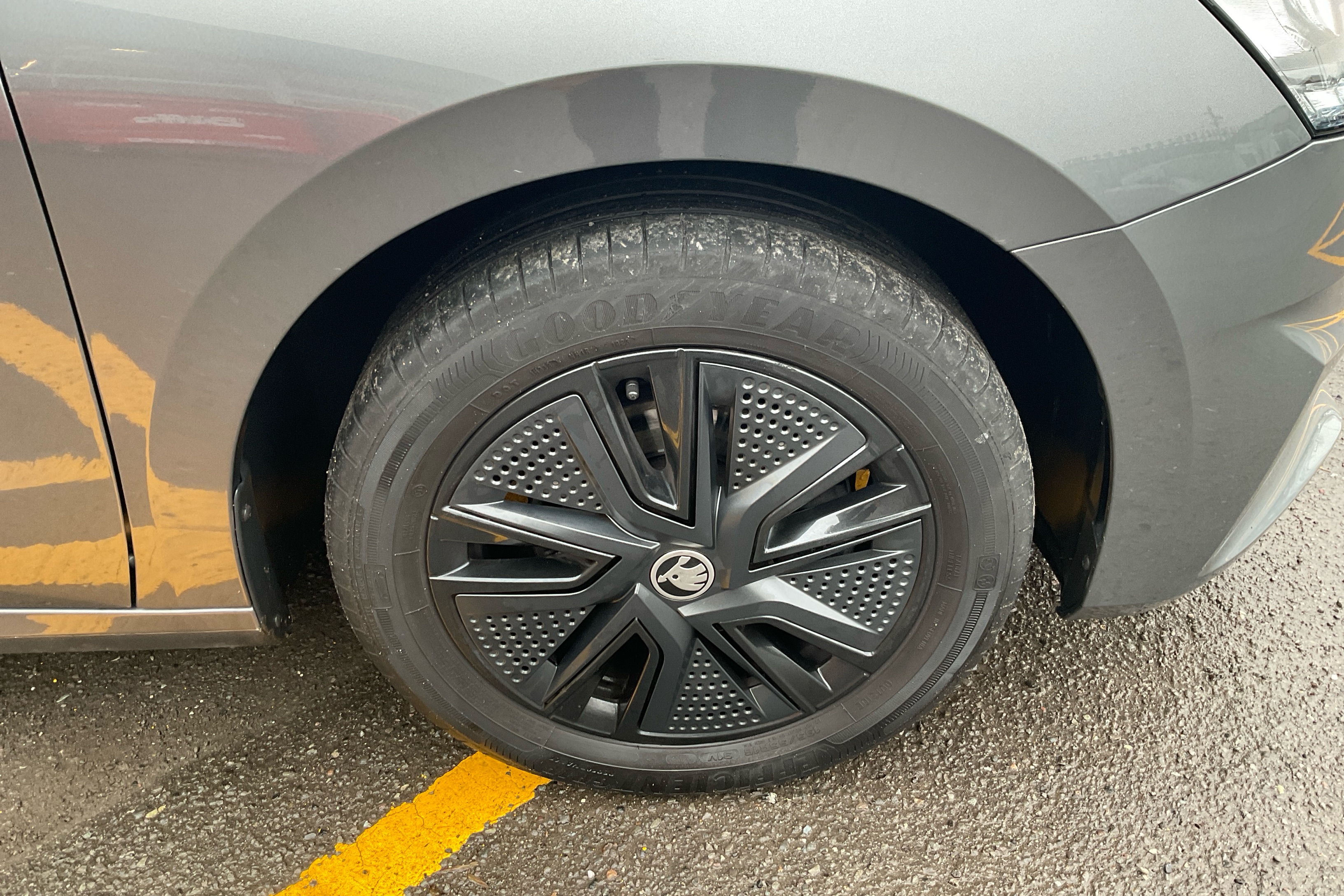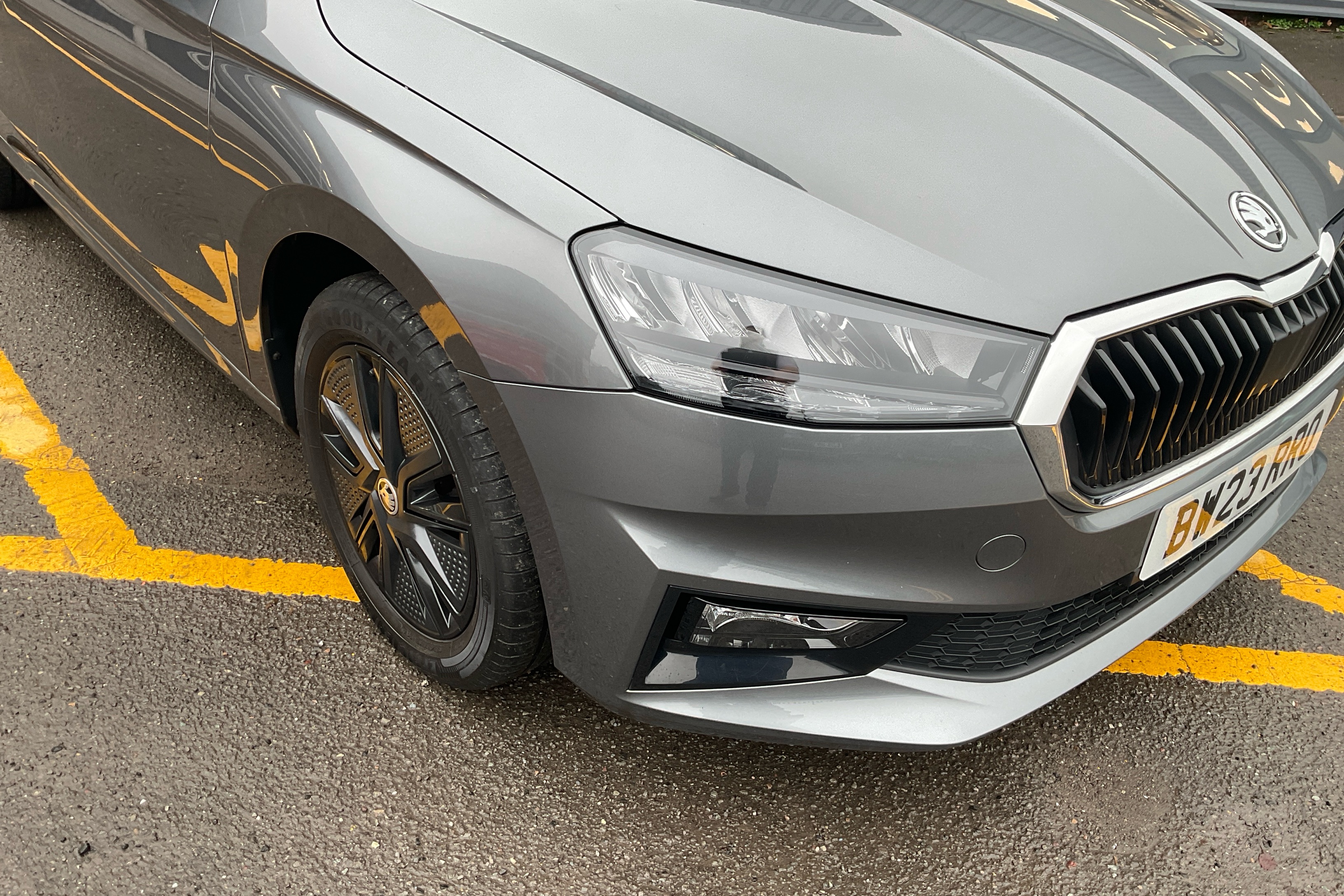 "SKODA tailgate lettering in chrome",