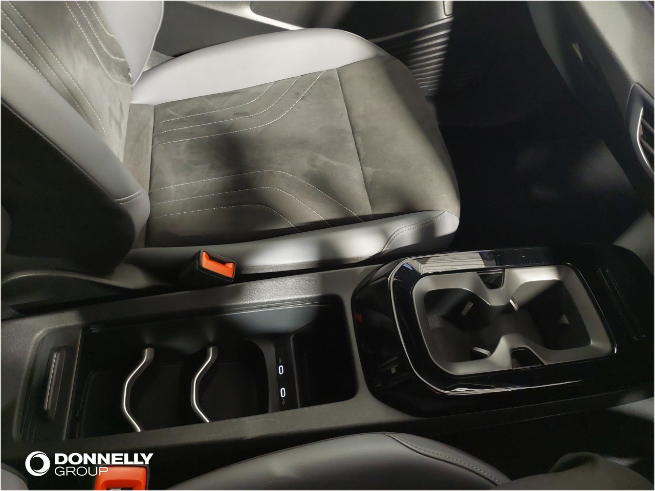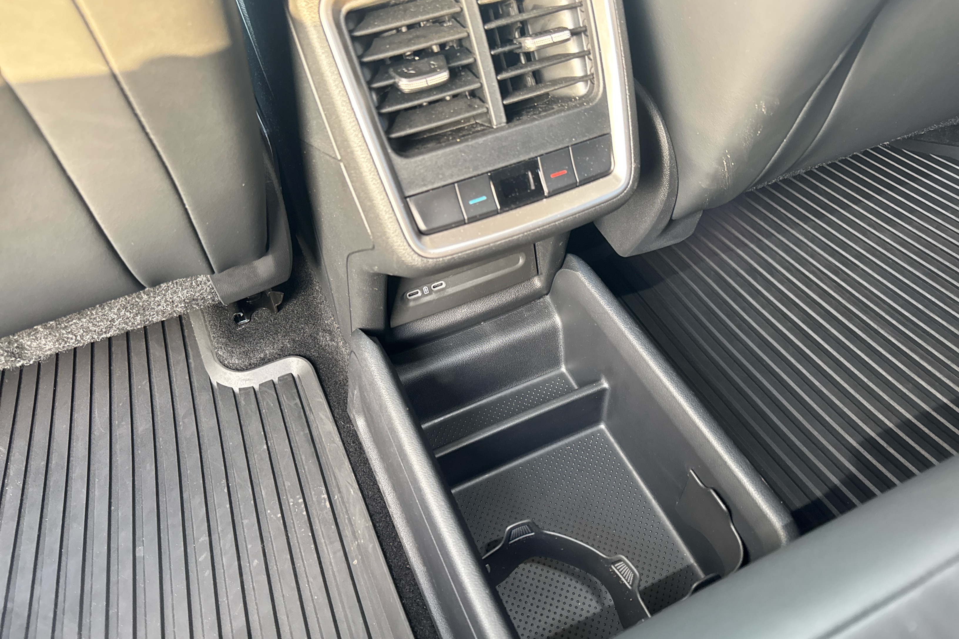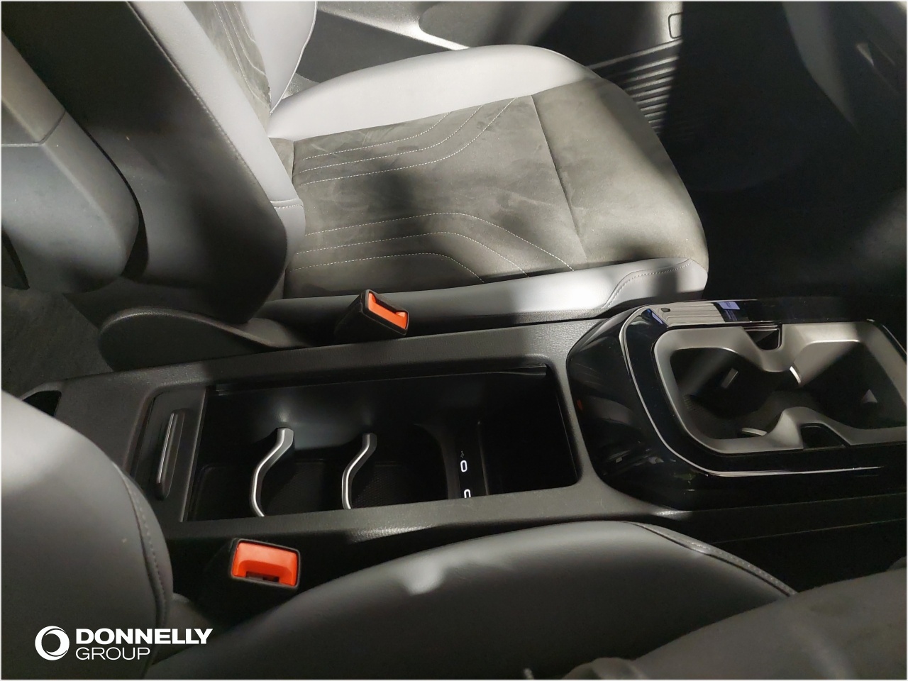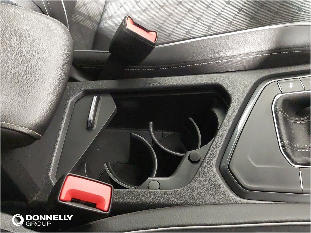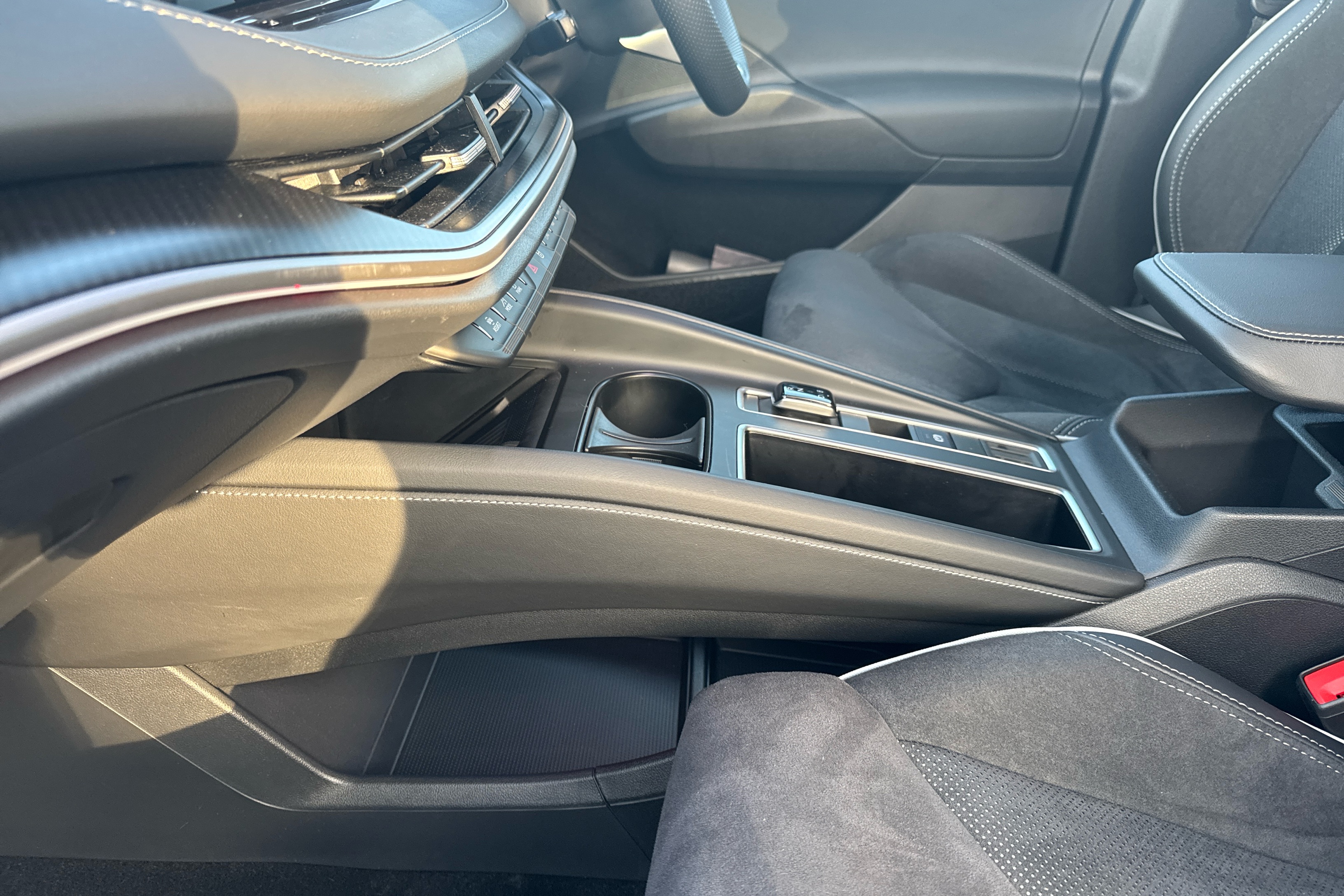 "Central console with fixed cup holder and storage box",