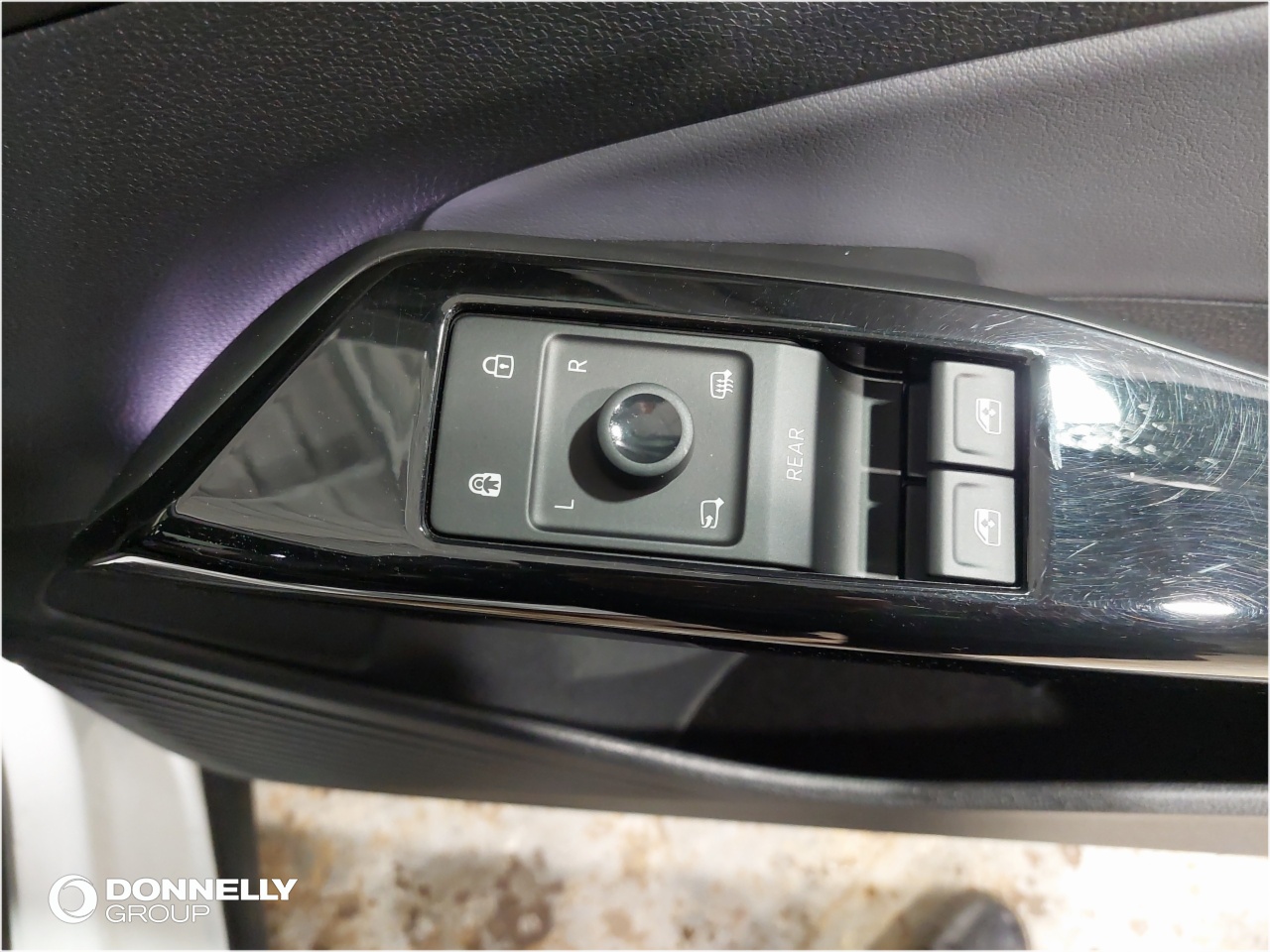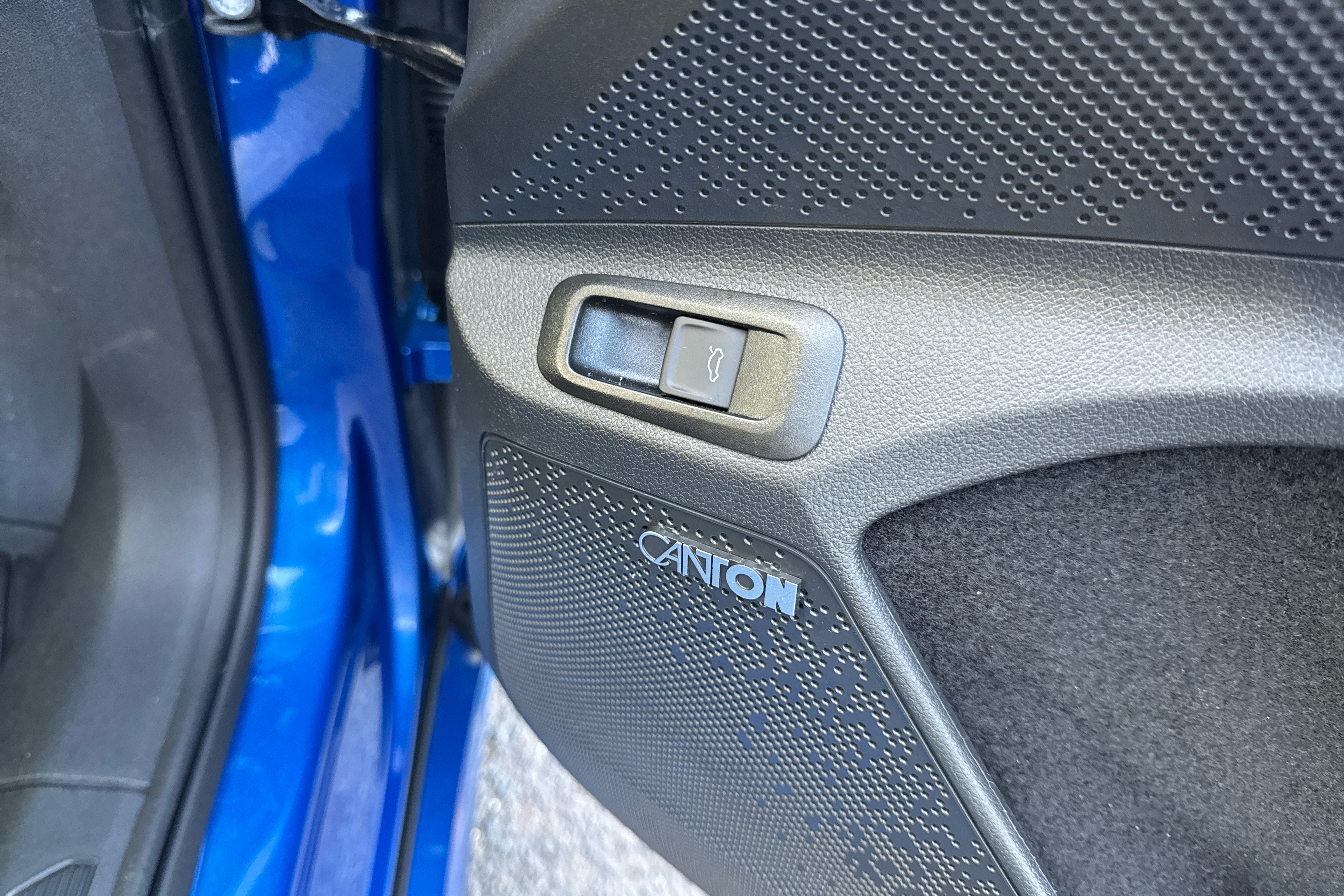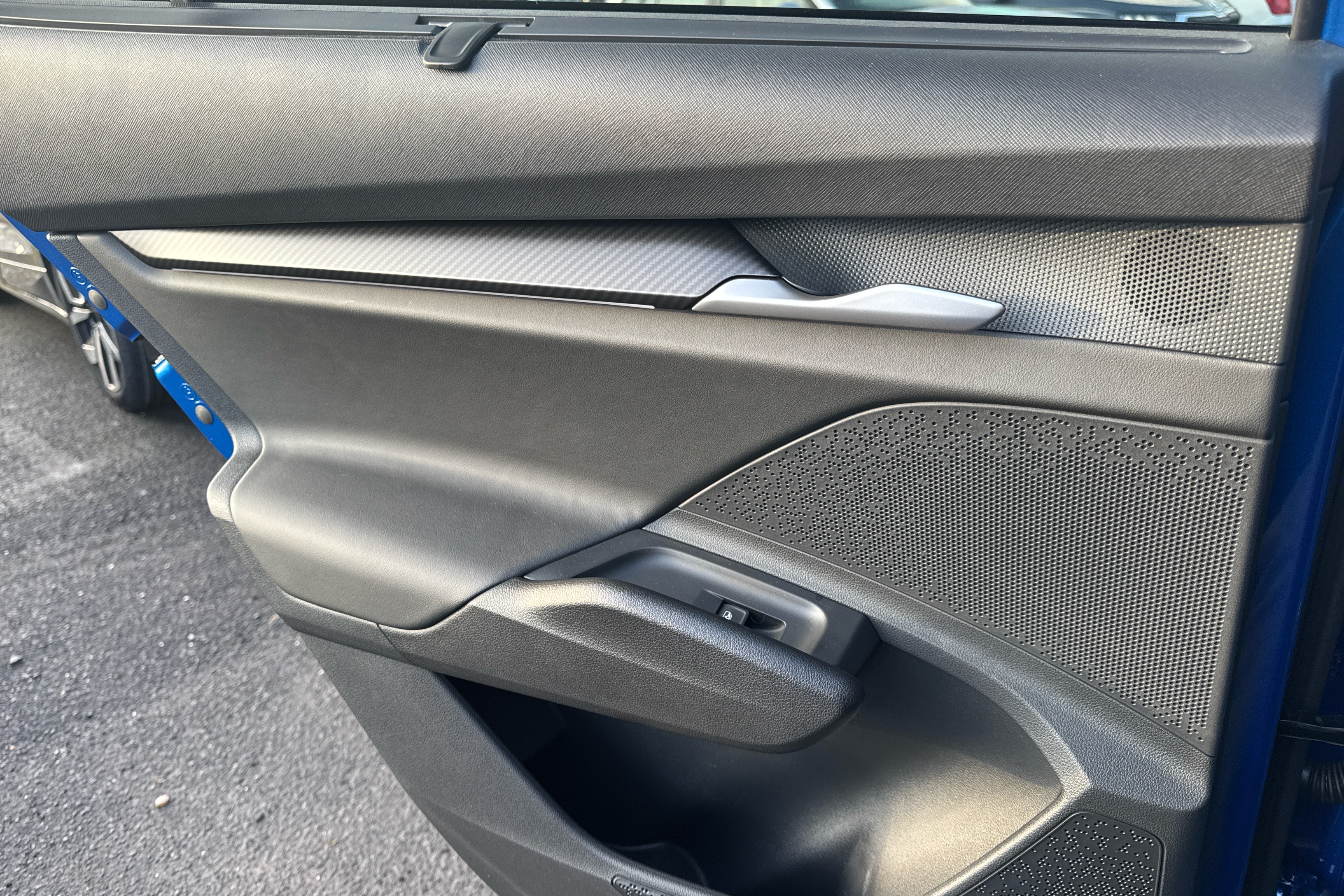 "Satin black door and side trim panel in front"