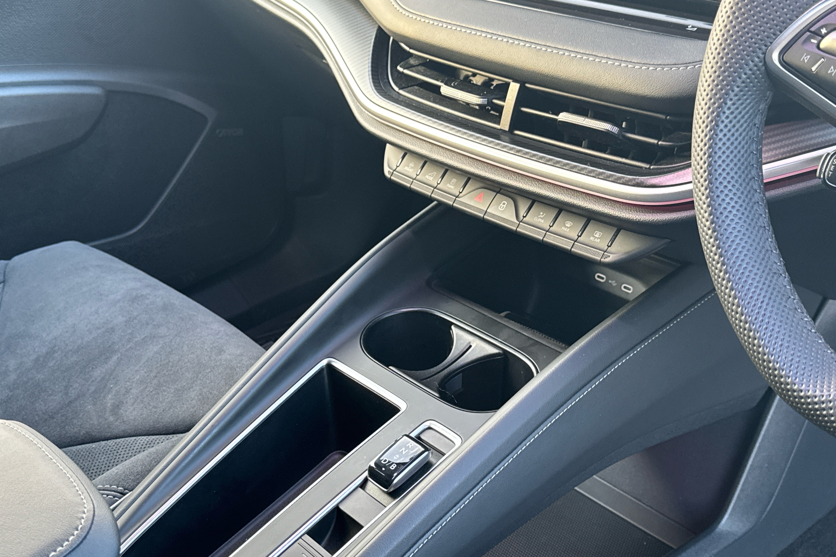 "Grain satin black central console cover",
