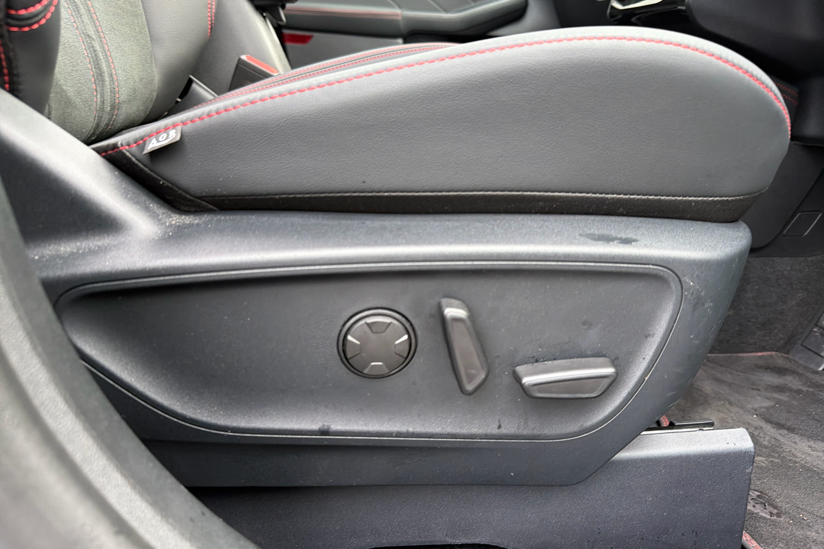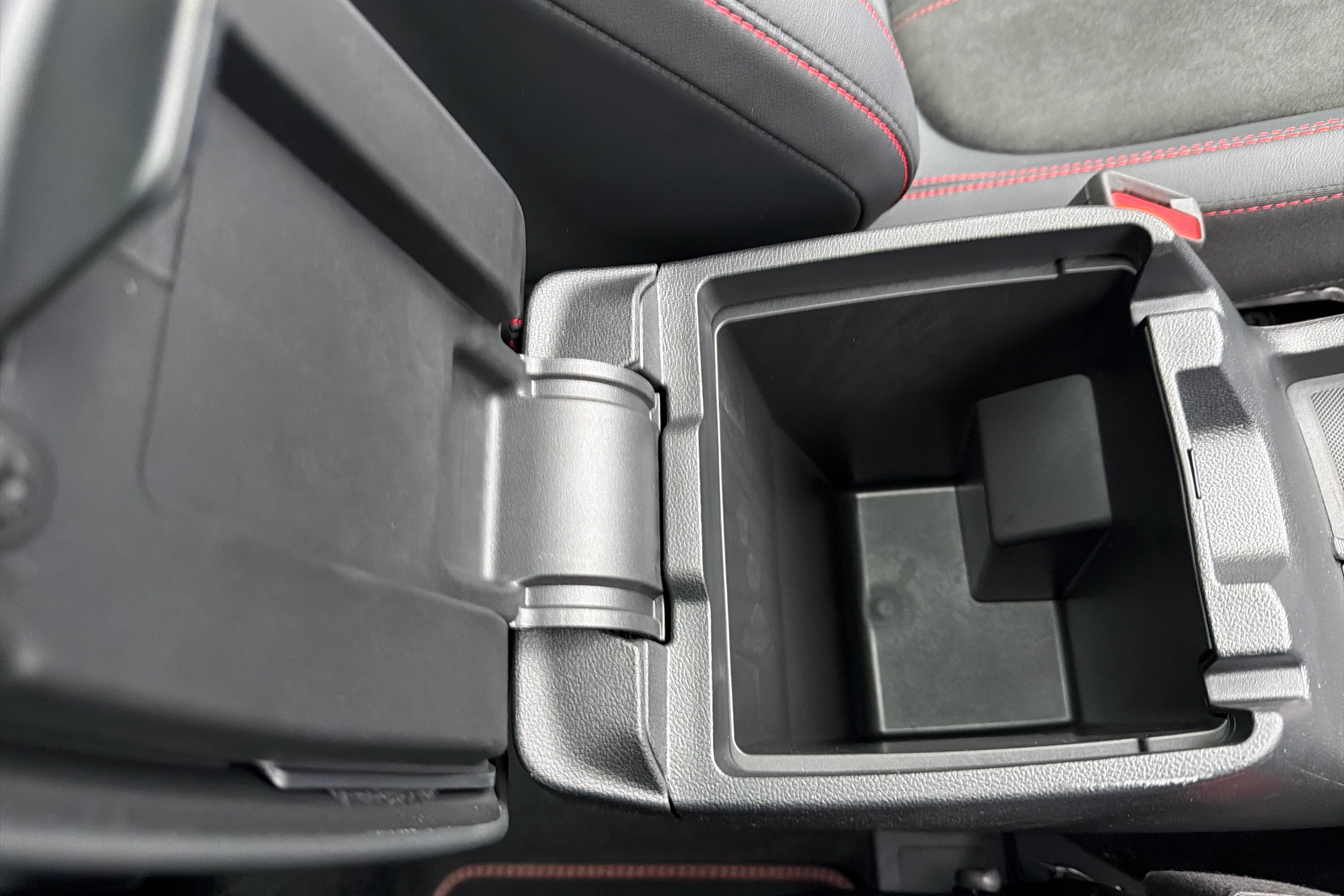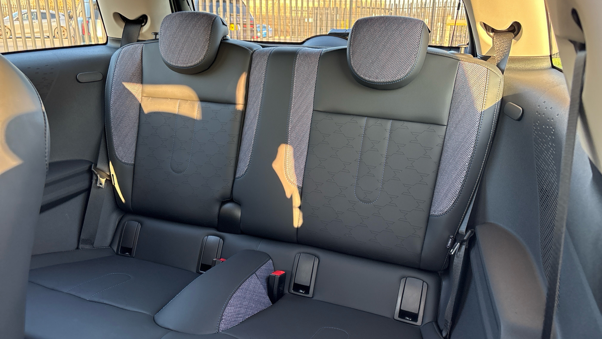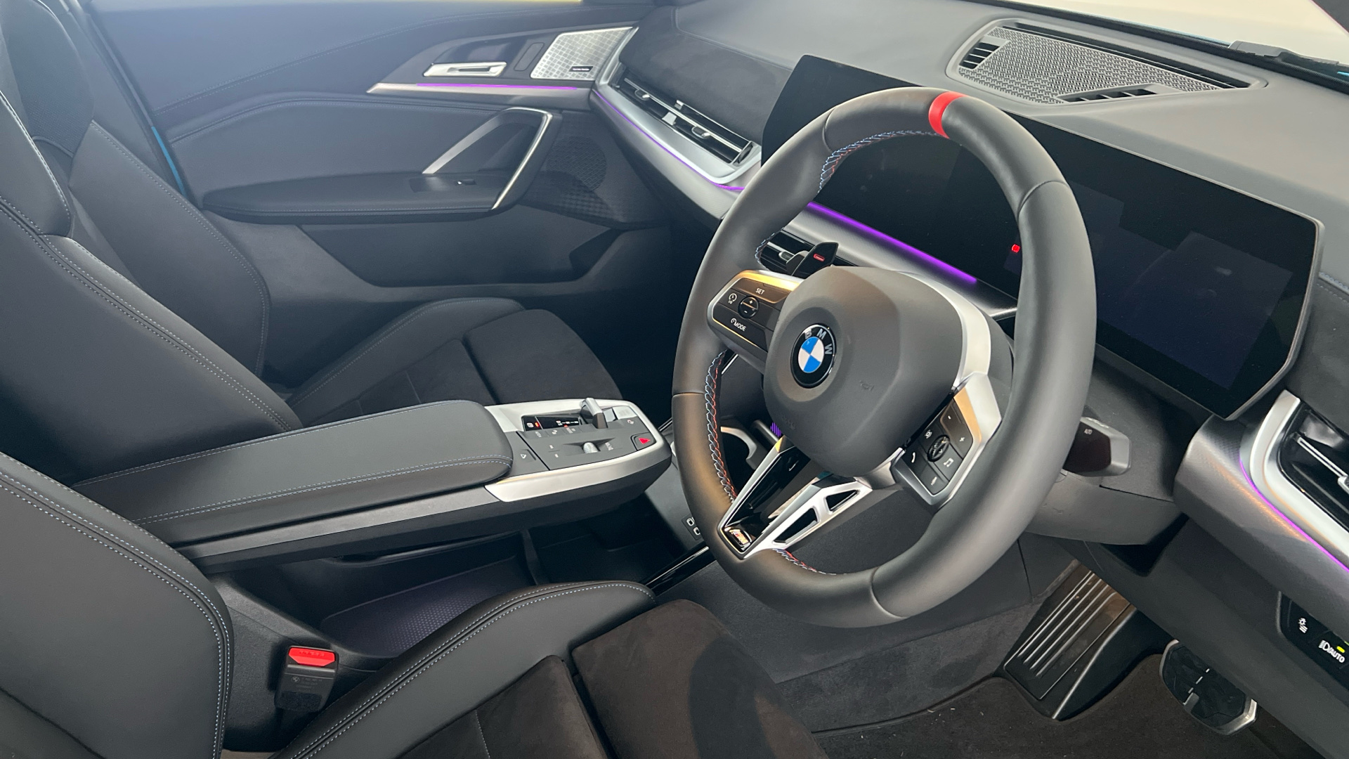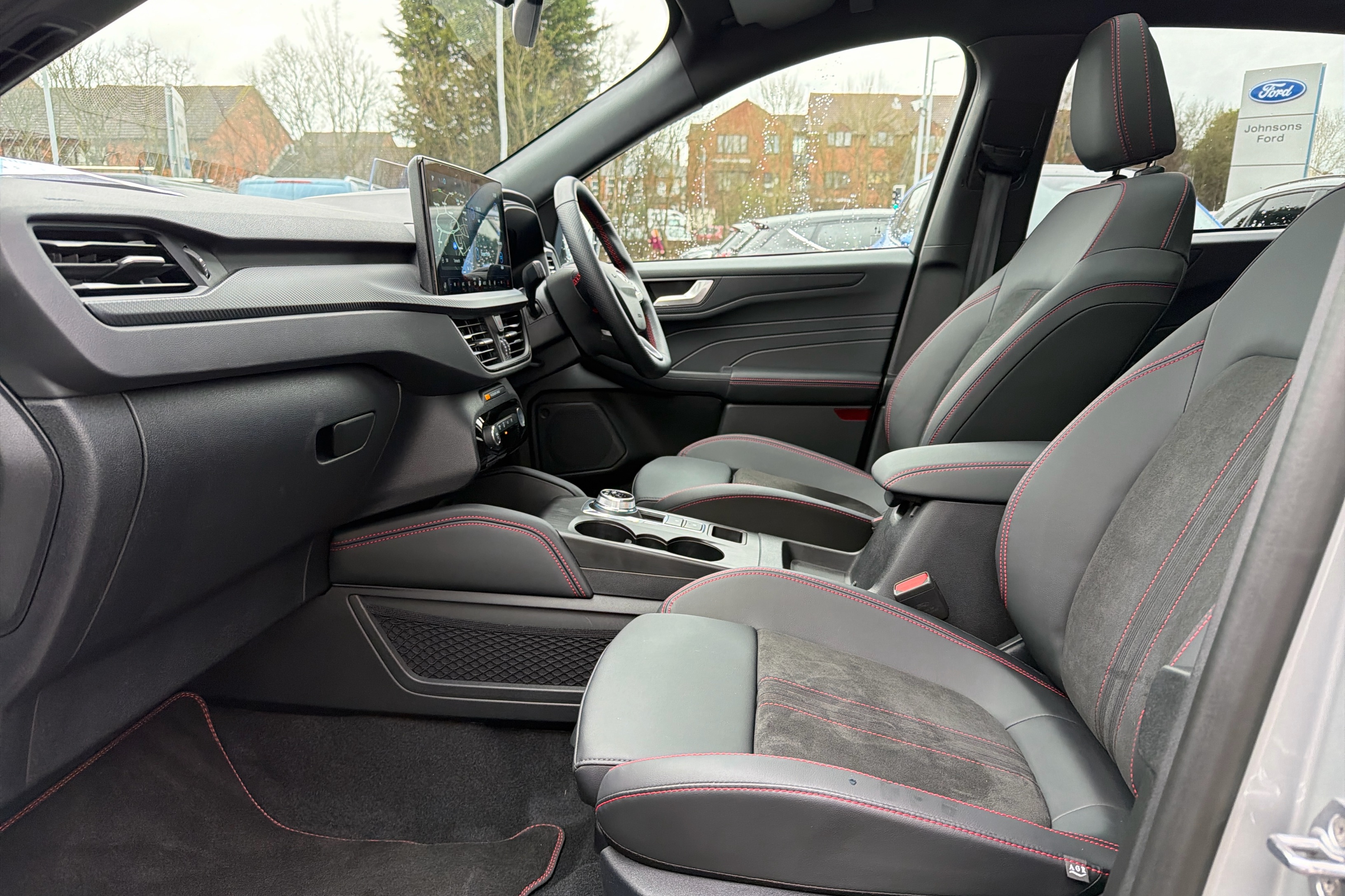"Vescin/Cord combination JCW upholstery includes dash knit in black with red accents"